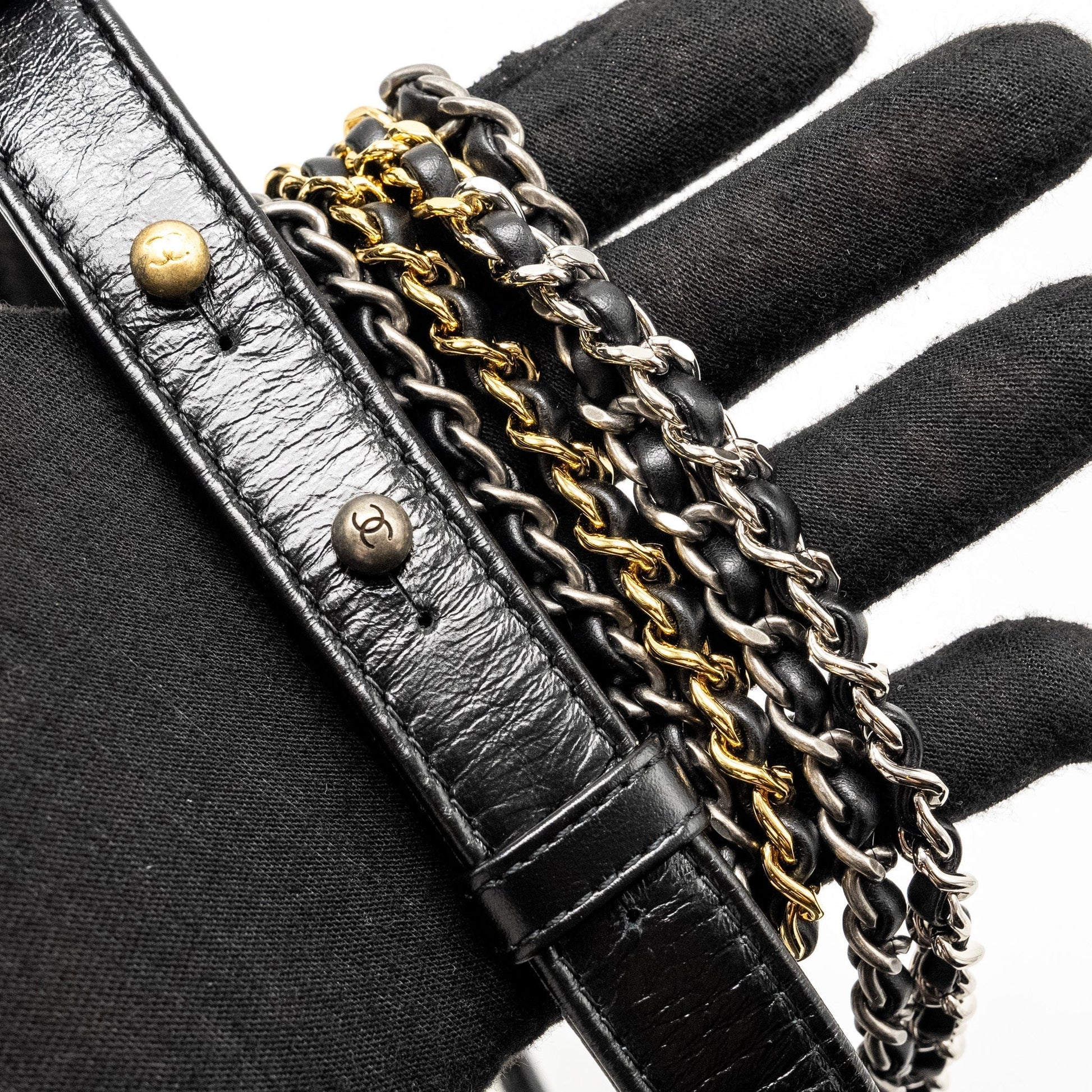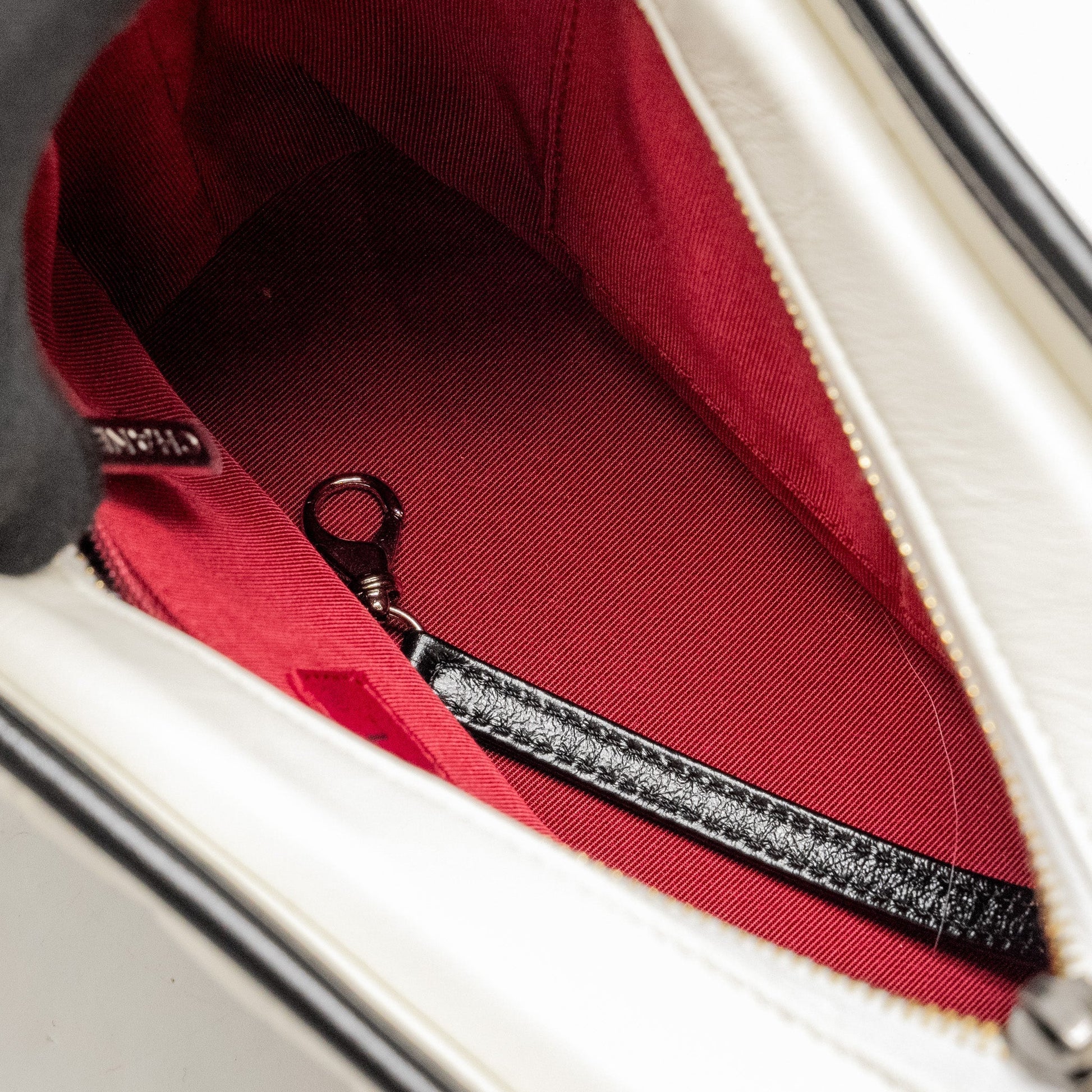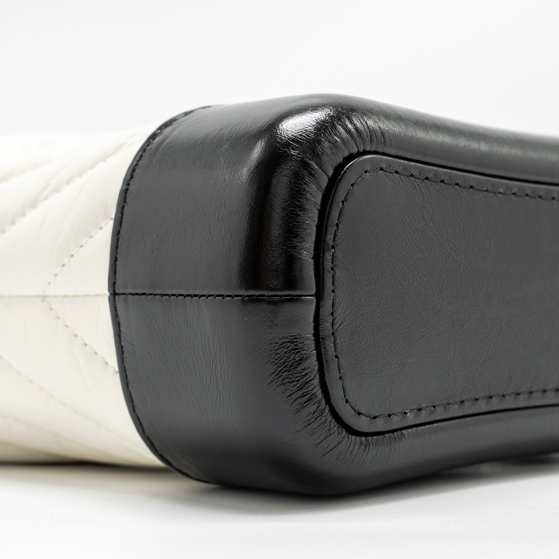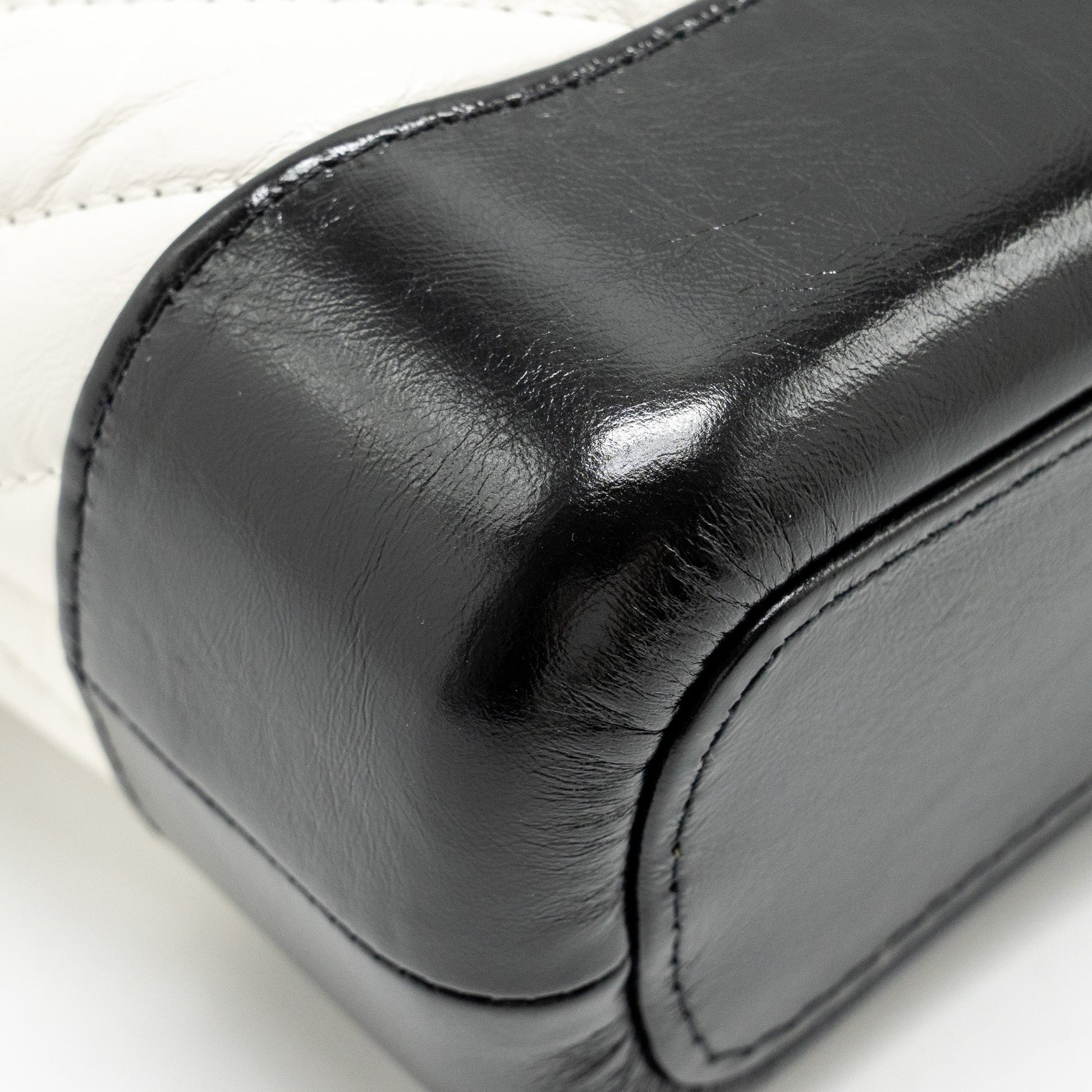 Chanel Small Chevron Gabrielle Hobo Bag Calfskin White/Black Multicolour Hardware