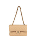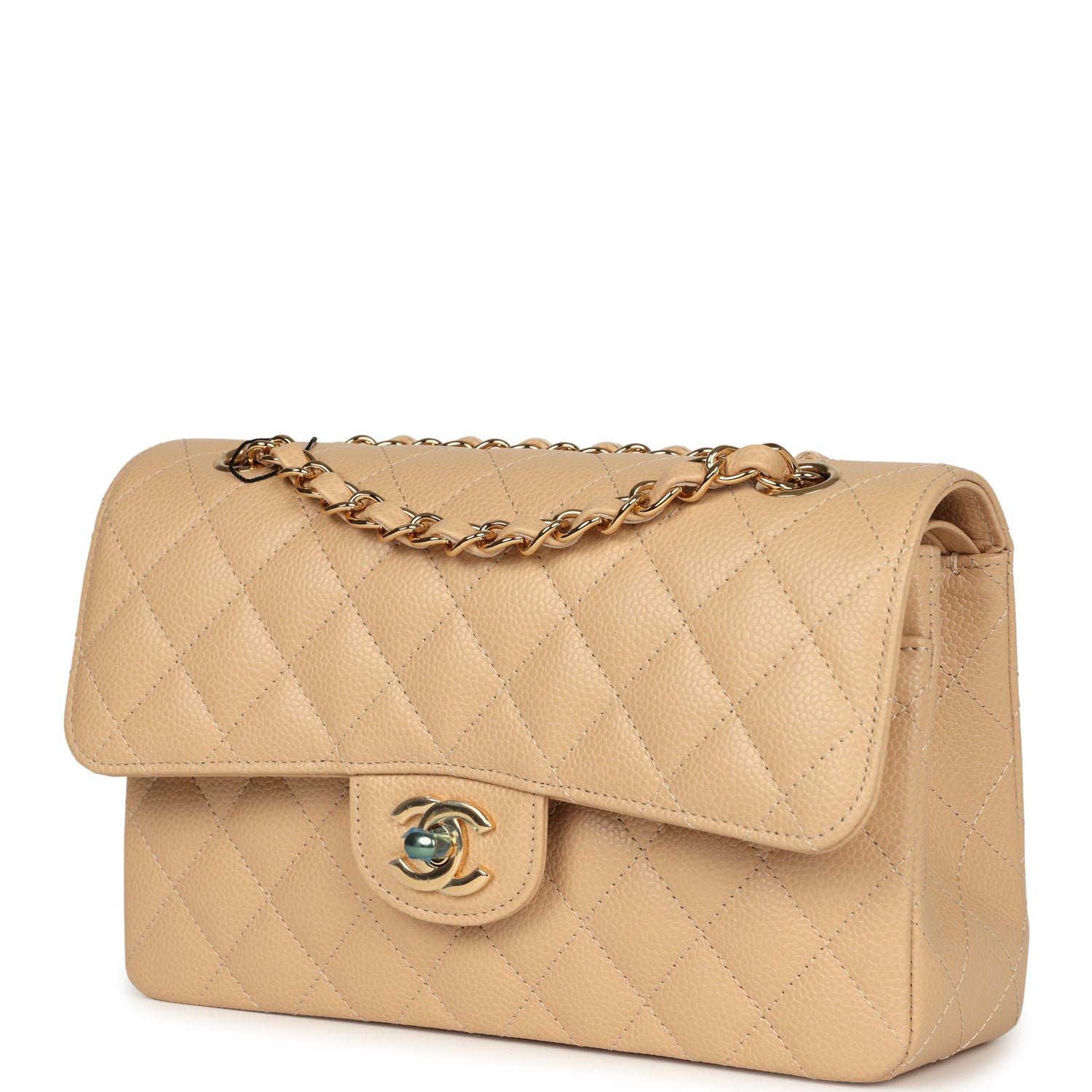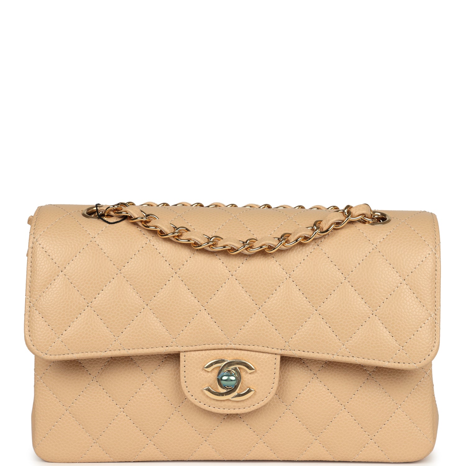 Chanel Small Classic Double Flap Bag Beige Caviar Gold Hardware