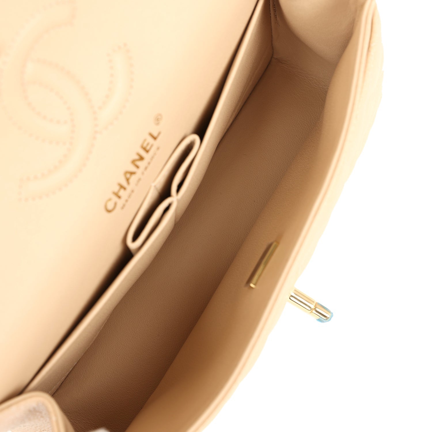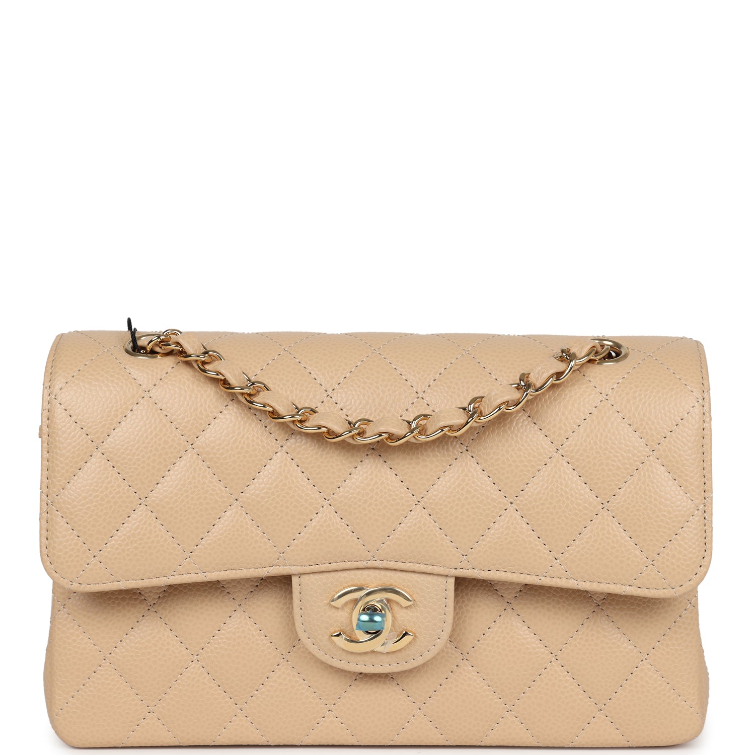 Chanel Small Classic Double Flap Bag Beige Caviar Gold Hardware