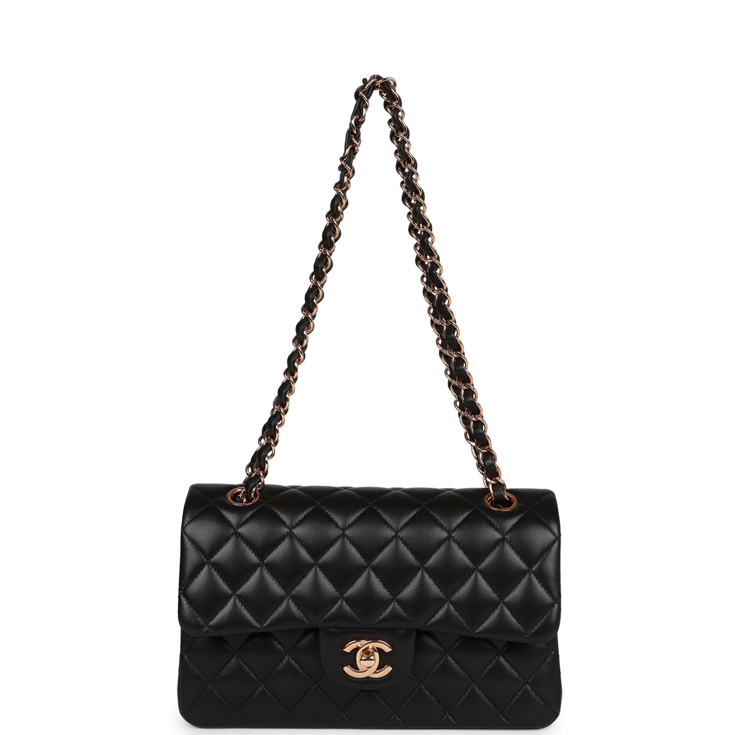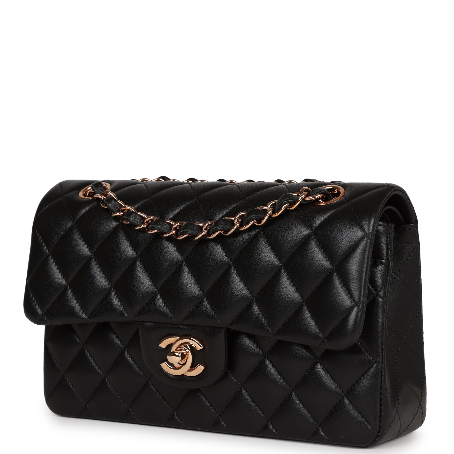 Chanel Small Classic Double Flap Bag Black Lambskin Rose Gold Hardware