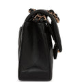 This Small Classic Double Flap bag is in black lambskin leather with rose gold tone hardware and features a front flap with signature CC turnlock closure, half moon back pocket, and adjustable interwoven rose gold tone chain link and black leather shoulder strap.