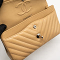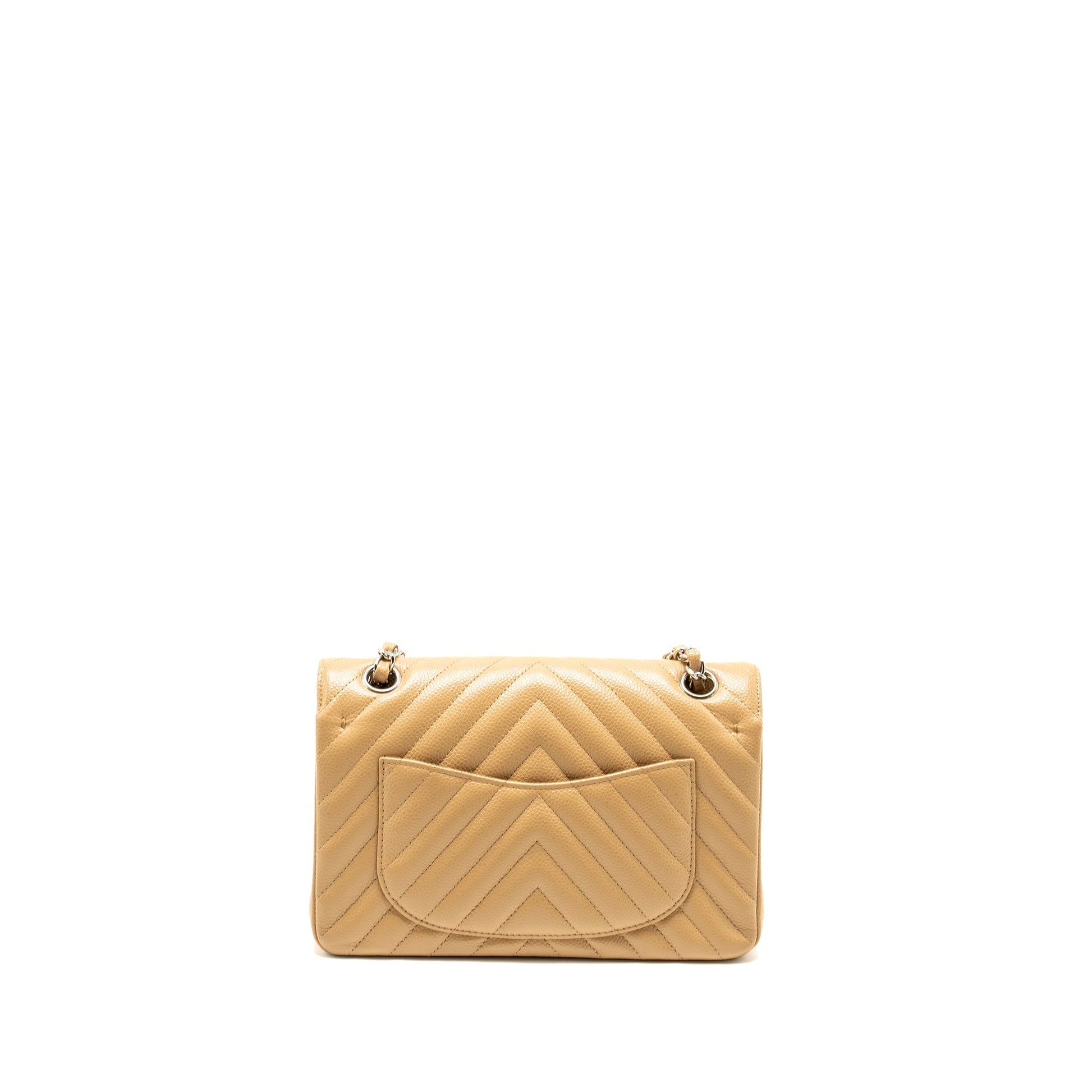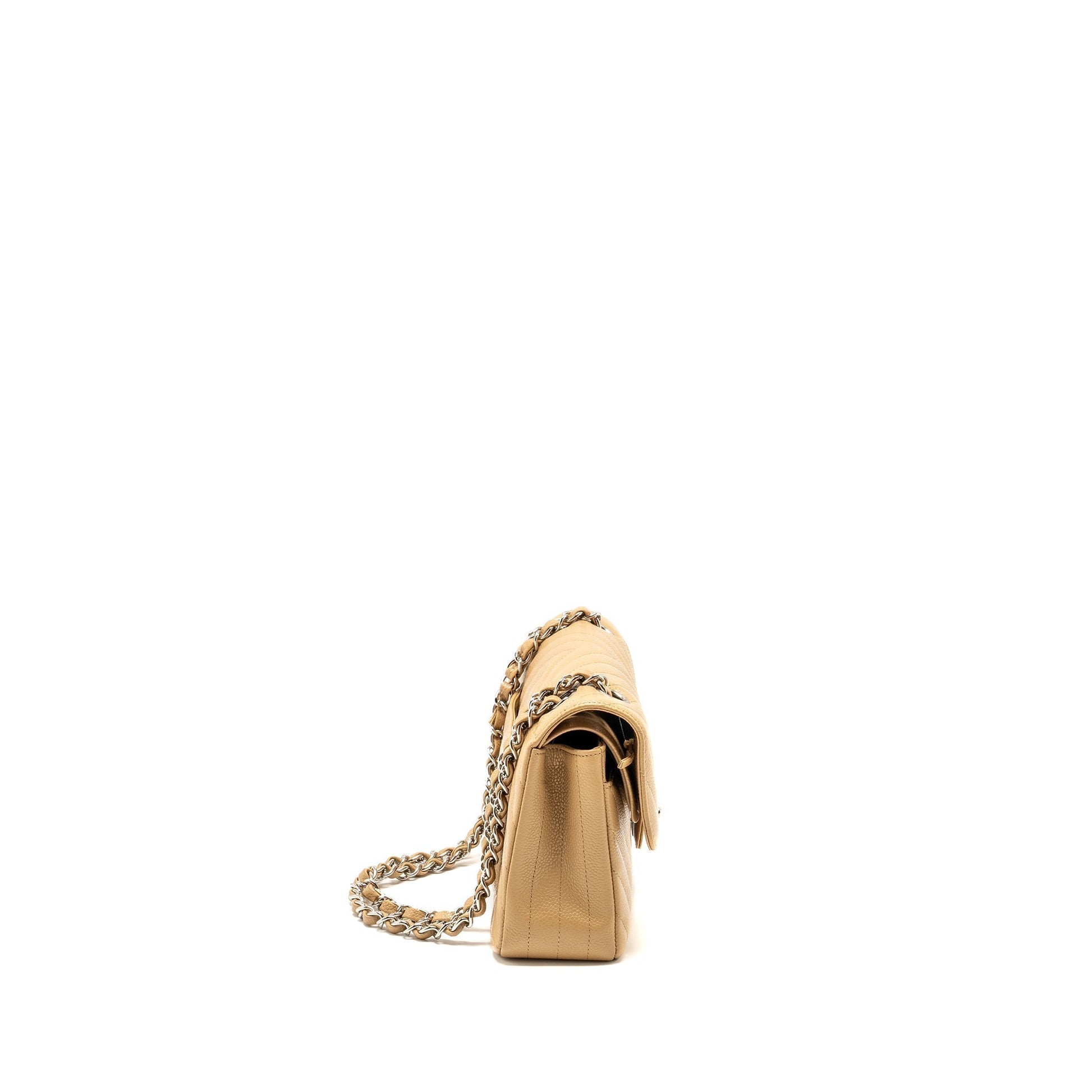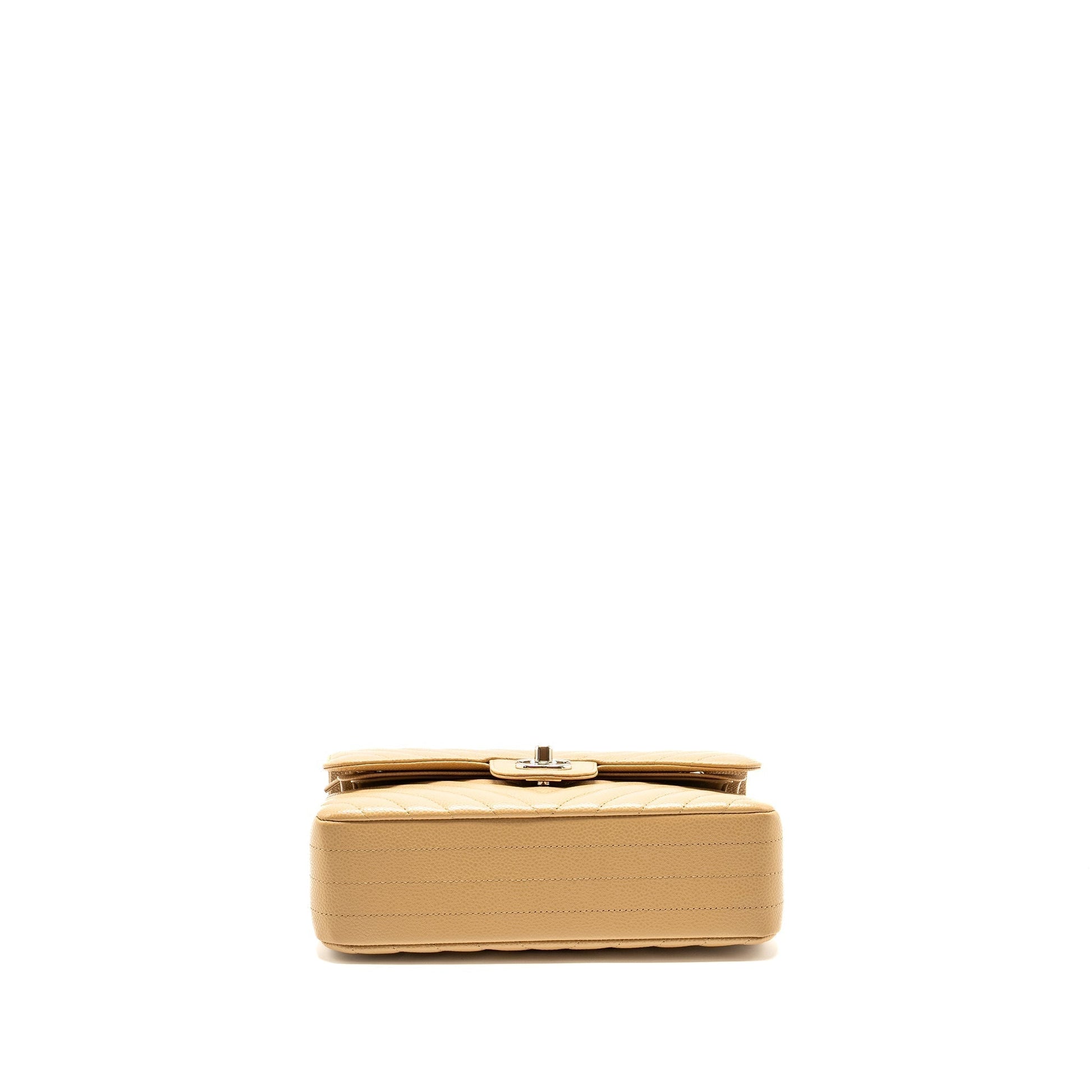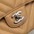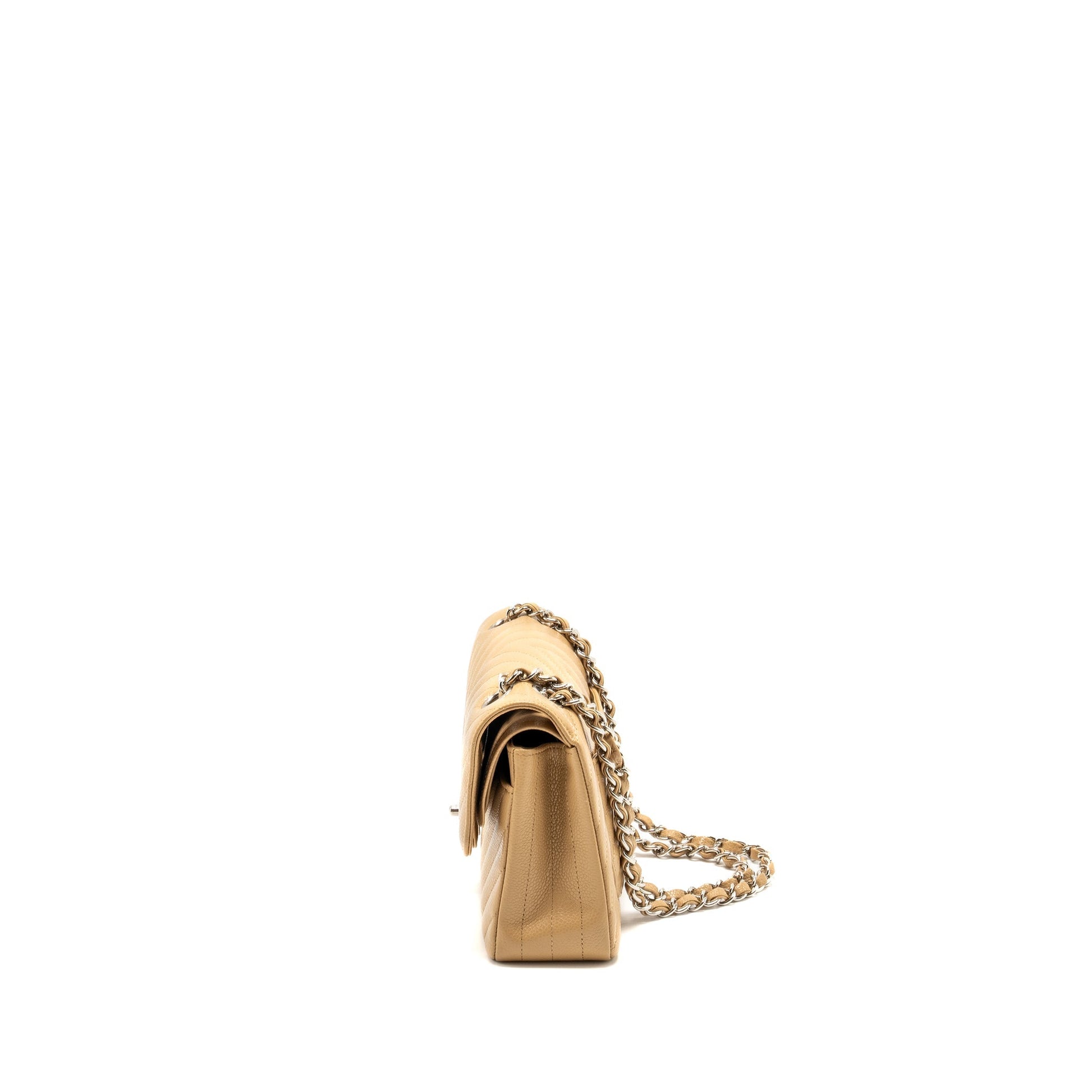 Chanel Small Classic Double Flap Bag Chevron Caviar Beige SHW