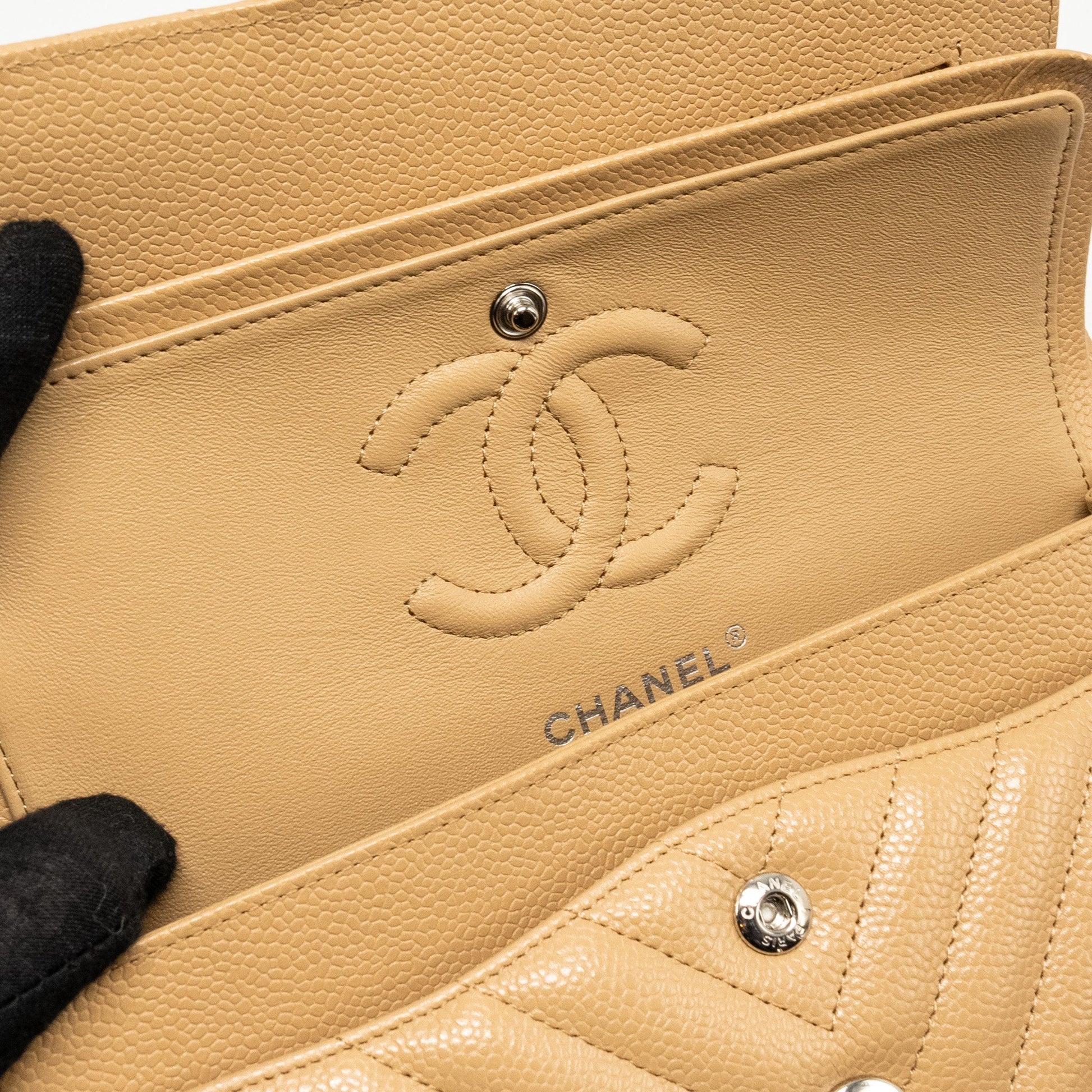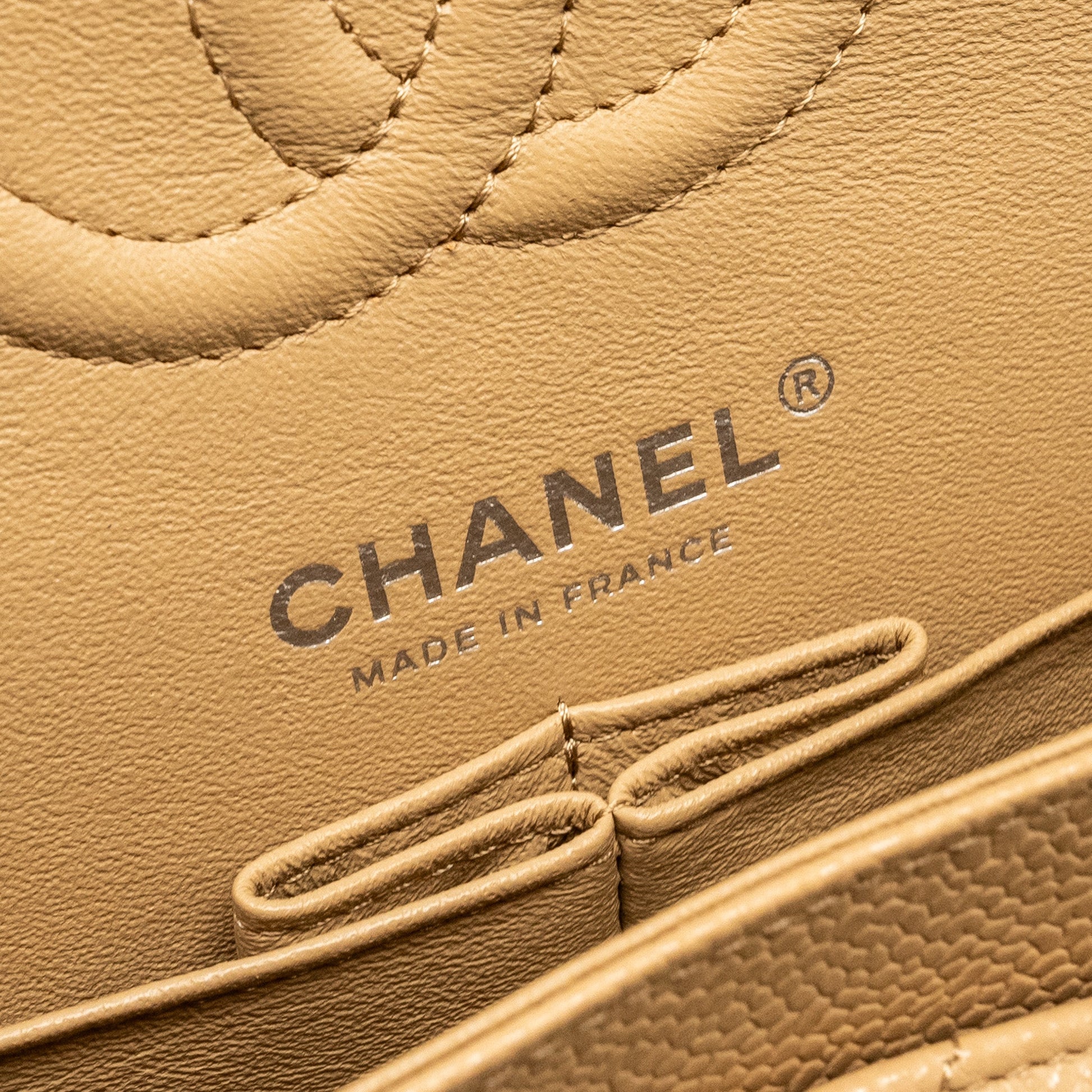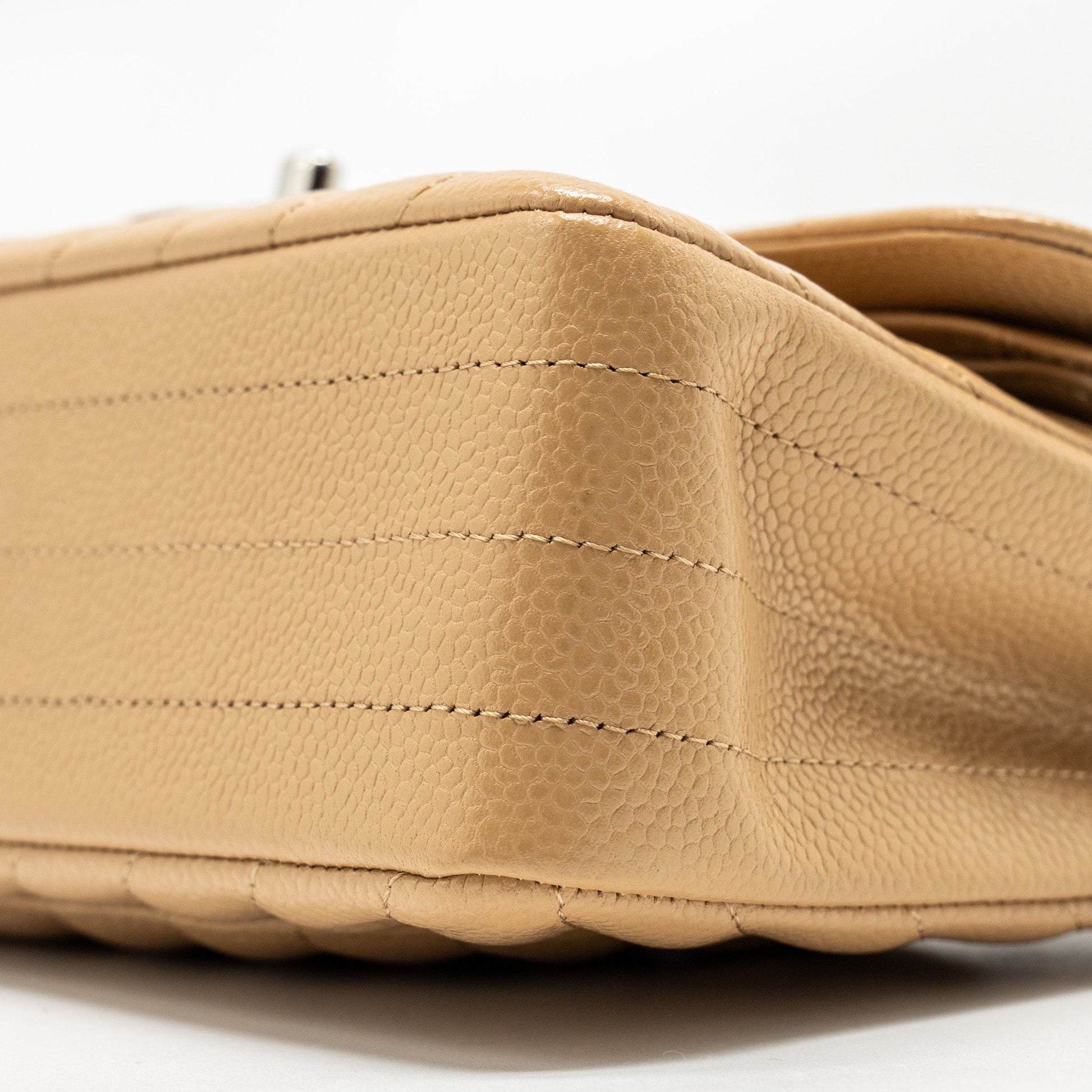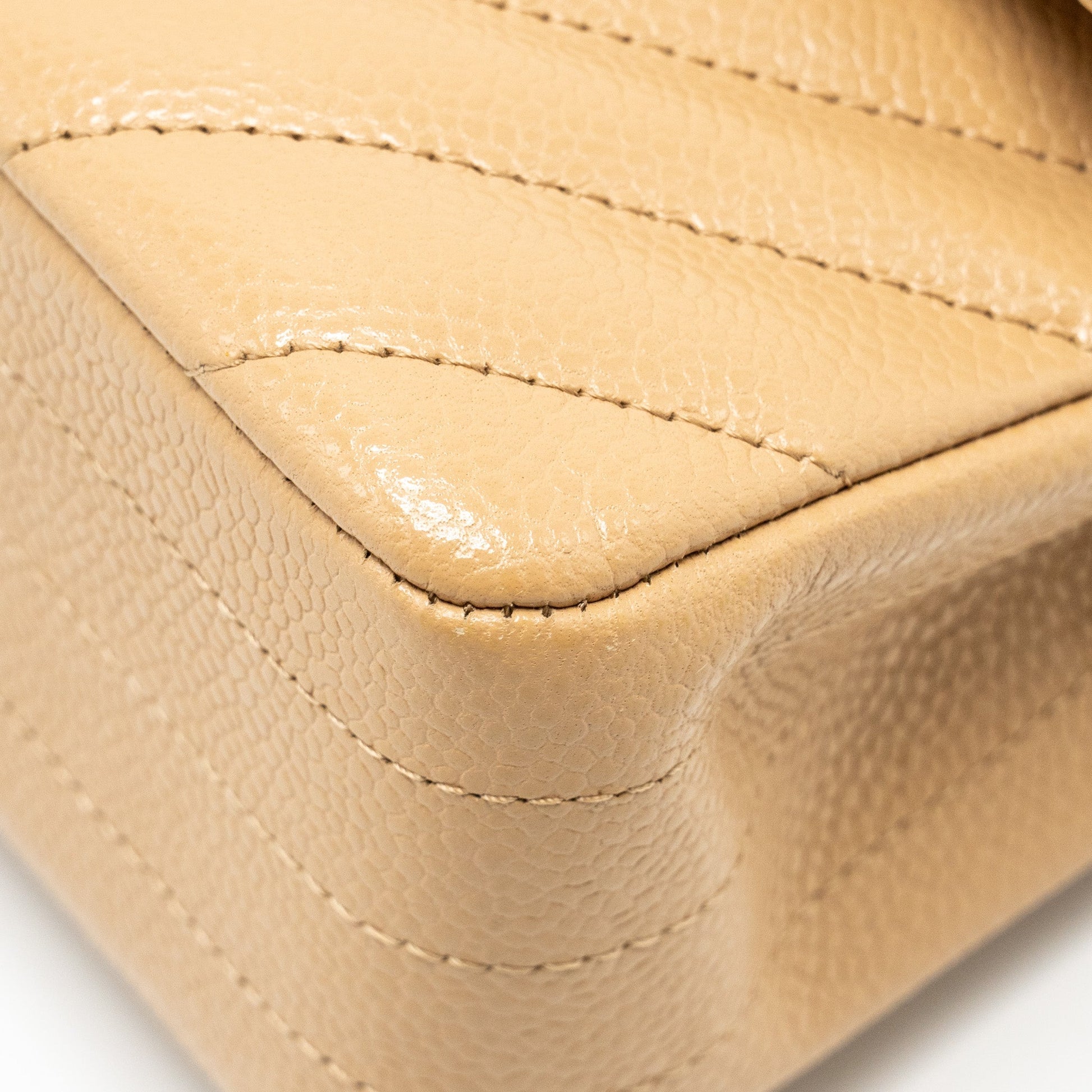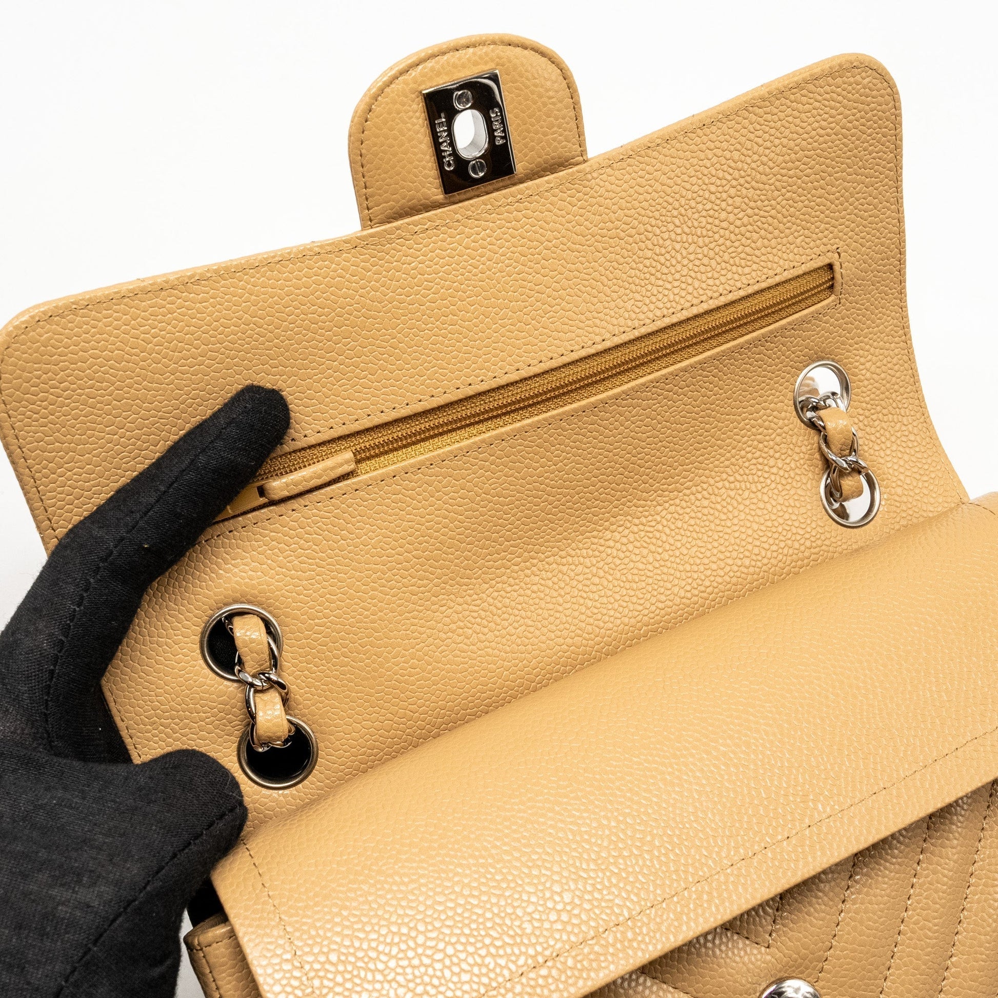 Chanel Small Classic Double Flap Bag Chevron Caviar Beige SHW