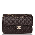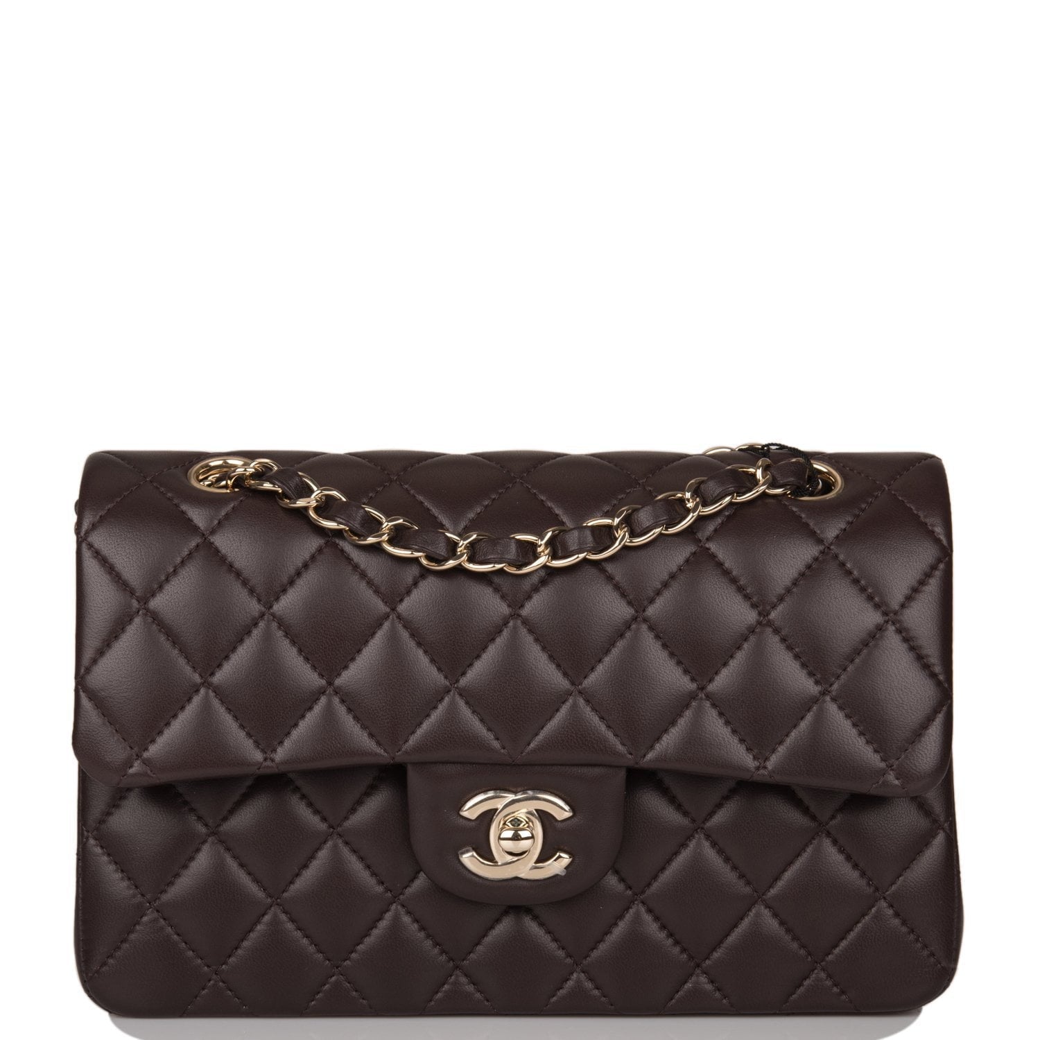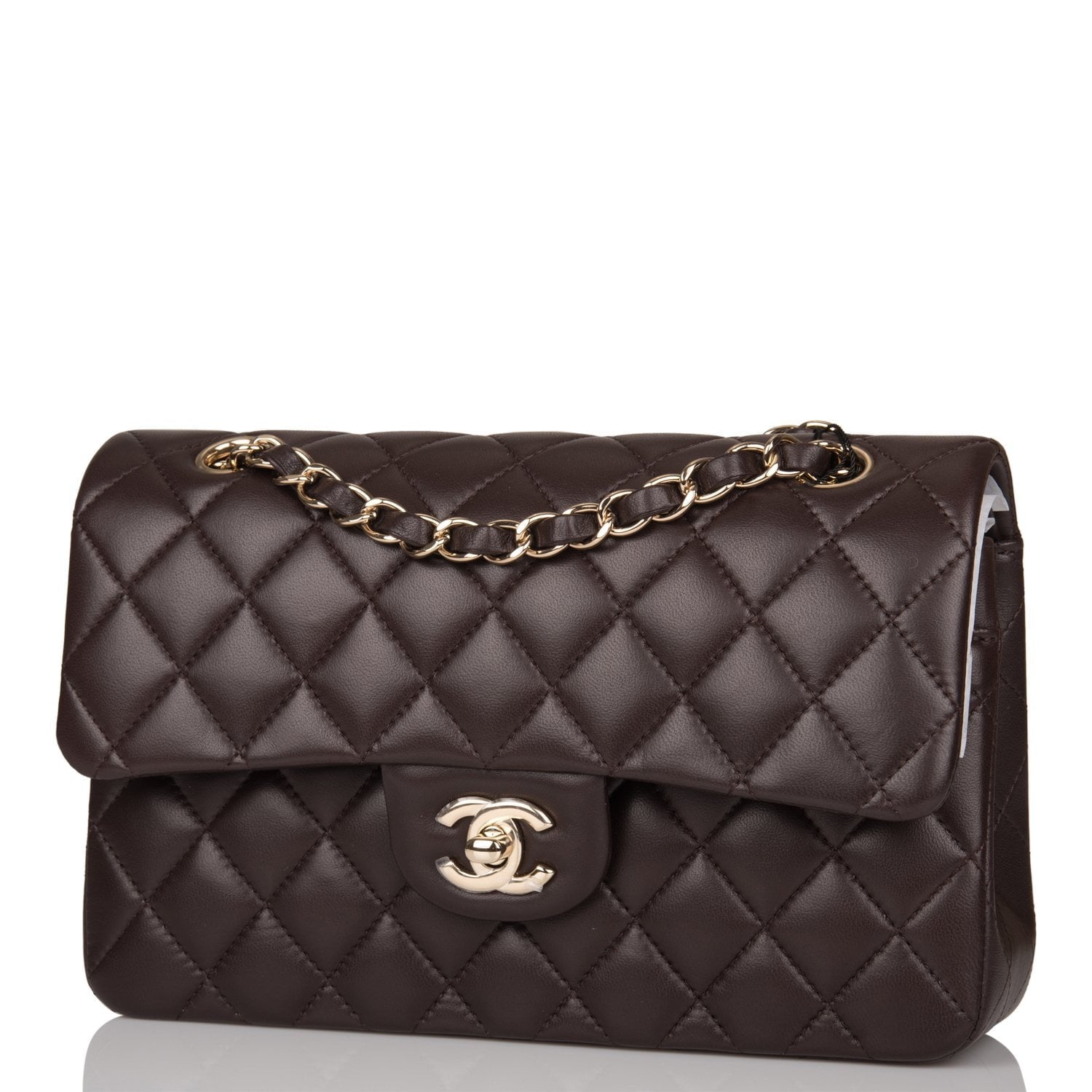 Chanel Small Classic Double Flap Bag Dark Brown Lambskin Light Gold Hardware