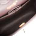 Small Classic Double Flap bag is in dark brown lambskin leather with light gold tone hardware and features a front flap with signature CC turnlock closure, half moon back pocket, and adjustable interwoven light gold tone chain link and dark brown leather shoulder strap.