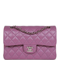 Chanel Small Classic Double Flap Bag Purple Lambskin Silver Hardware