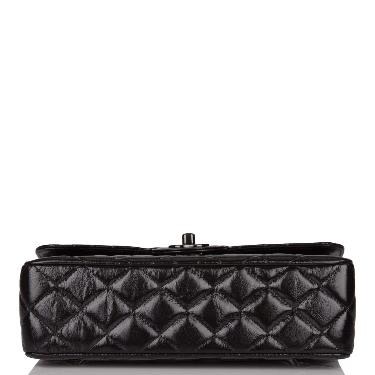 Chanel Small Classic Double Flap Shiny SO Black Crumpled Calfskin Black Hardware