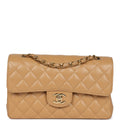 Chanel Small Classic Double Flap Dark Beige Caviar Gold Hardware