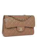 Chanel Small Classic Double Flap Dark Beige Caviar Light Gold Hardware