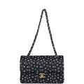 Chanel Small Classic Double Logo Printed Flap Bag Black and White Calfskin Gold Hardware