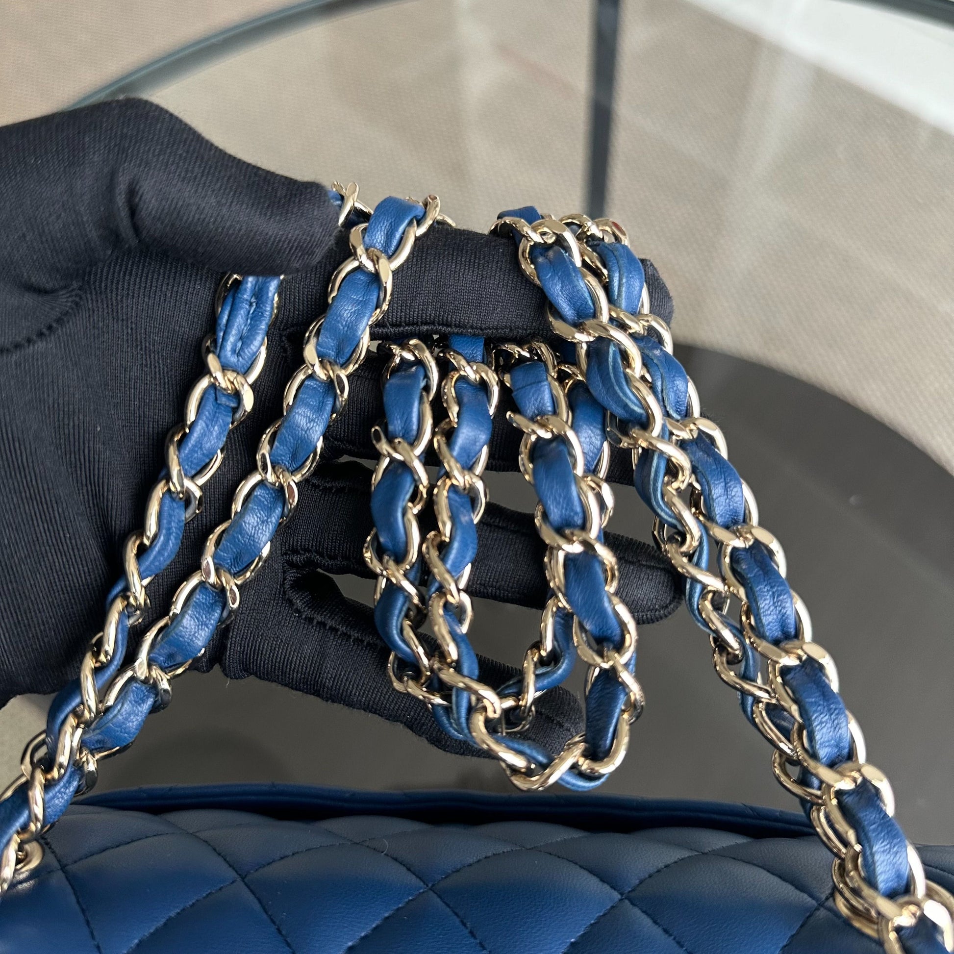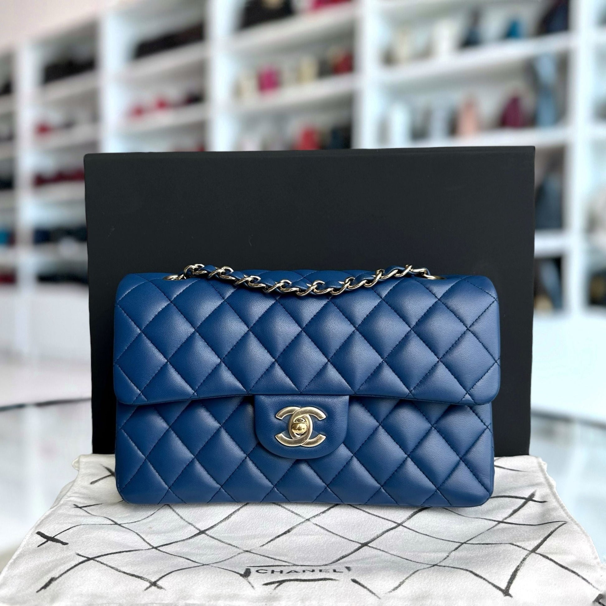 Small Classic Flap 23CM Quilted Lambskin Dark Blue SHW No 25
