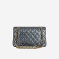 Elevate your collection with the Chanel Small Classic Flap in Blue Metallic Calfskin, a statement of modern luxury and timeless elegance. Crafted from smooth metallic calfskin, this bag shines with a subtle iridescent finish, perfectly complemented by gleaming gold hardware for a sophisticated, eye-catching contrast.