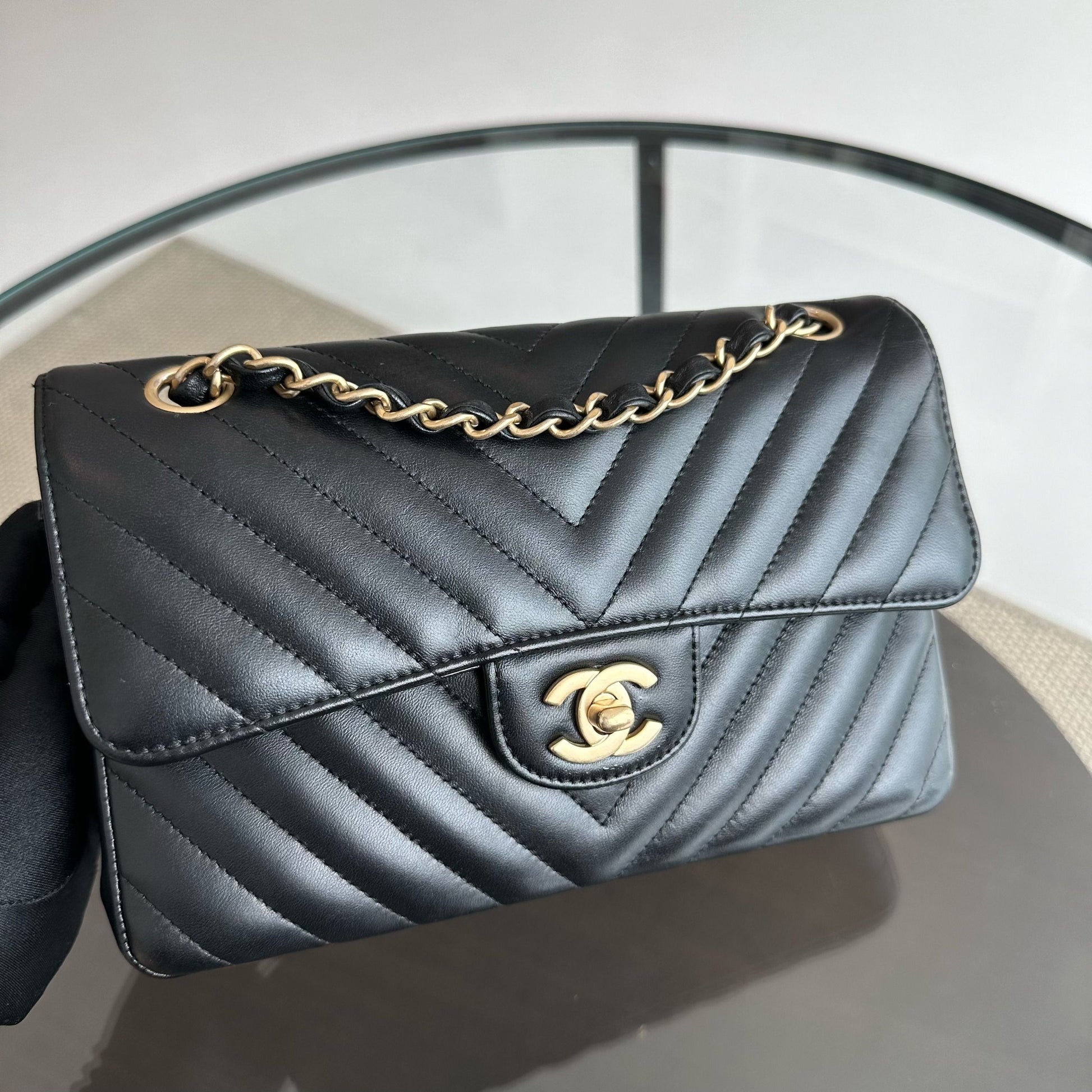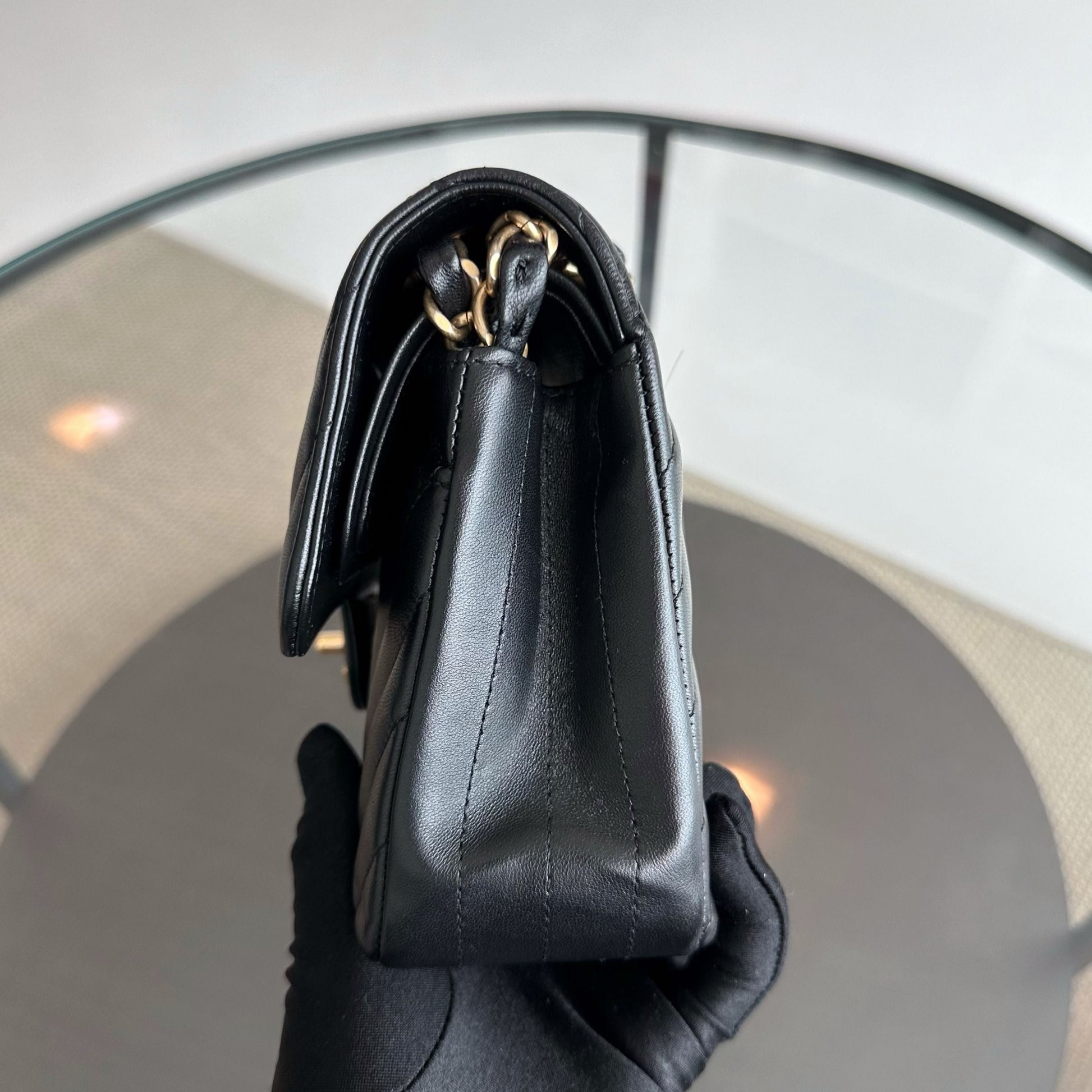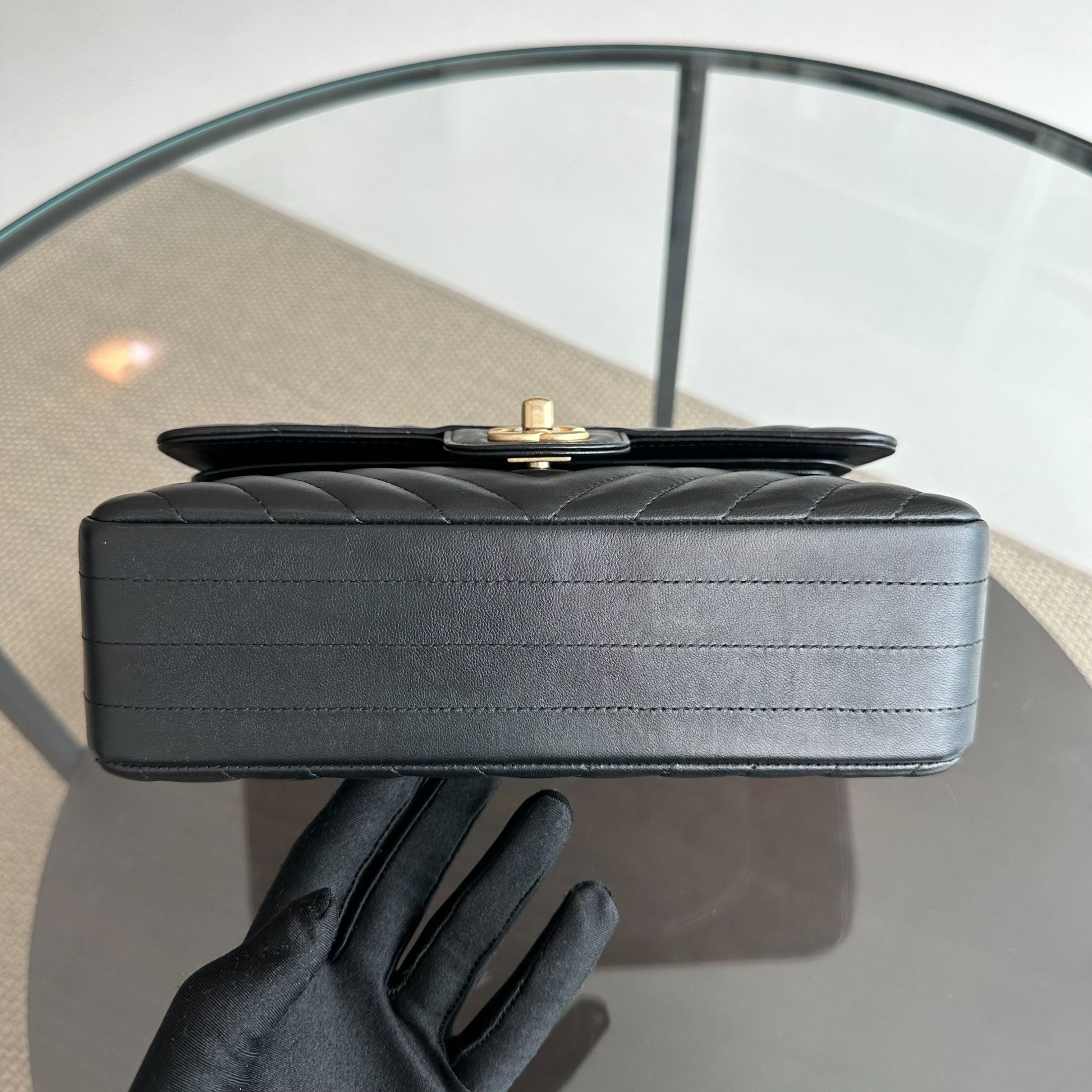Small Classic Flap Lambskin 23cm Chevron Black GHW No 27