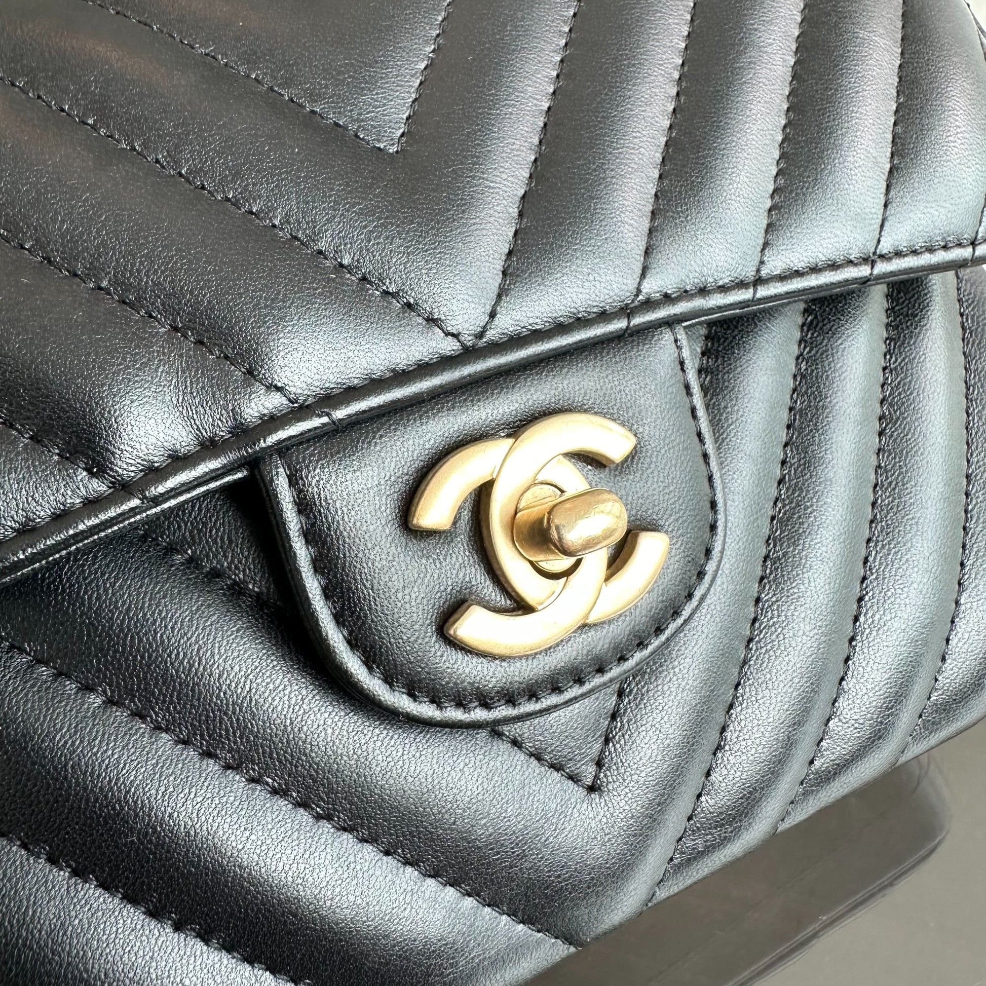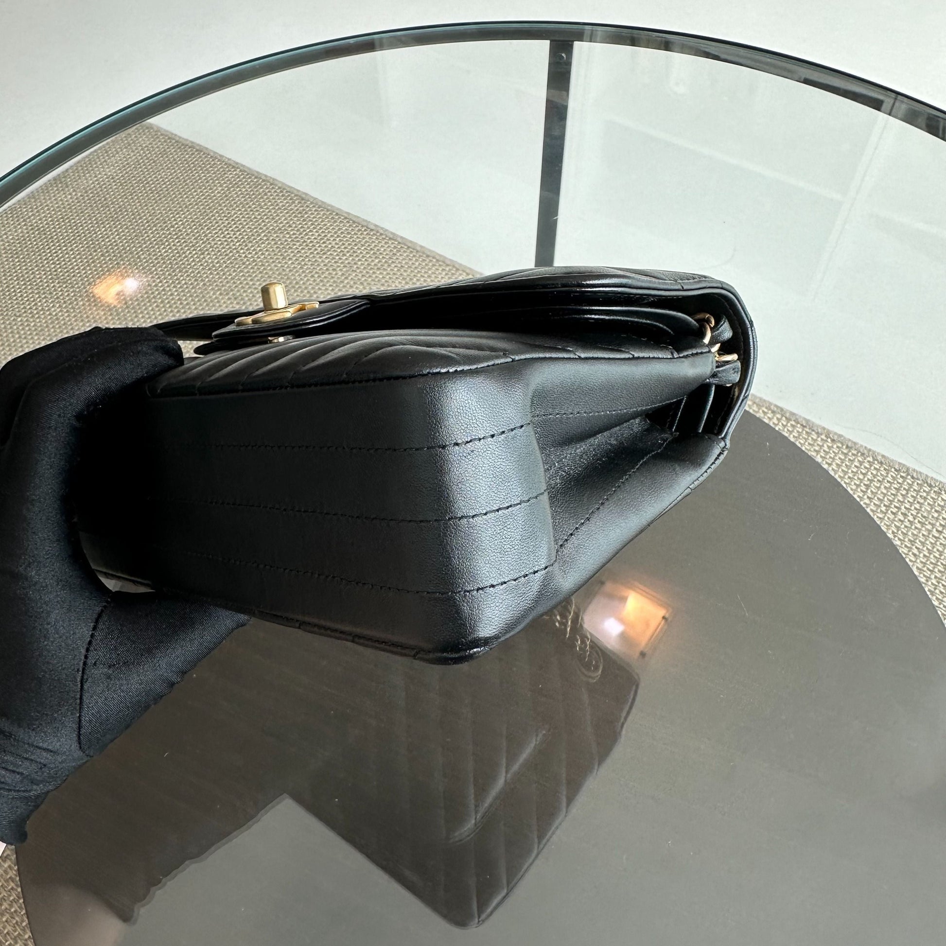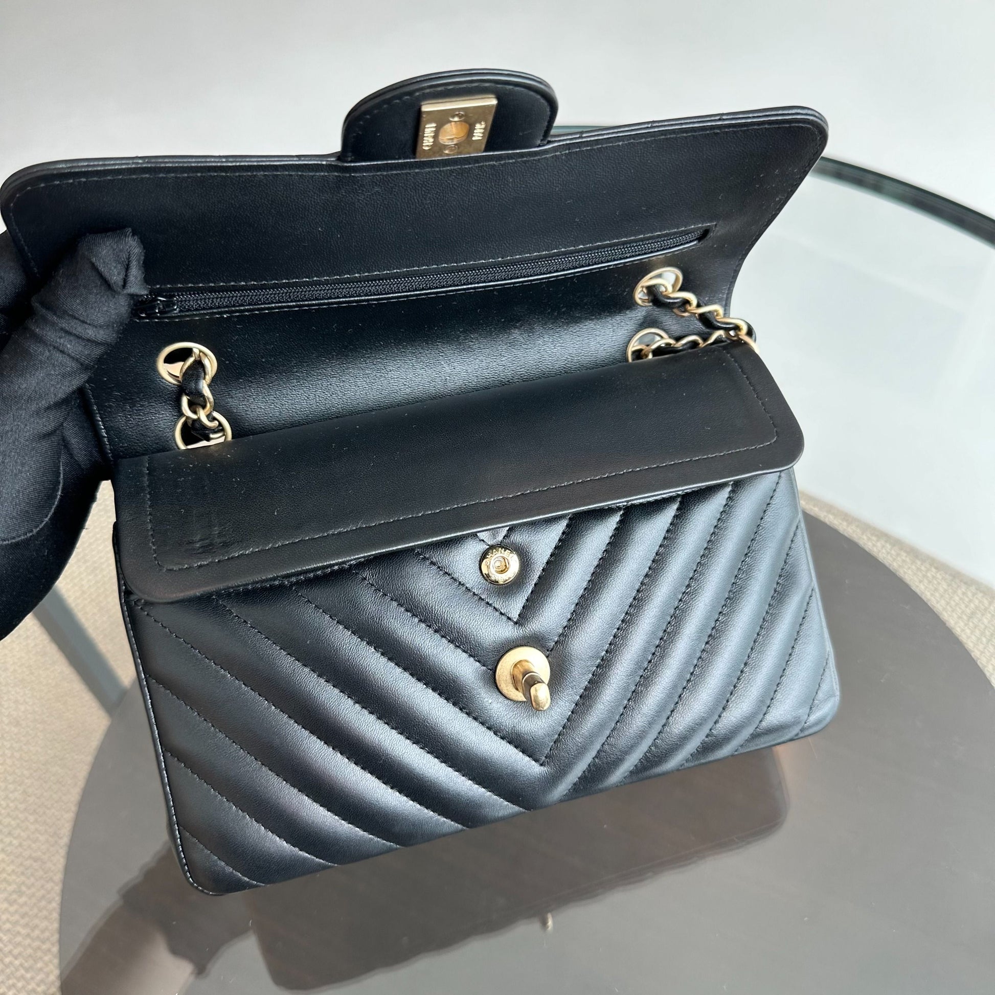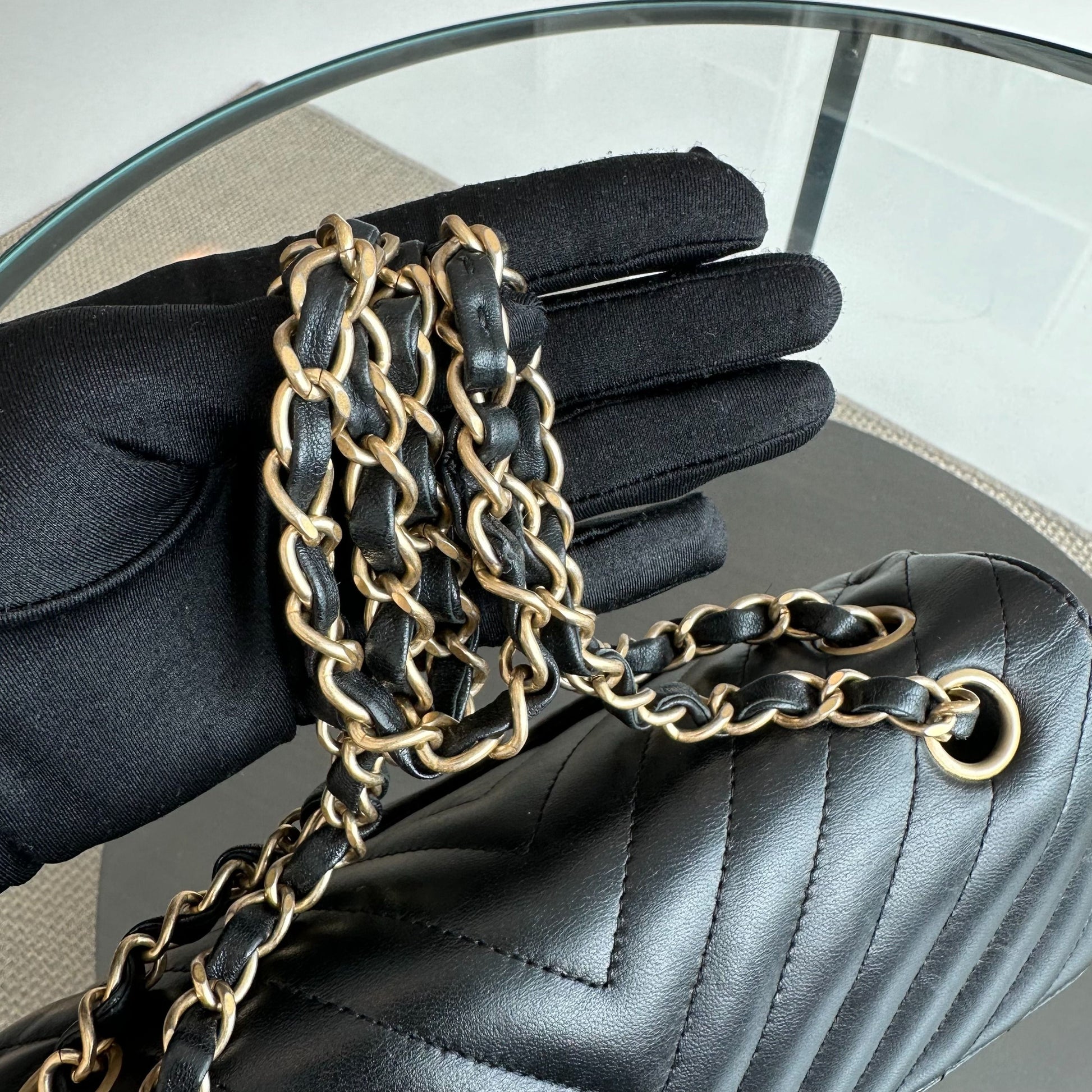 Small Classic Flap Lambskin 23cm Chevron Black GHW No 27