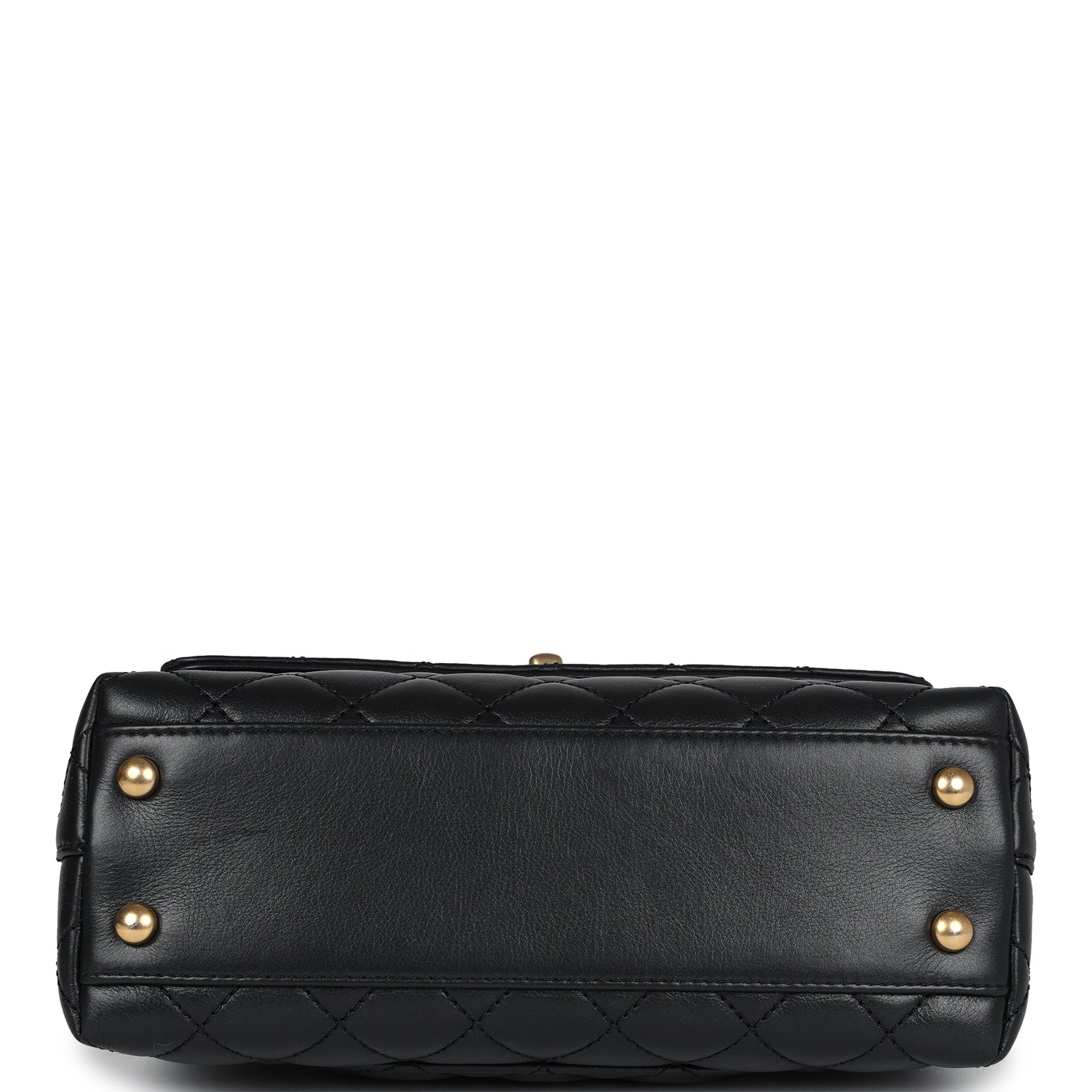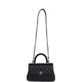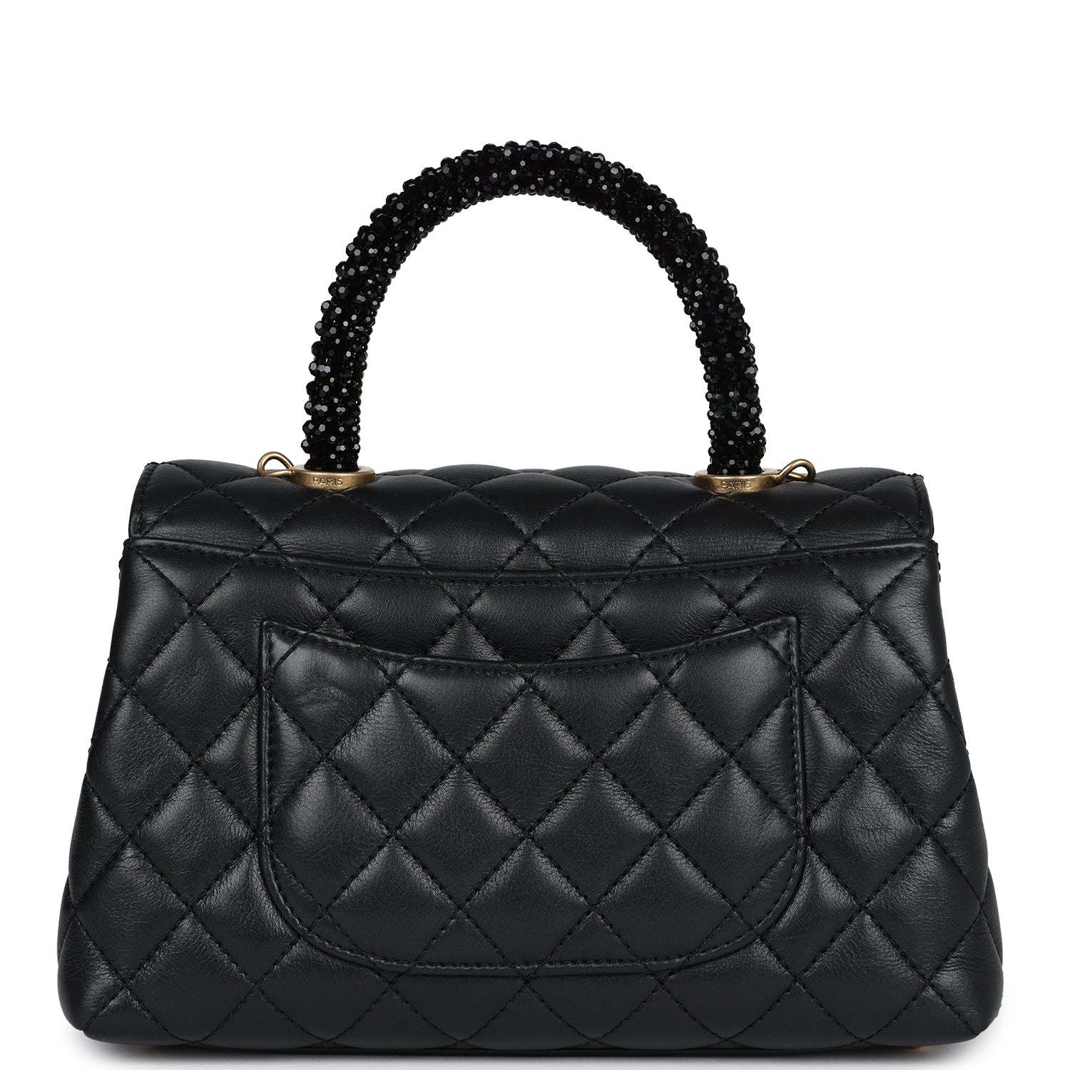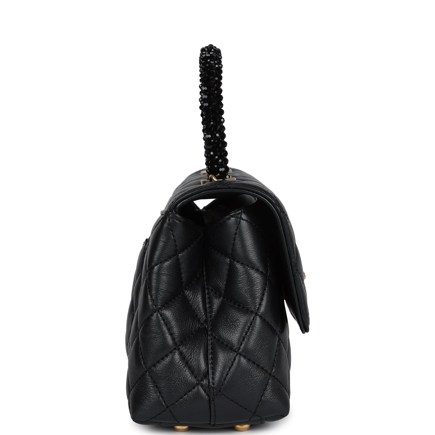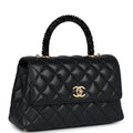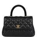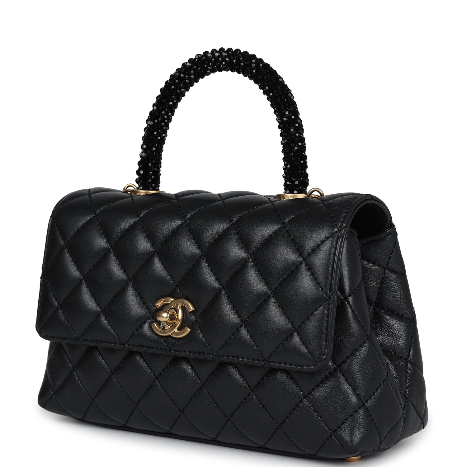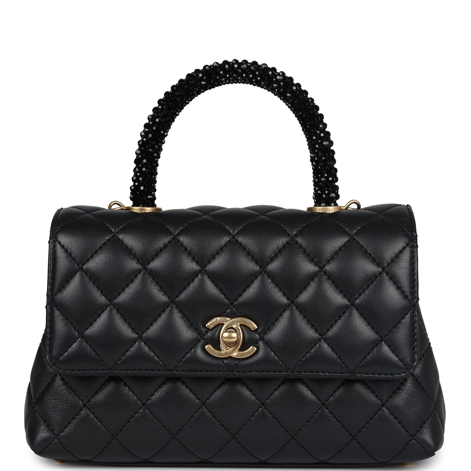 Chanel Small Coco Crystal Top Handle Flap Bag Black Lambskin Brushed Gold Hardware