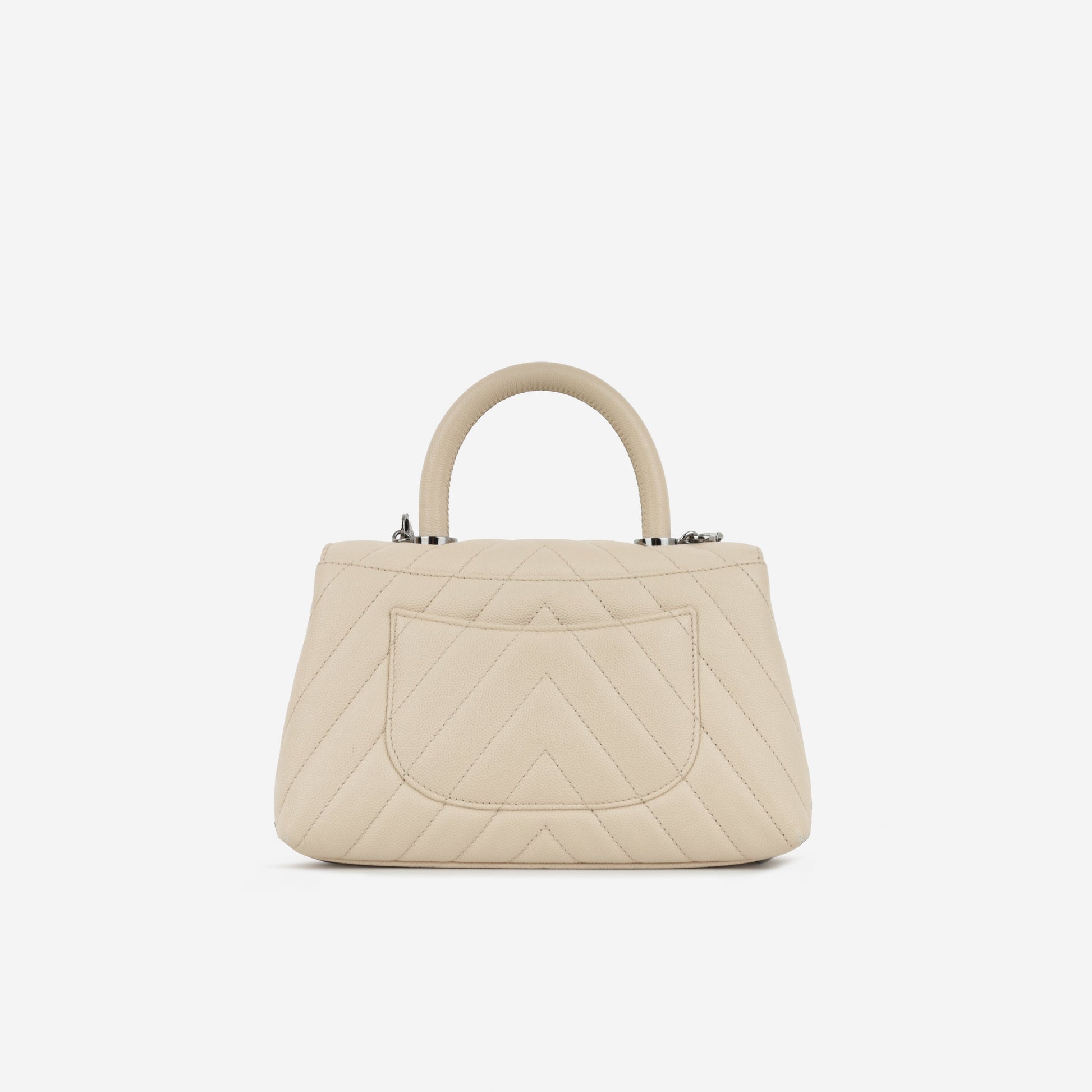 Elevate your collection with the Small Coco Handle in Beige Chevron Caviar leather. A coveted Chanel design renowned for its chic structure and feminine charm. Crafted from durable caviar-grain leather with a chevron quilt finish, this piece combines luxurious texture with a contemporary silhouette.