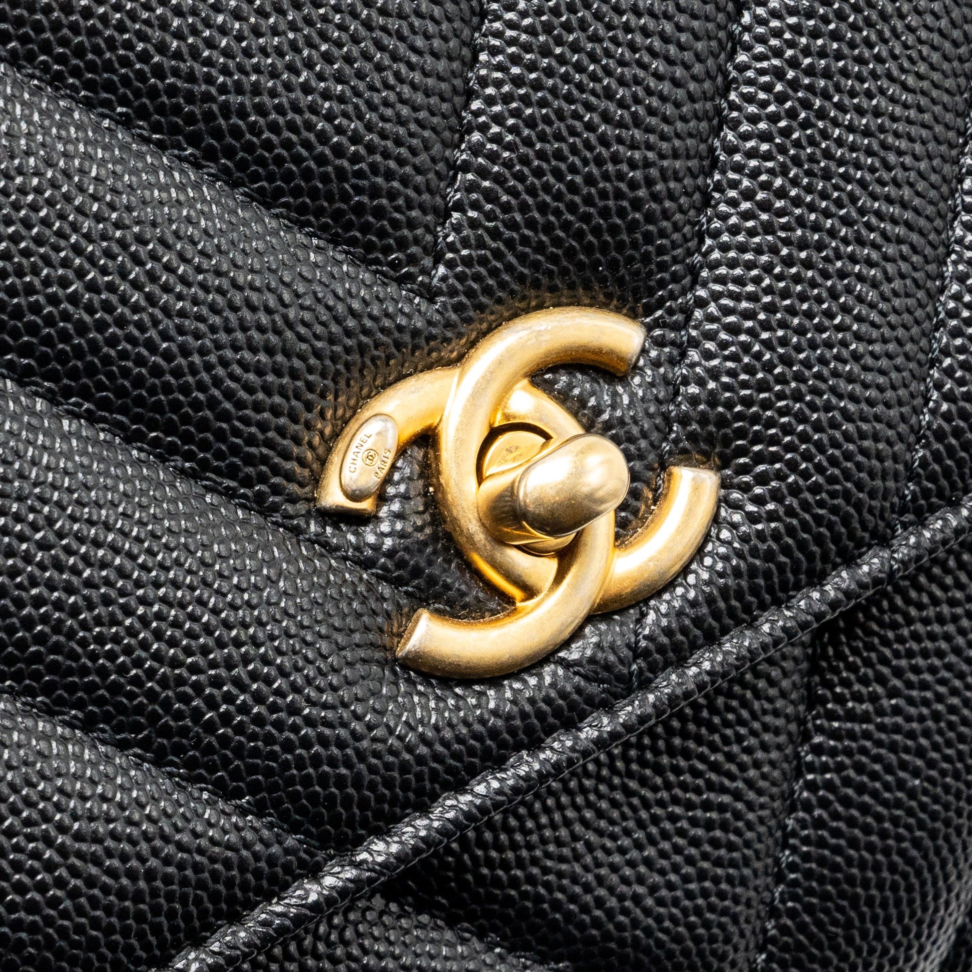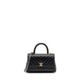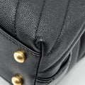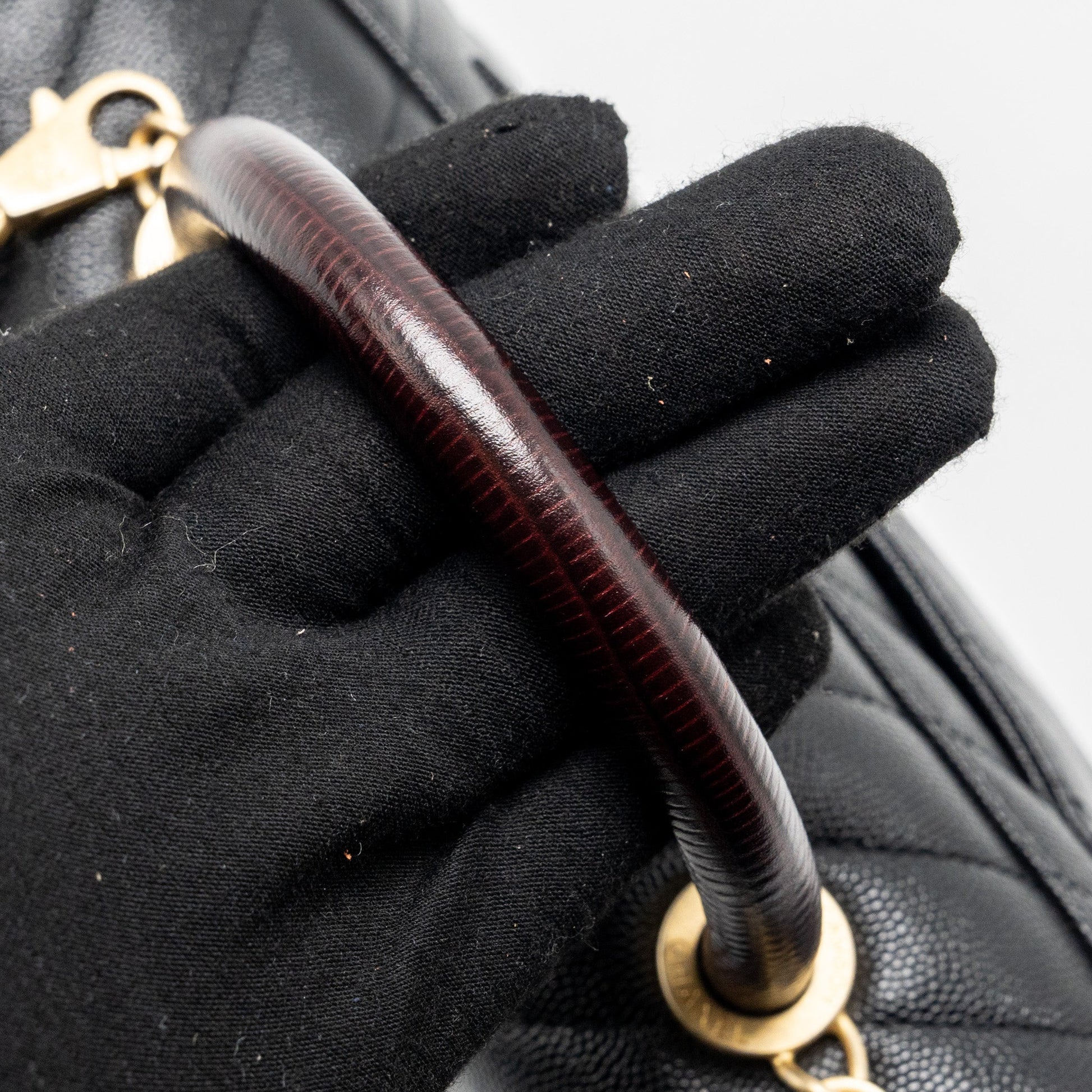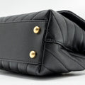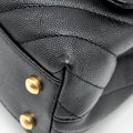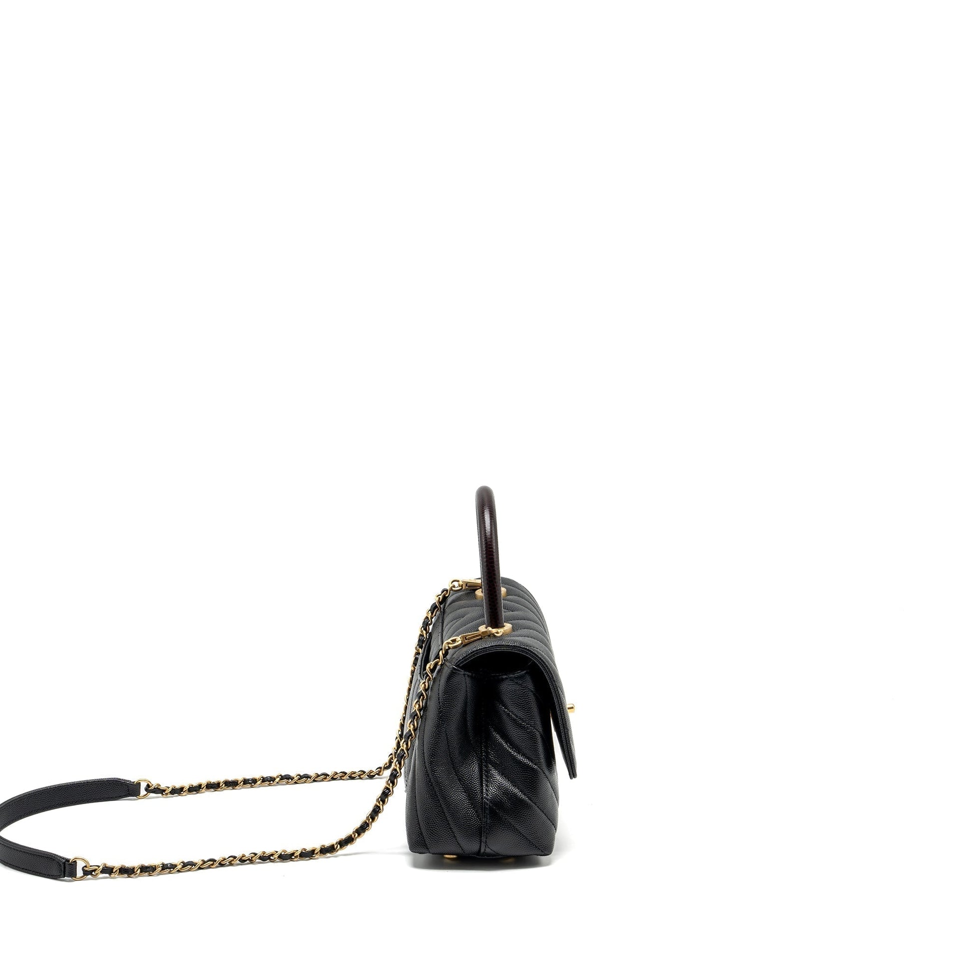 Chanel Small Coco Handle Chevron Caviar with Lizard Embossed Handle Black/ Burgundy GHW