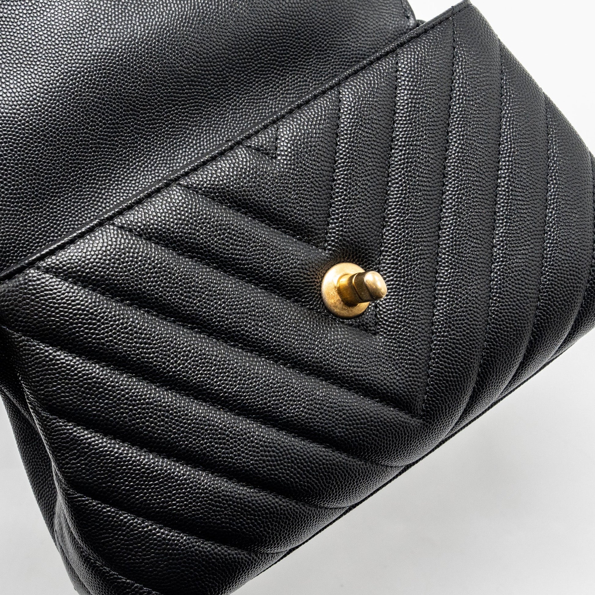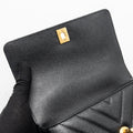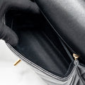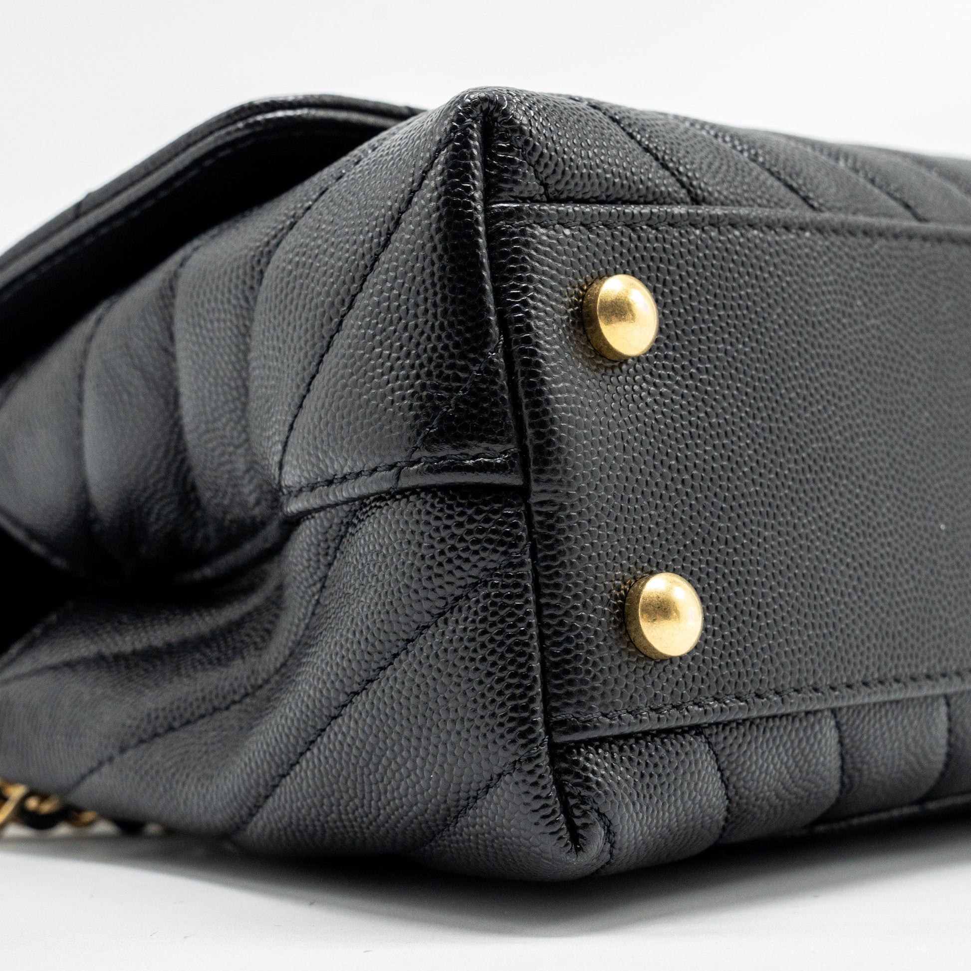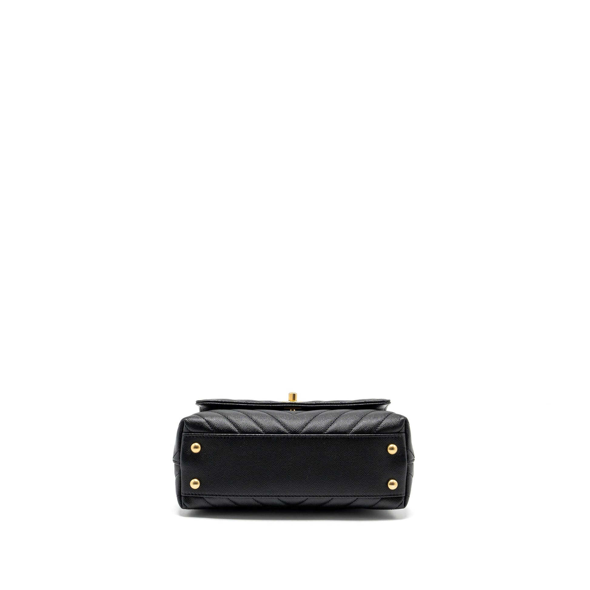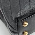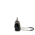 Chanel Small Coco Handle Chevron Caviar with Lizard Embossed Handle Black/ Burgundy GHW