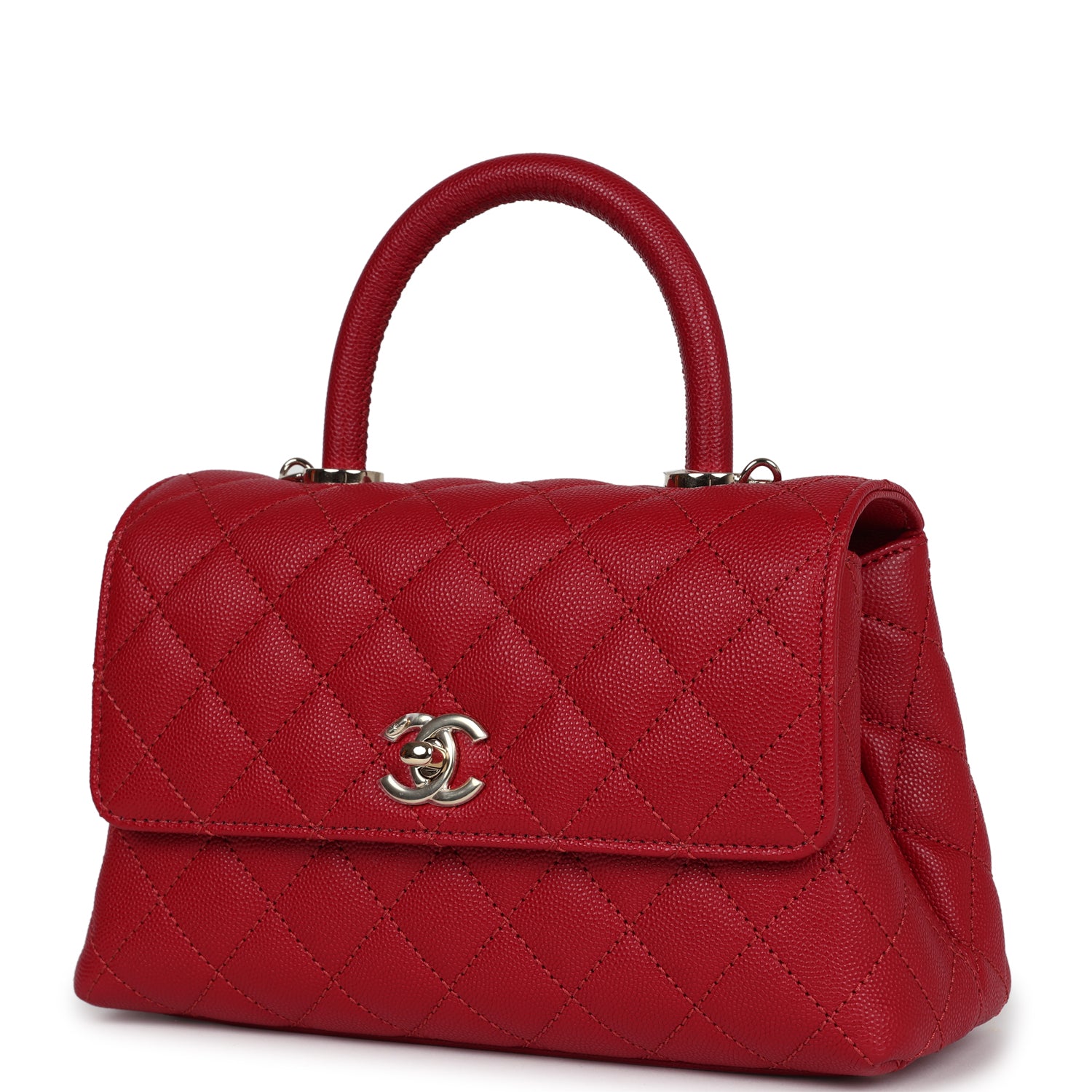 Chanel Small Coco Handle Dark Red Caviar Light Gold Hardware