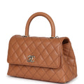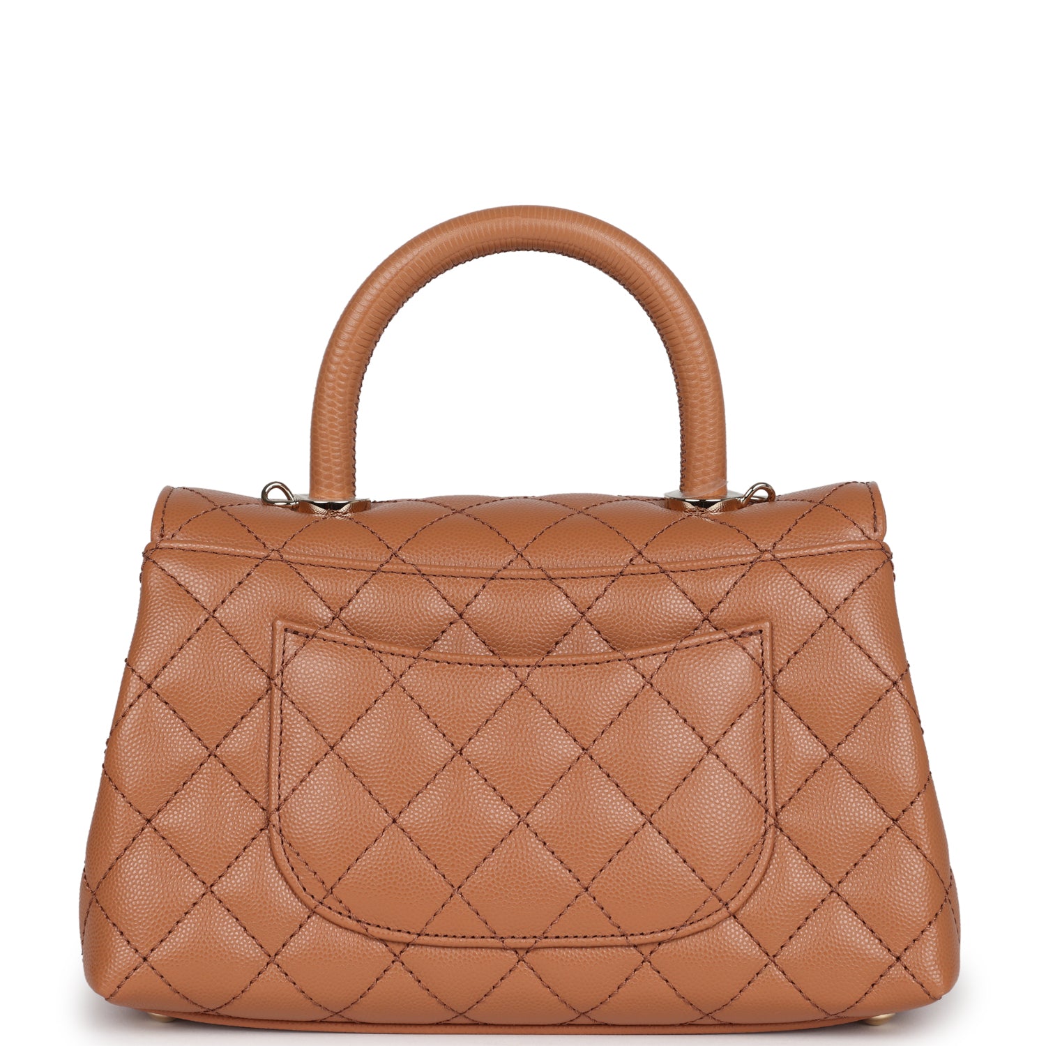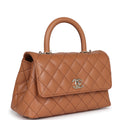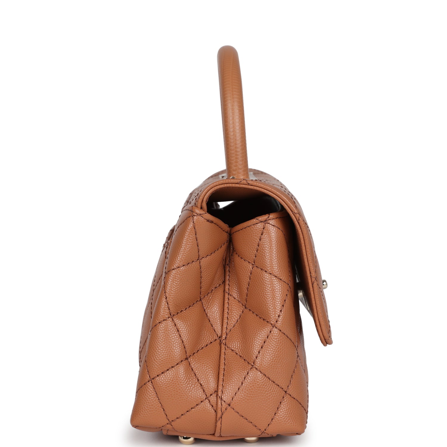 Chanel Small Coco Handle Flap Bag Brown Caviar Light Gold Hardware