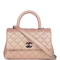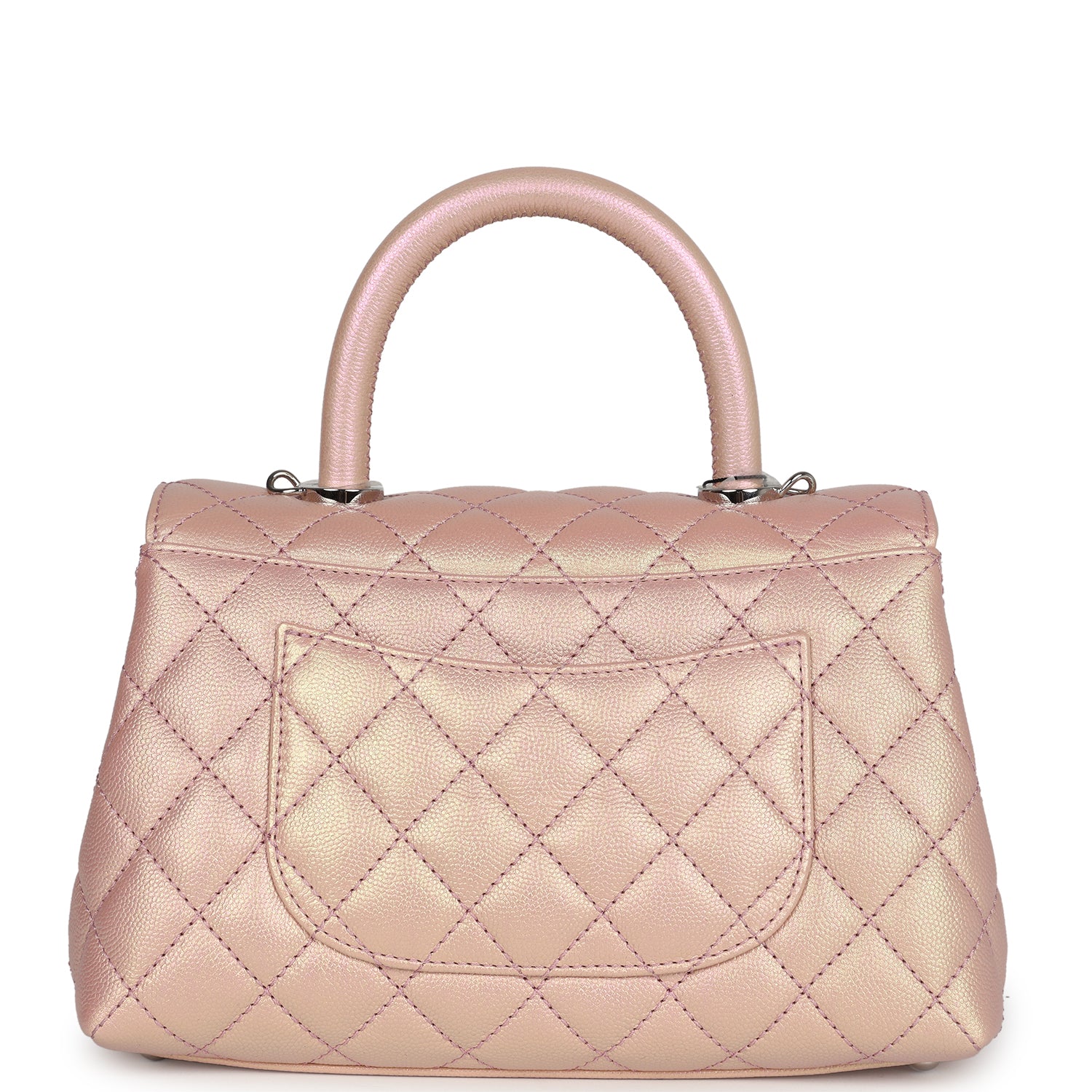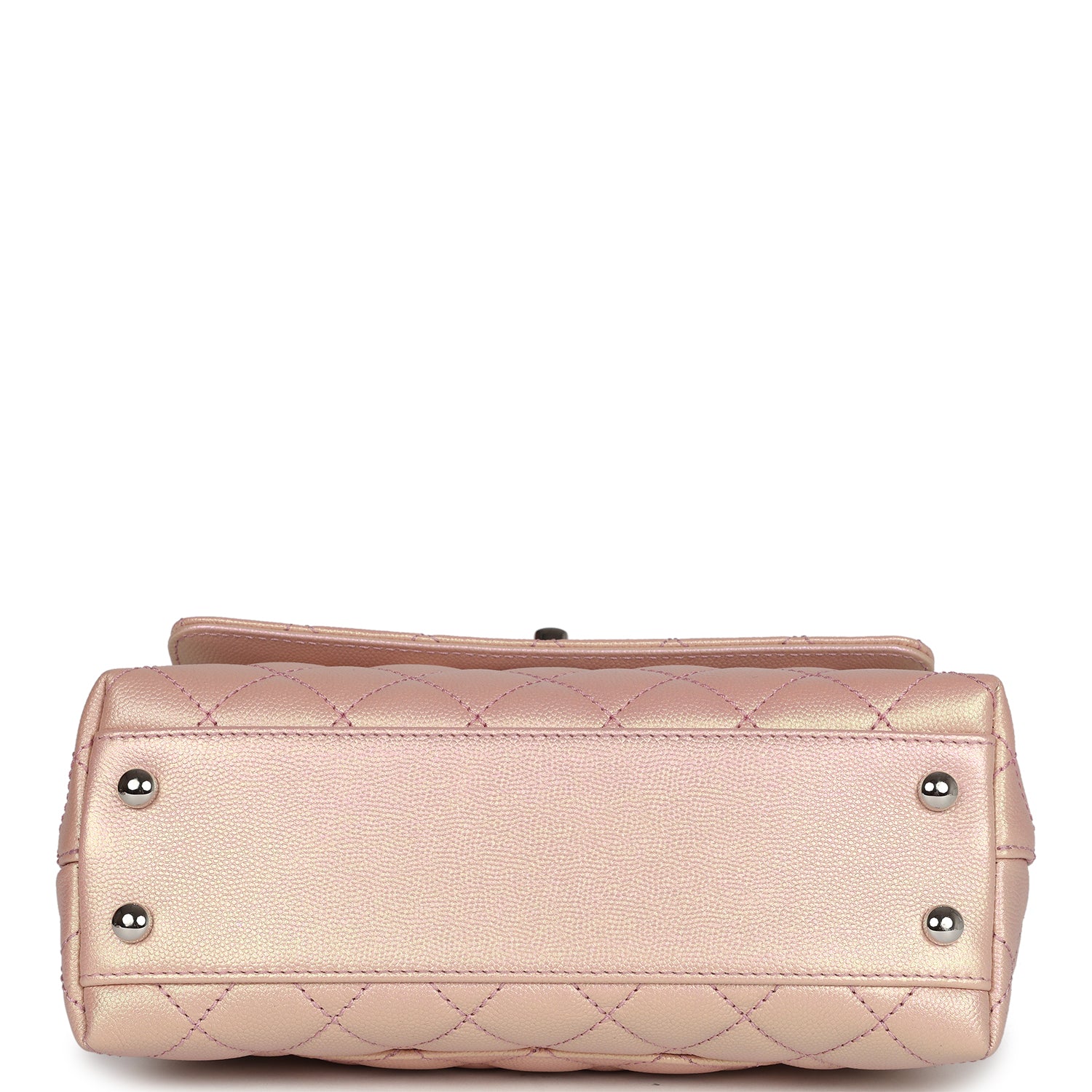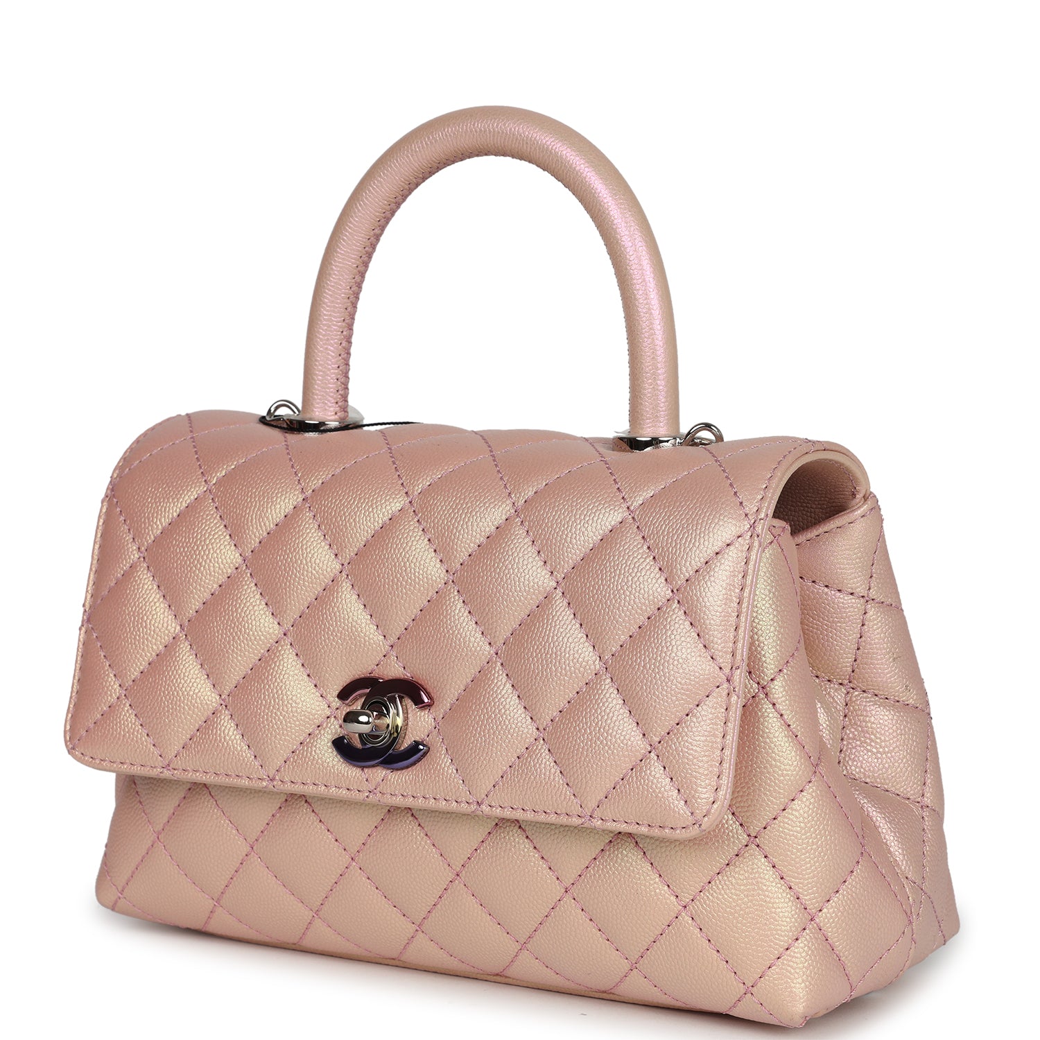 Chanel Small Coco Handle Flap Bag Light Pink Iridescent Caviar Silver Hardware