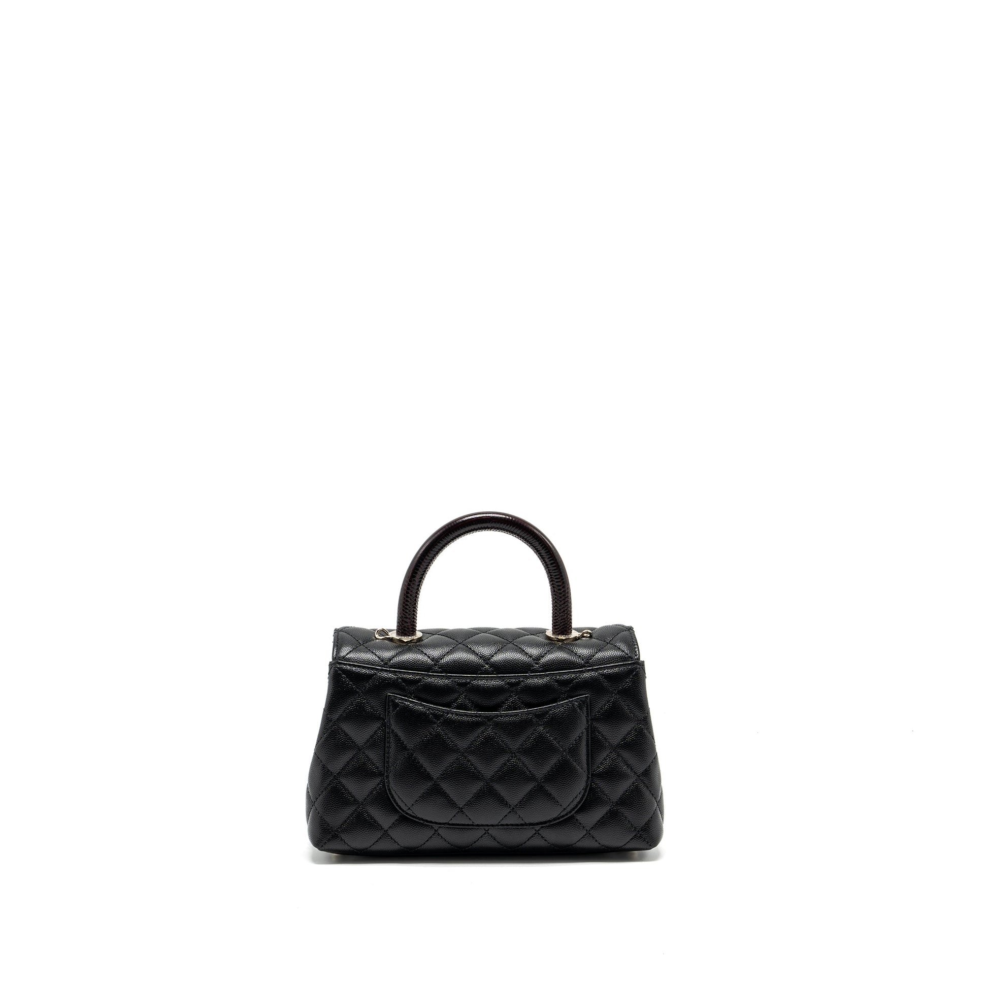 Chanel small coco handle with lizard embossed handle caviar black LGHW (microchip)