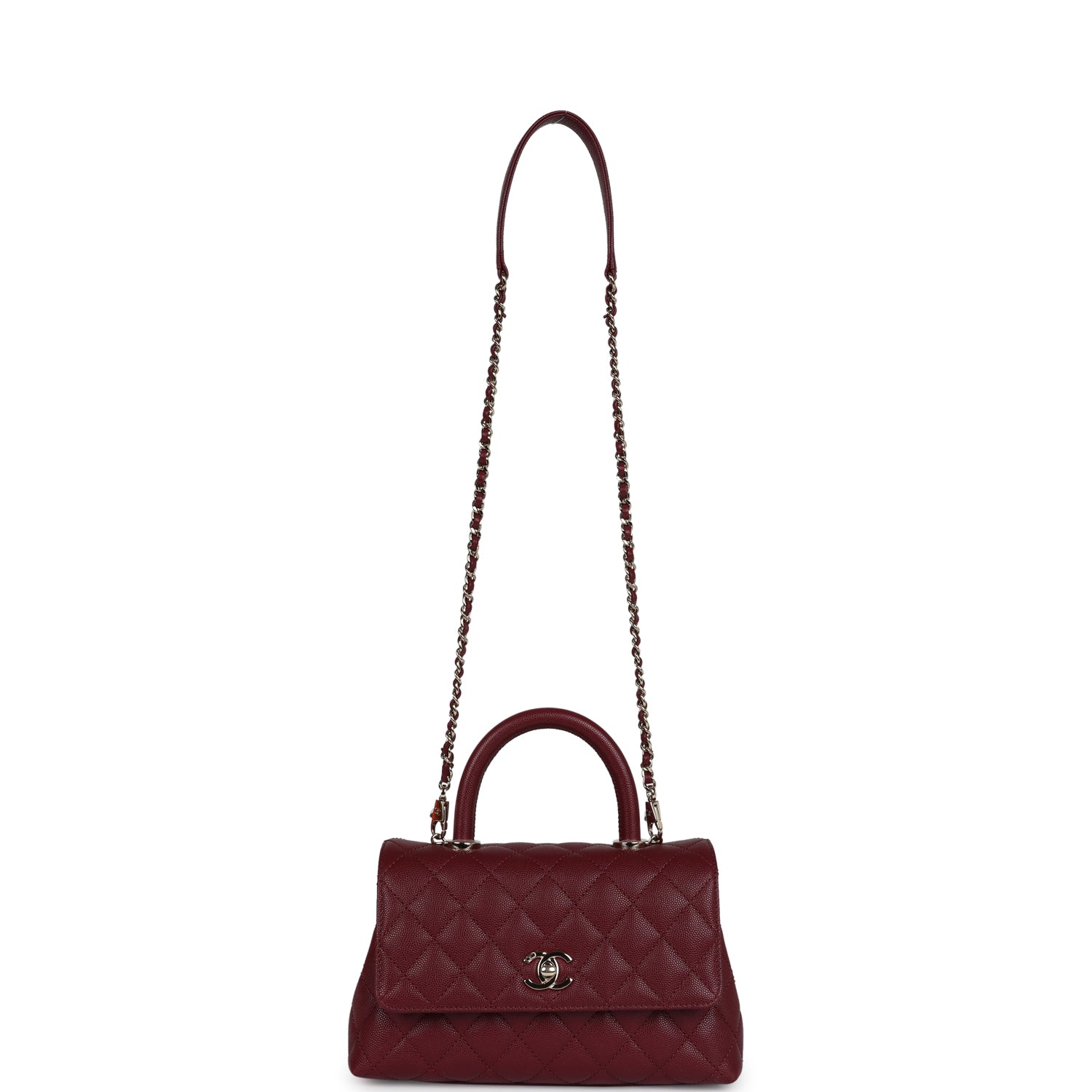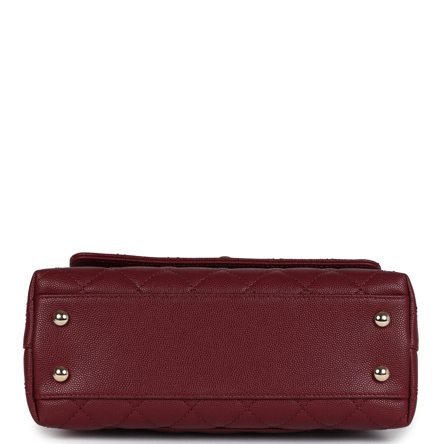 Chanel Small Coco Top Handle Flap Bag Burgundy Caviar Light Gold Hardware