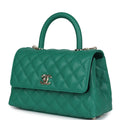 Chanel Small Coco Top Handle Flap Bag Dark Green Caviar Light Gold Hardware