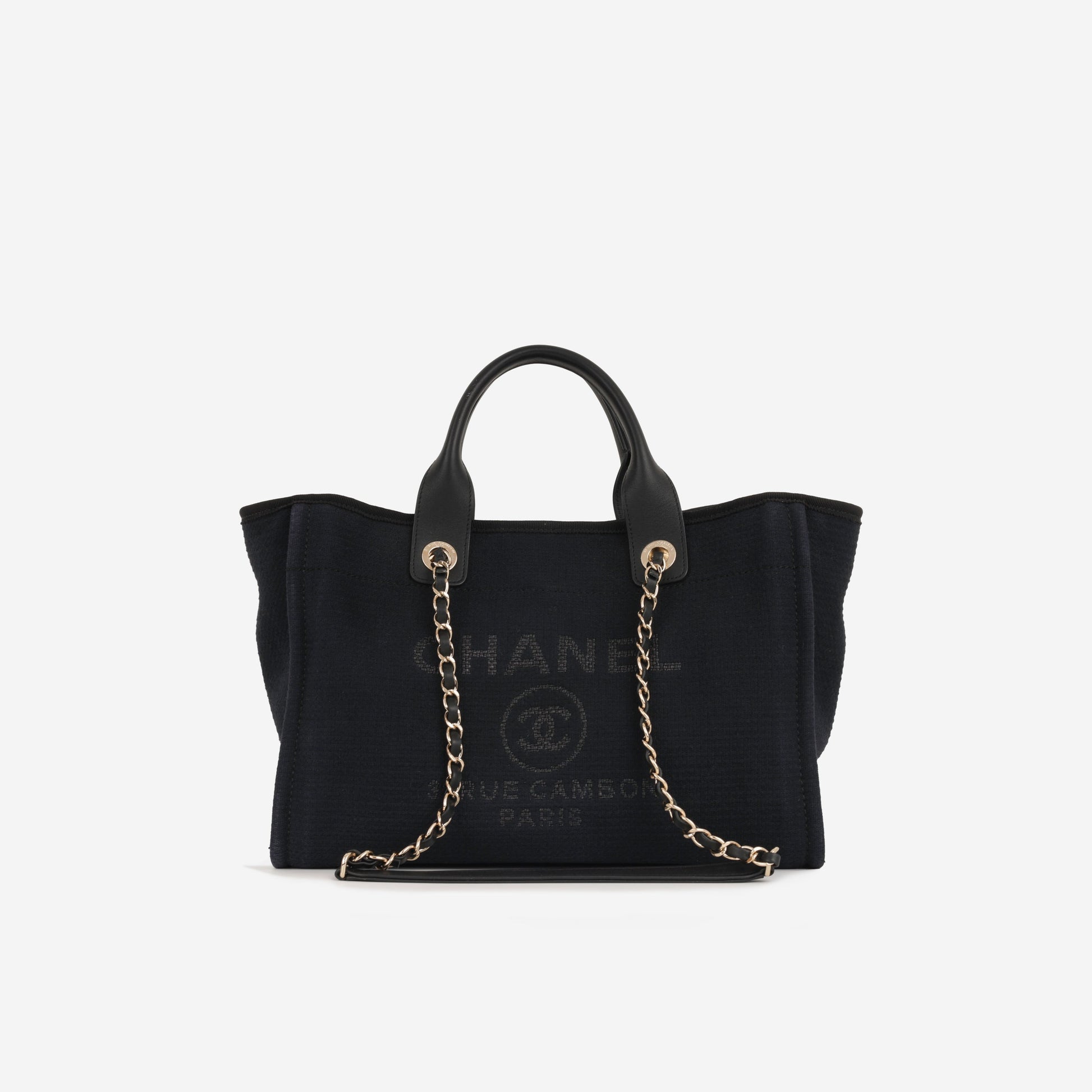 Chanel Small Deauville Black Mixed Fabrics Champagne Gold Hardware