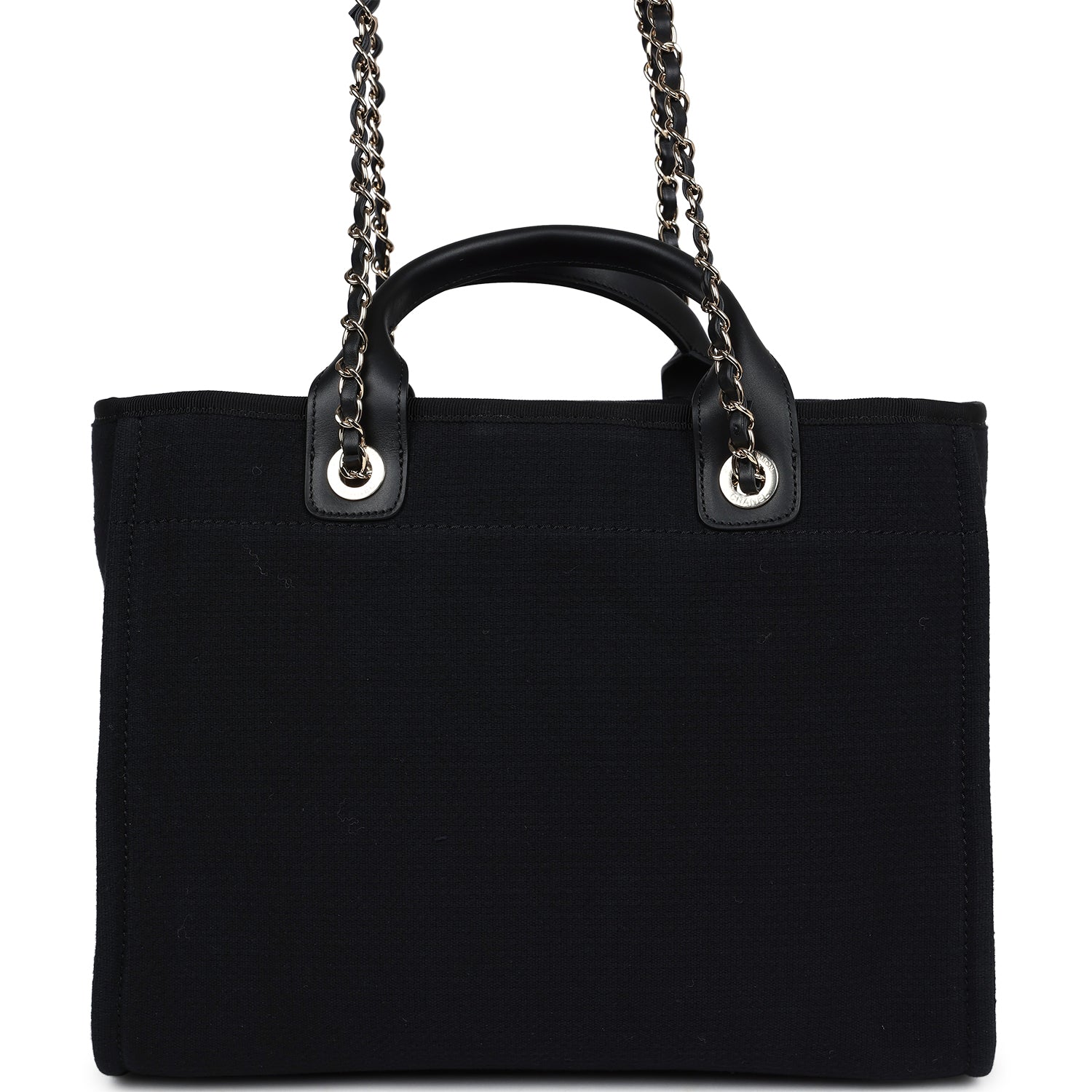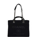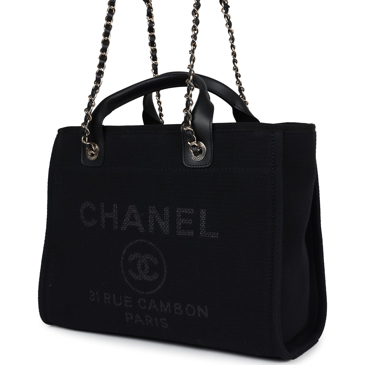 Chanel Small Deauville Shopping Tote Black Canvas Light Gold Hardware