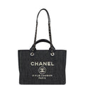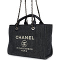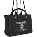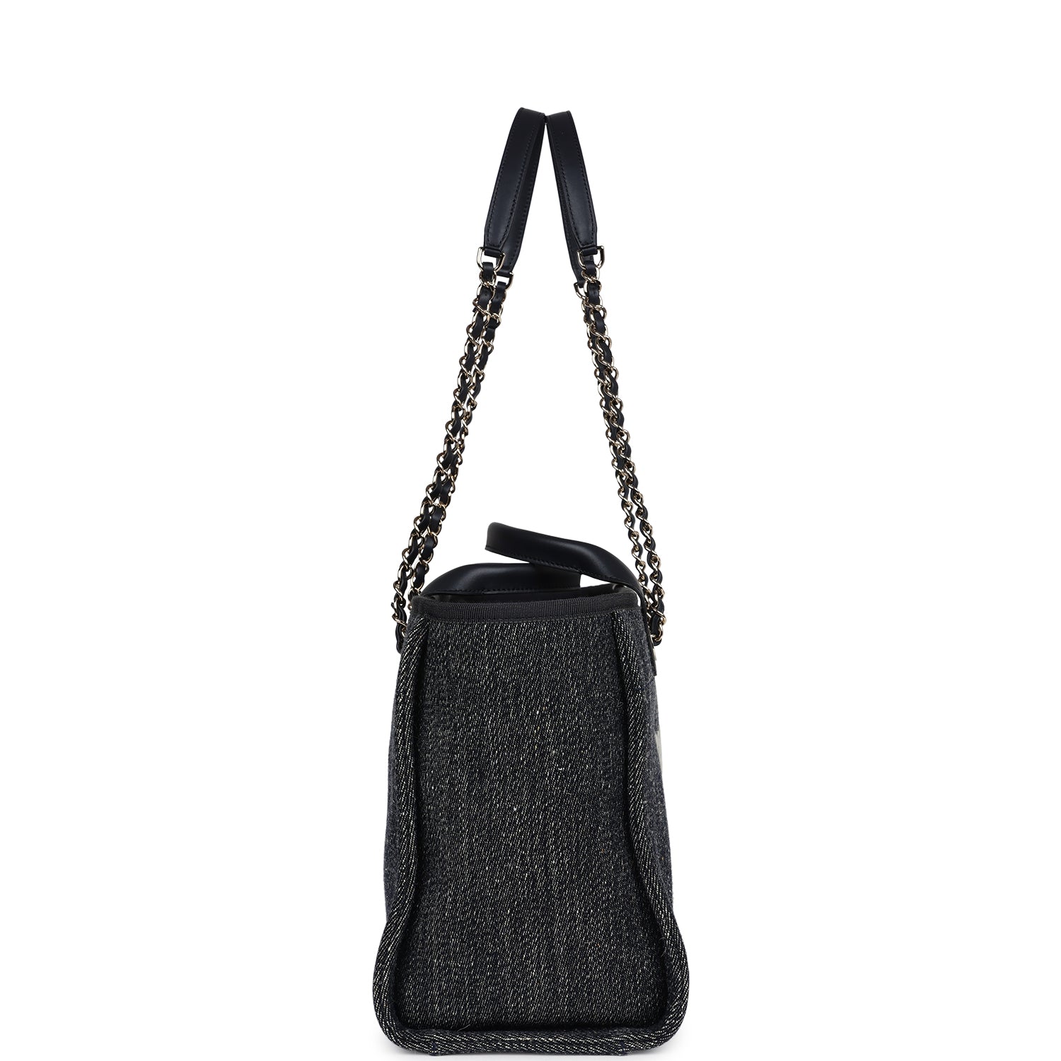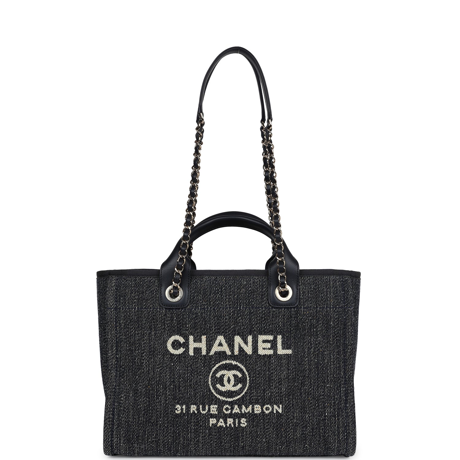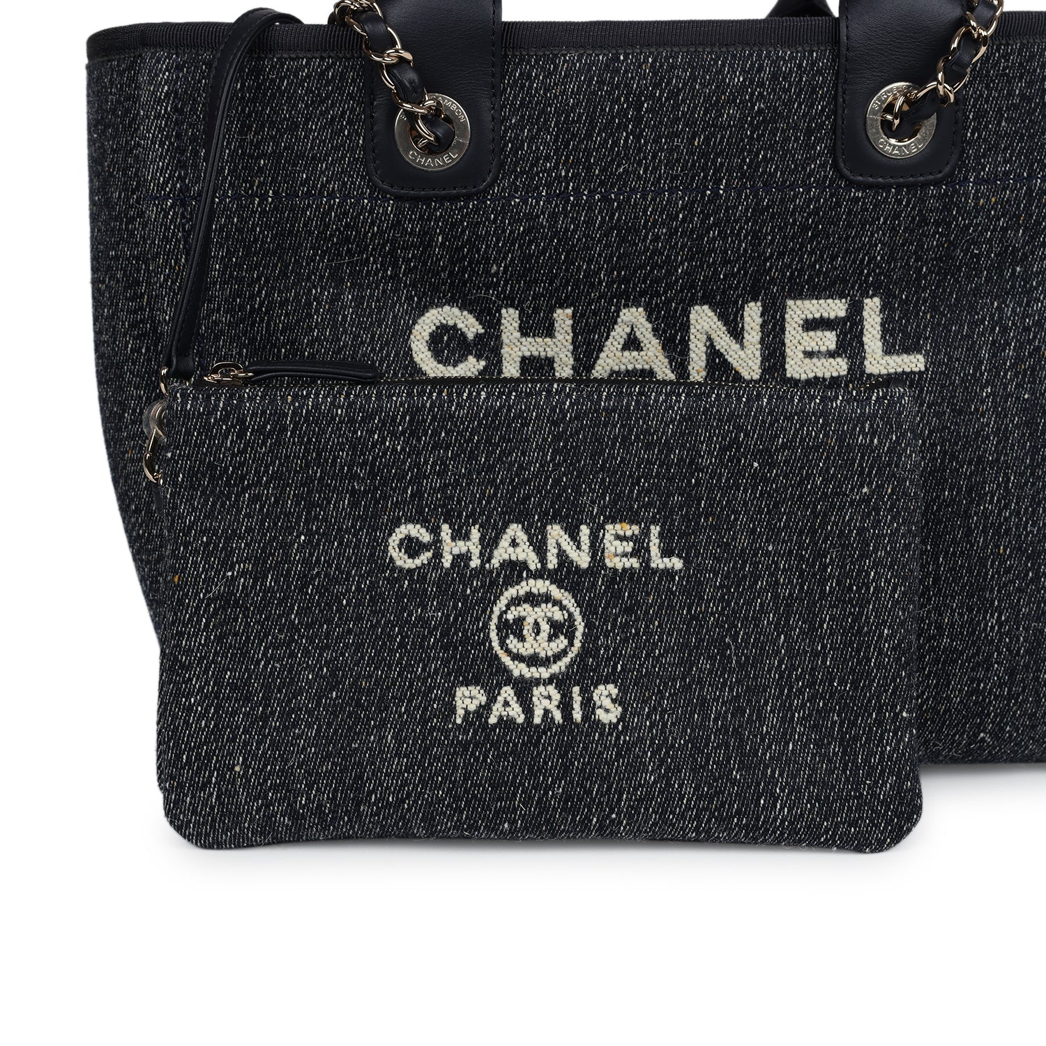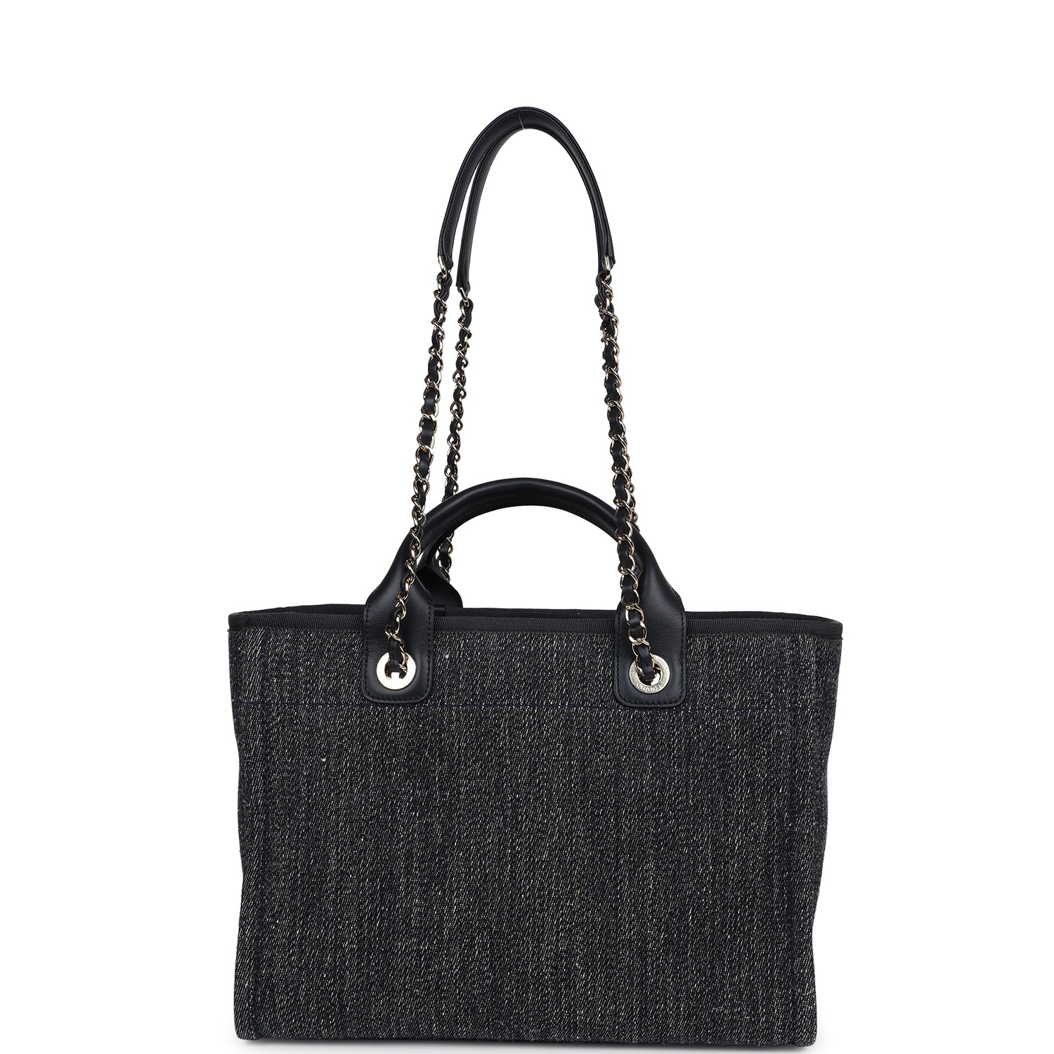 Chanel Small Deauville Shopping Tote Dark Blue Denim Light Gold Hardware