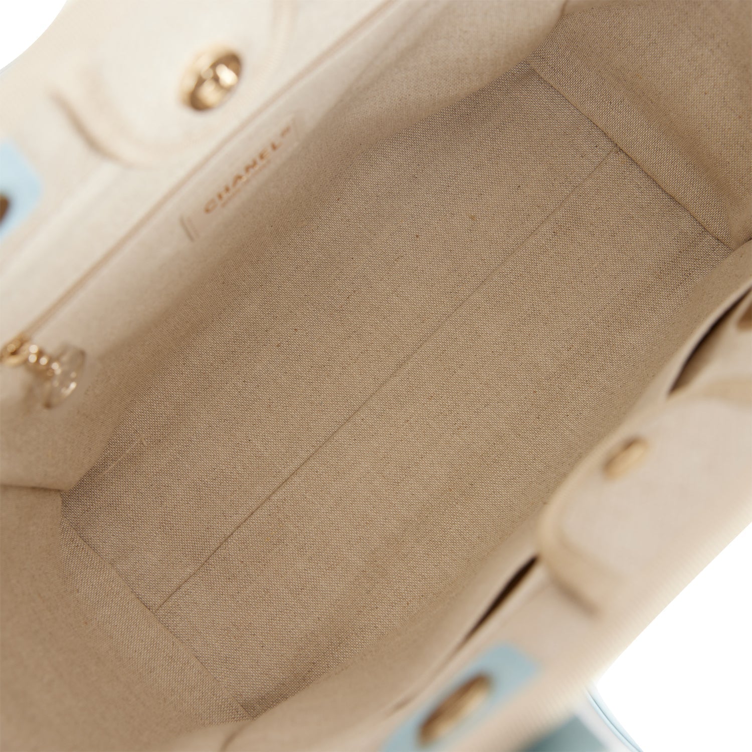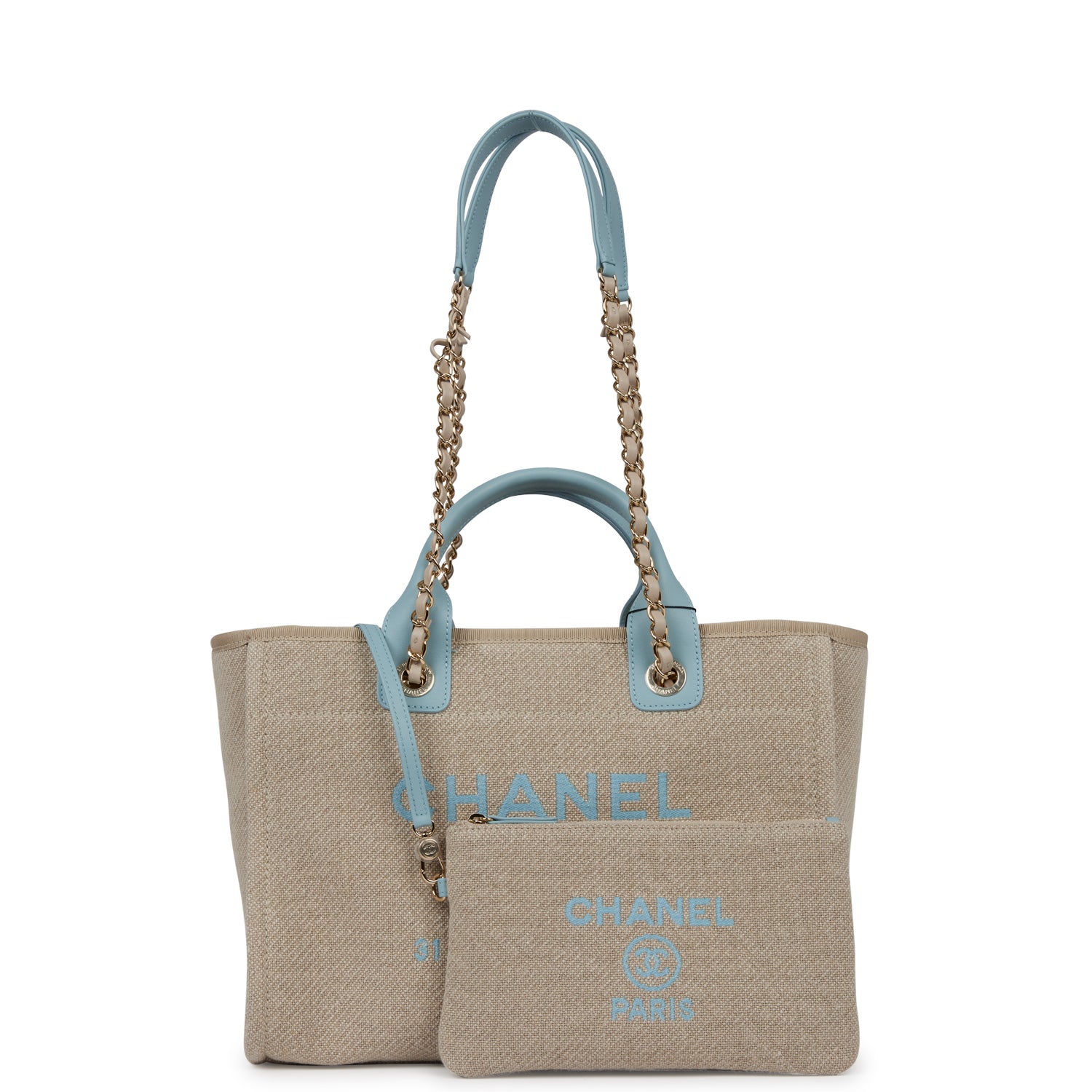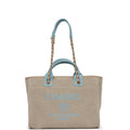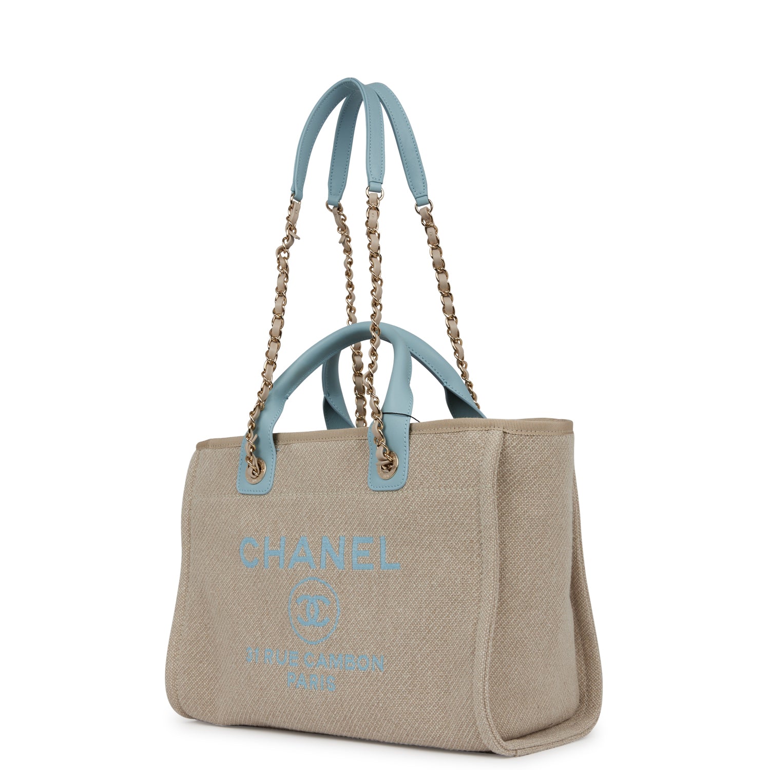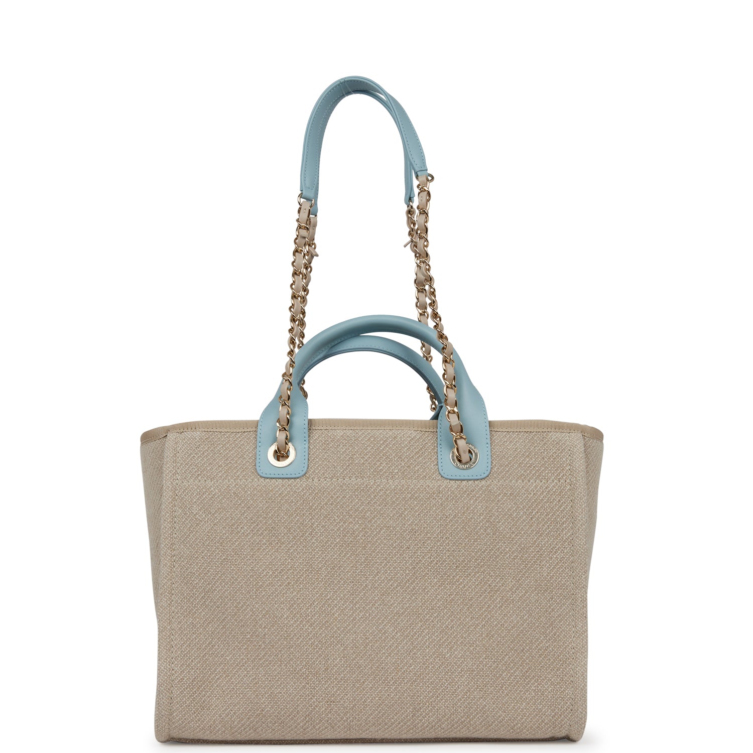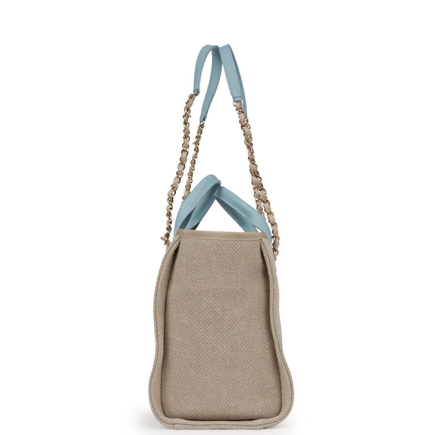 Chanel Small Deauville Shopping Tote Blue and Beige Boucle Light Gold Hardware
