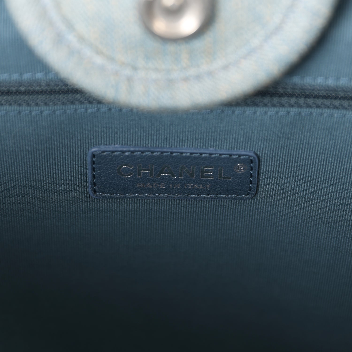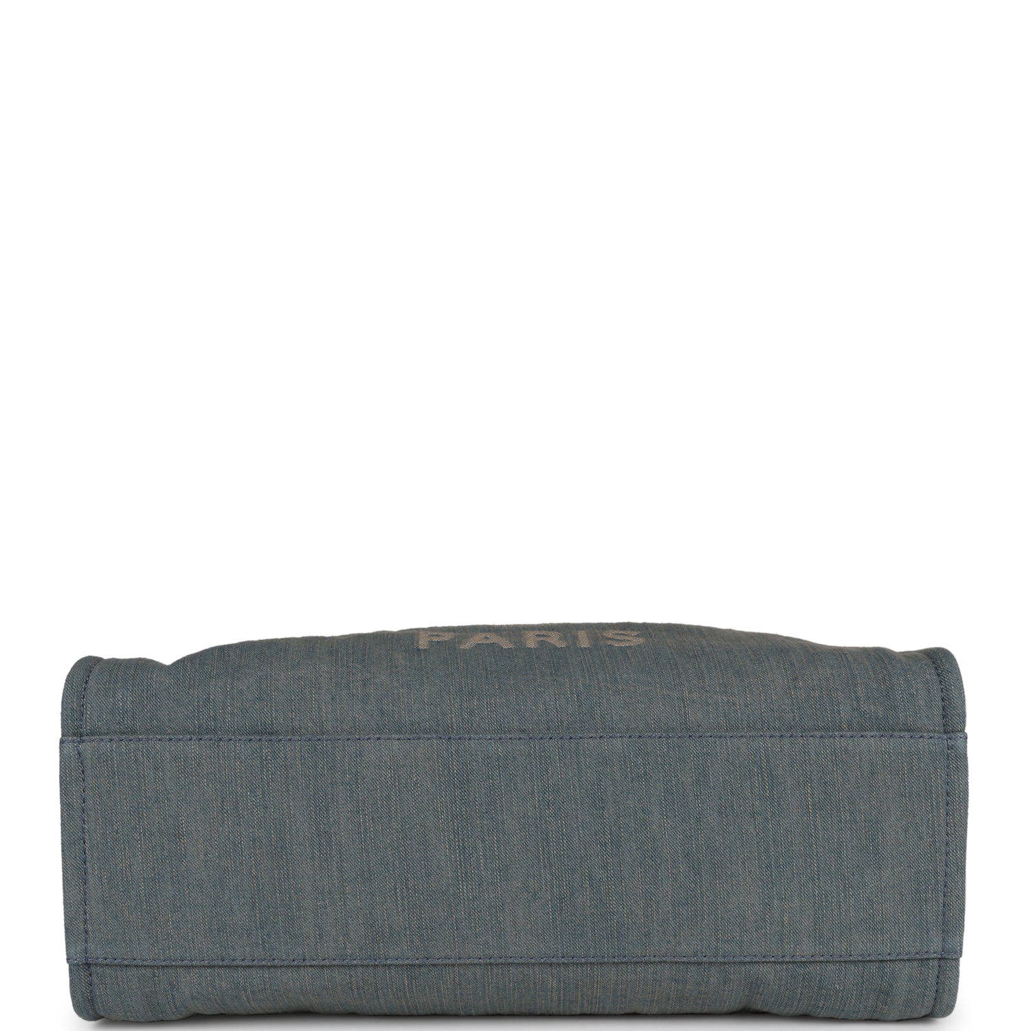 Chanel Large Deauville Shopping Tote Distressed Blue Denim Silver Hardware