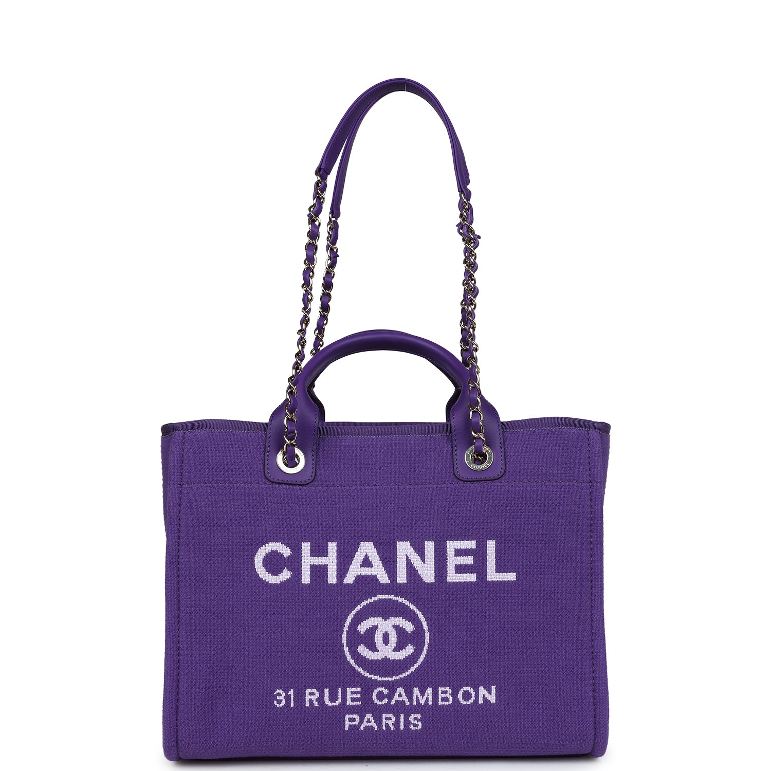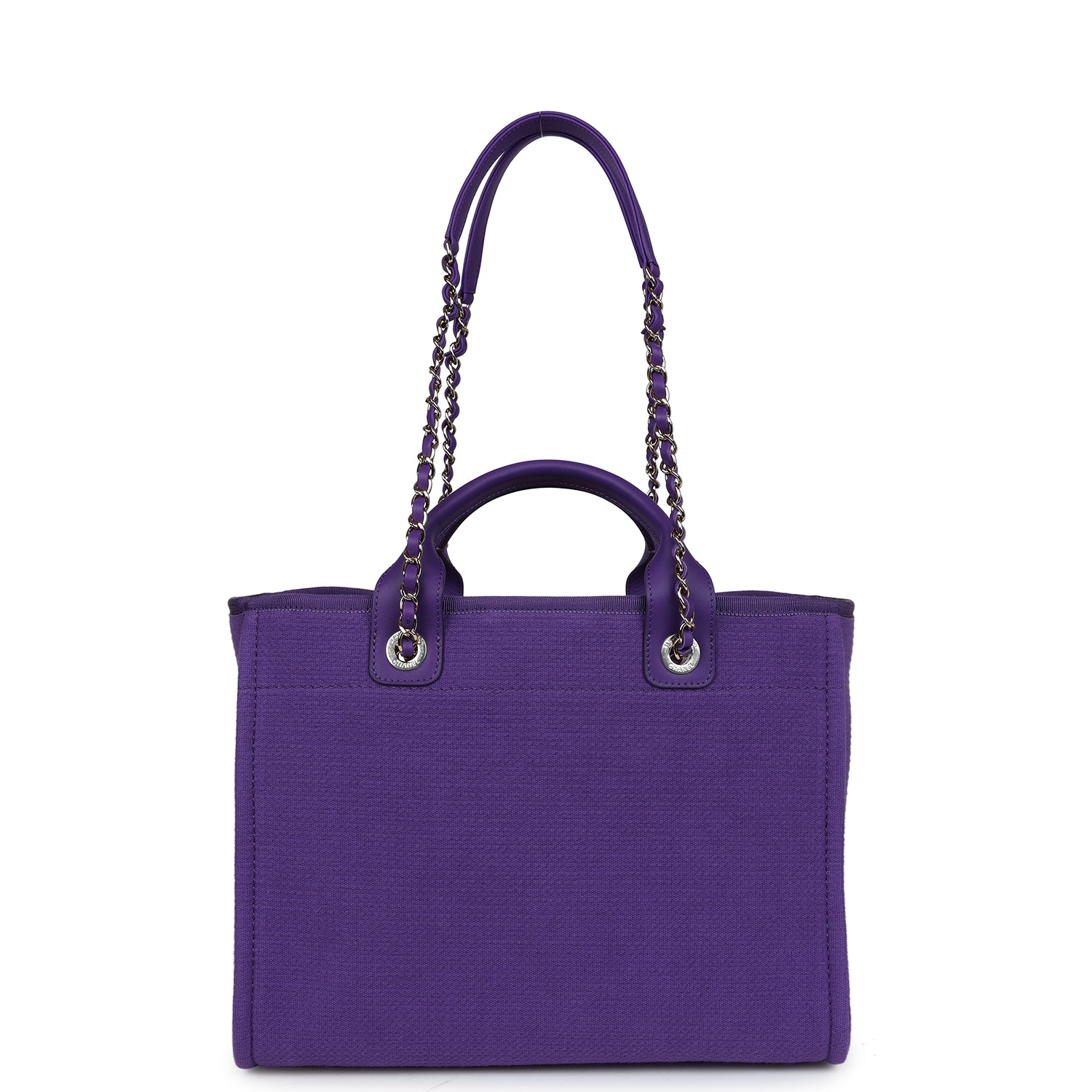 Chanel Small Deauville Shopping Tote Purple Canvas Gold Hardware