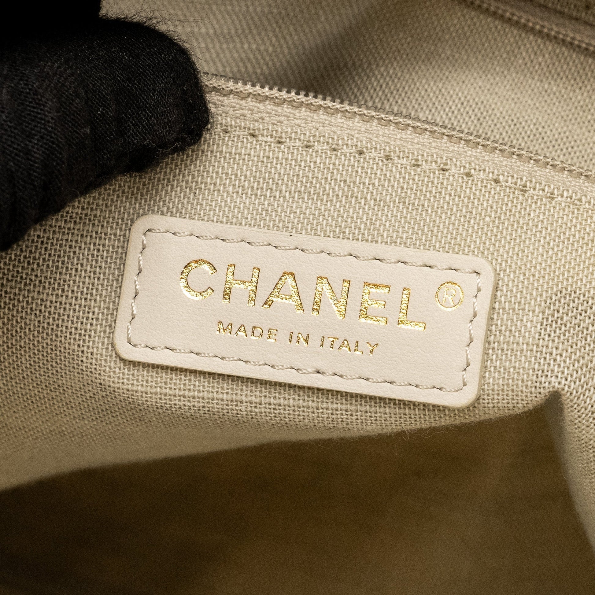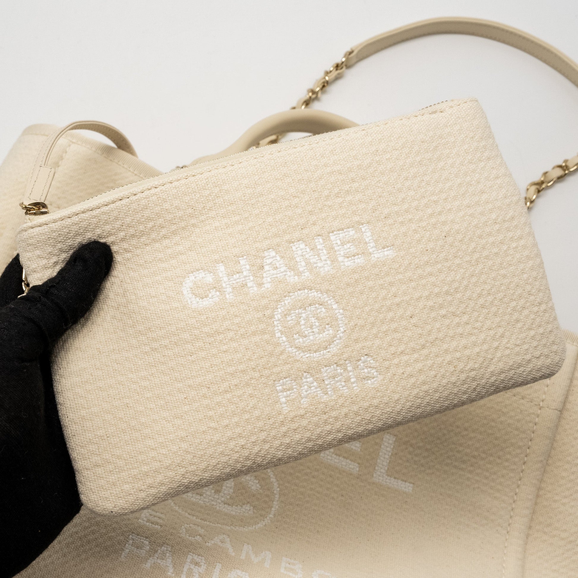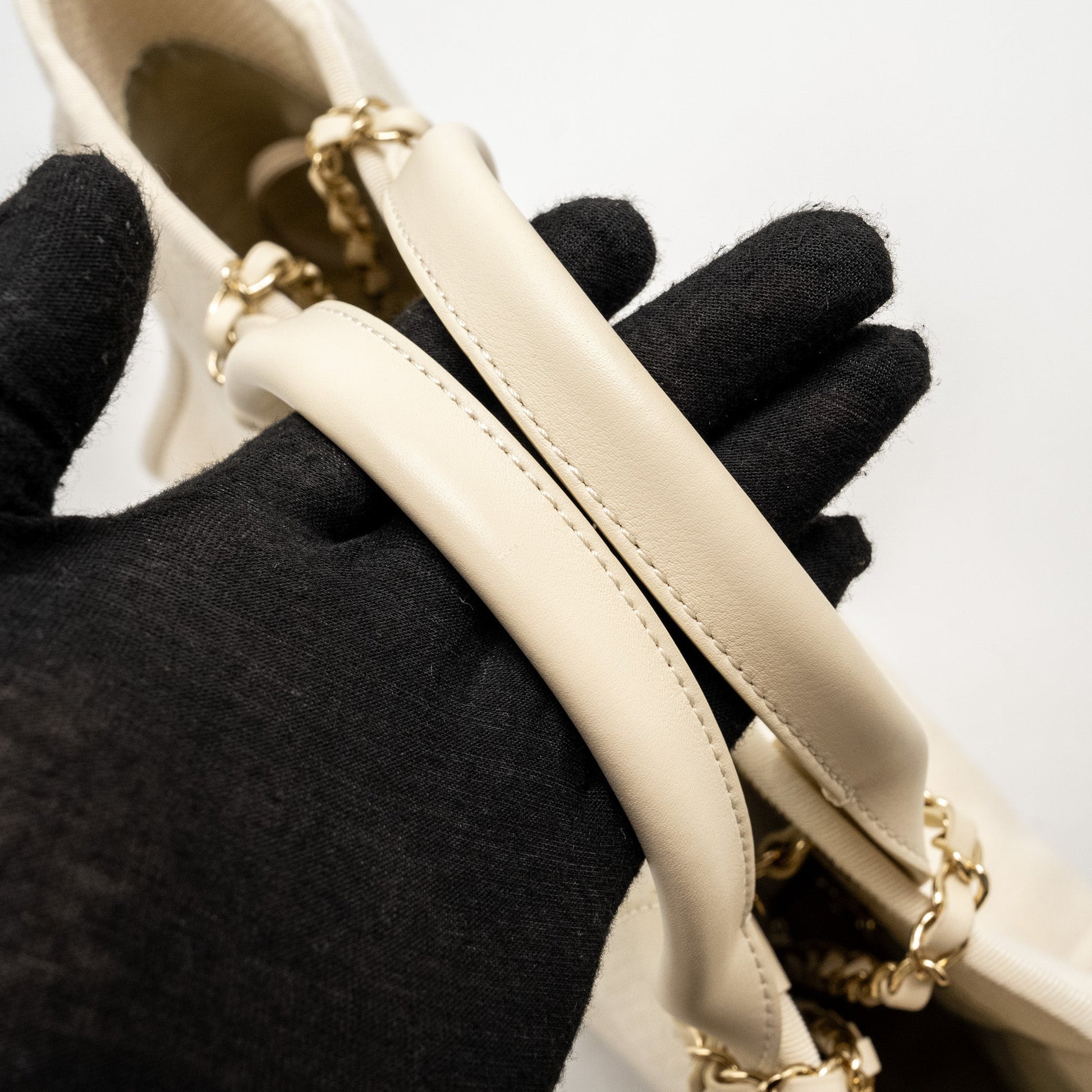 Chanel Small Deauville Shopping Tote Bag Calfskin/Fabric Light Beige LGHW (microchip)