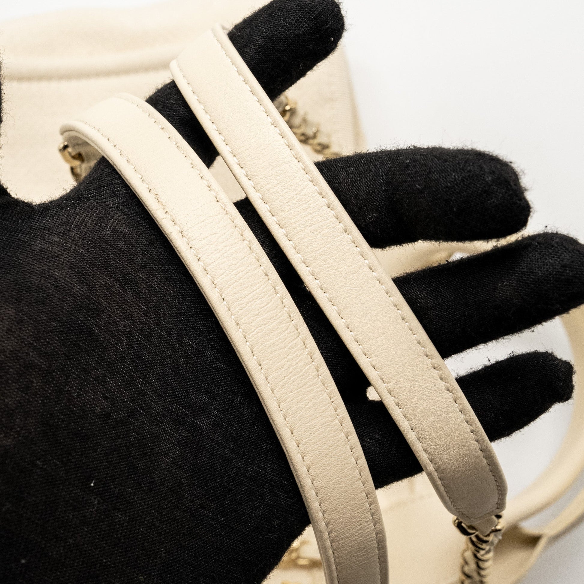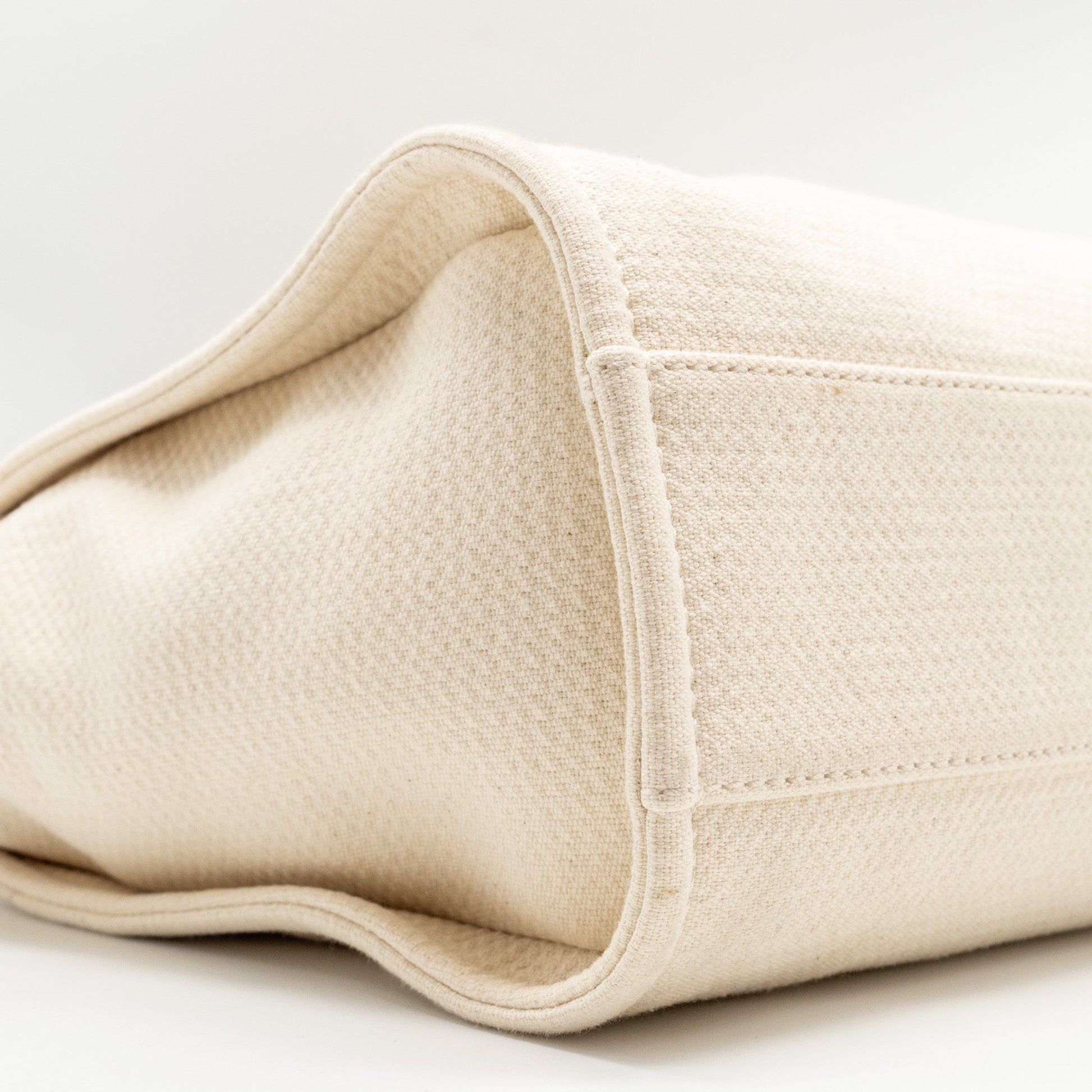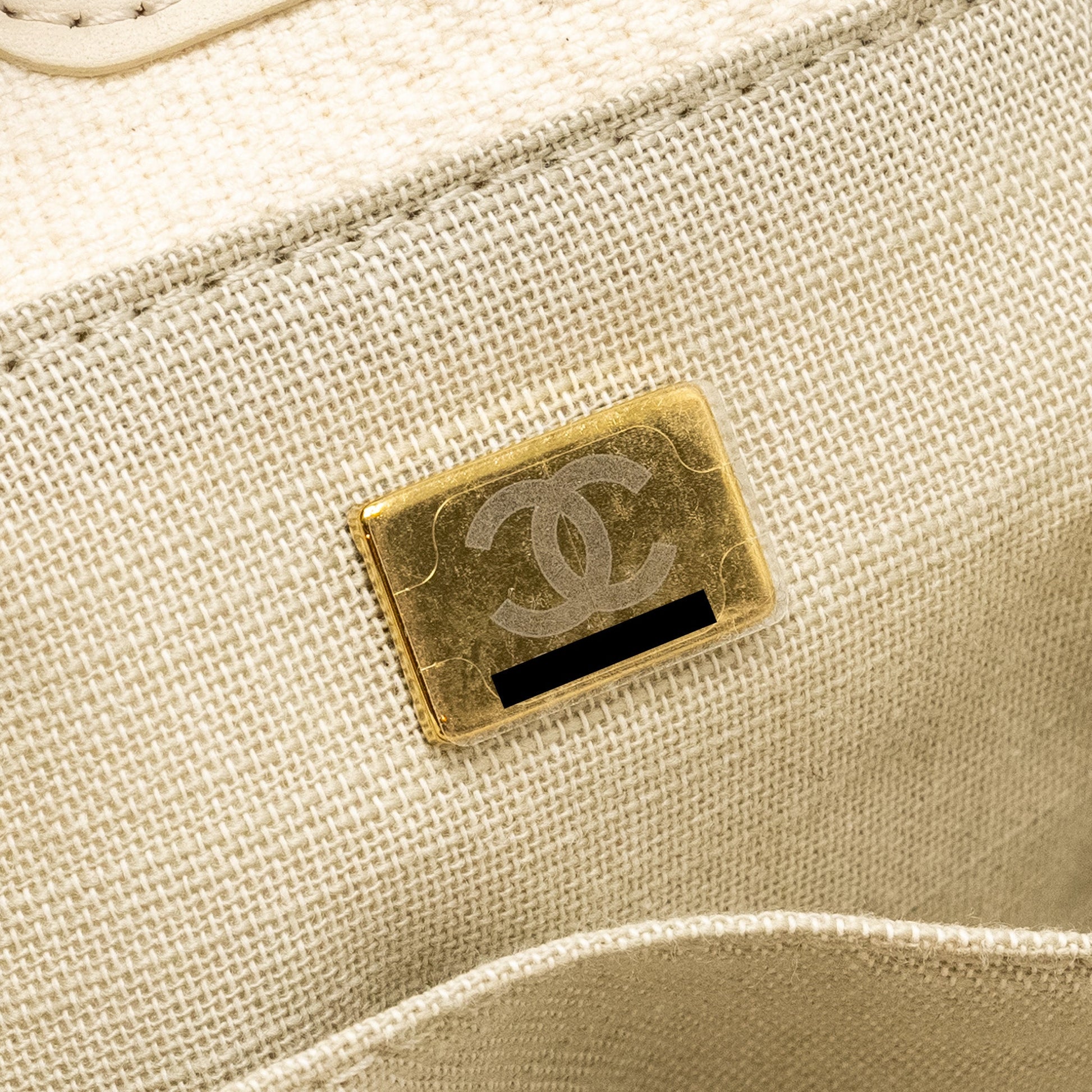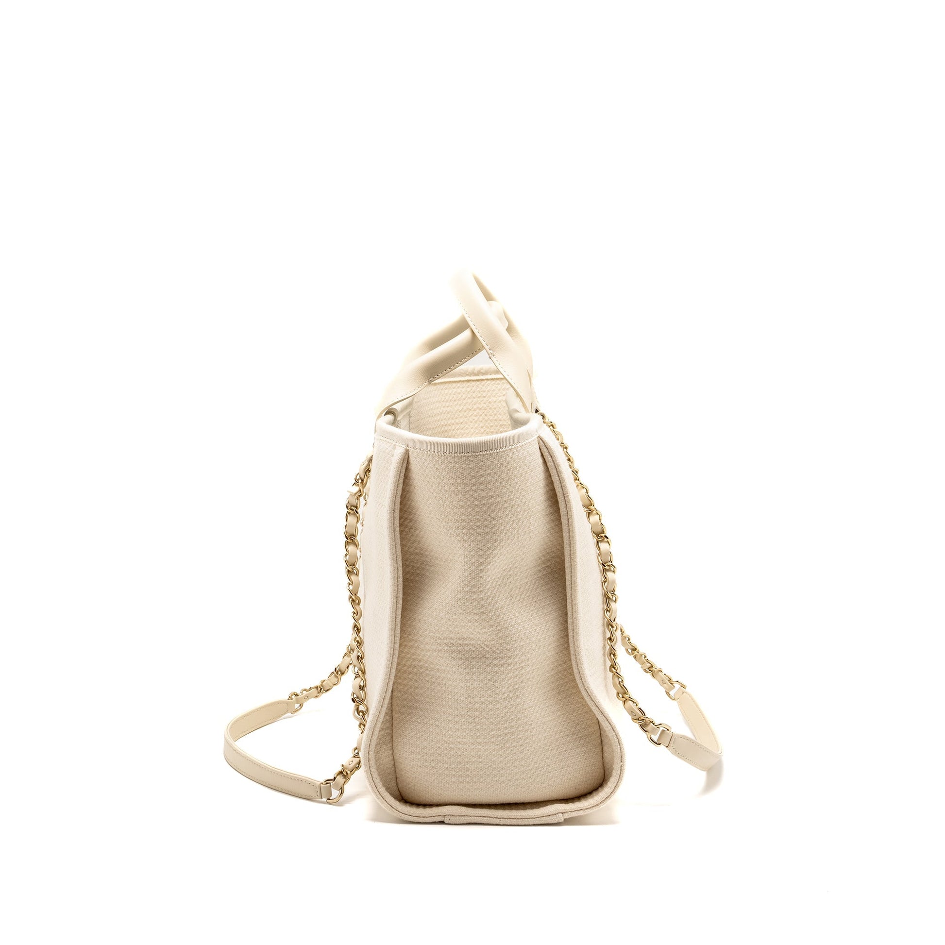 Chanel Small Deauville Shopping Tote Bag Calfskin/Fabric Light Beige LGHW (microchip)