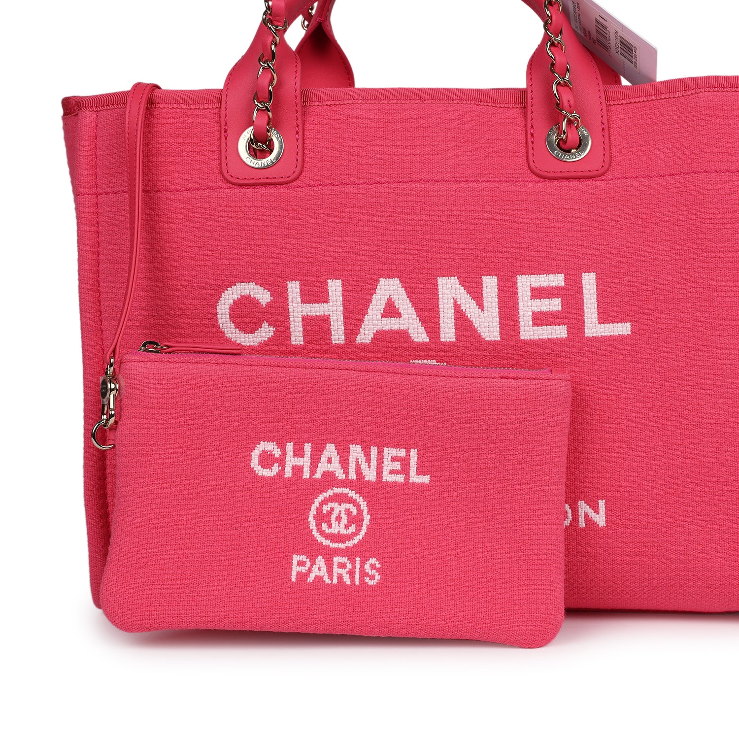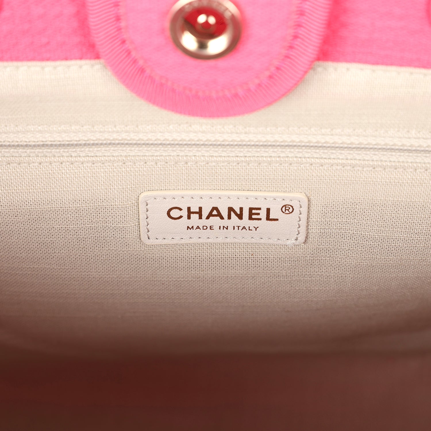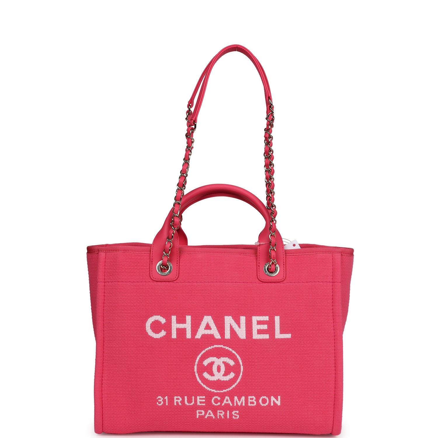 Chanel Small Deauville Shopping Tote Hot Pink Canvas Light Gold Hardware