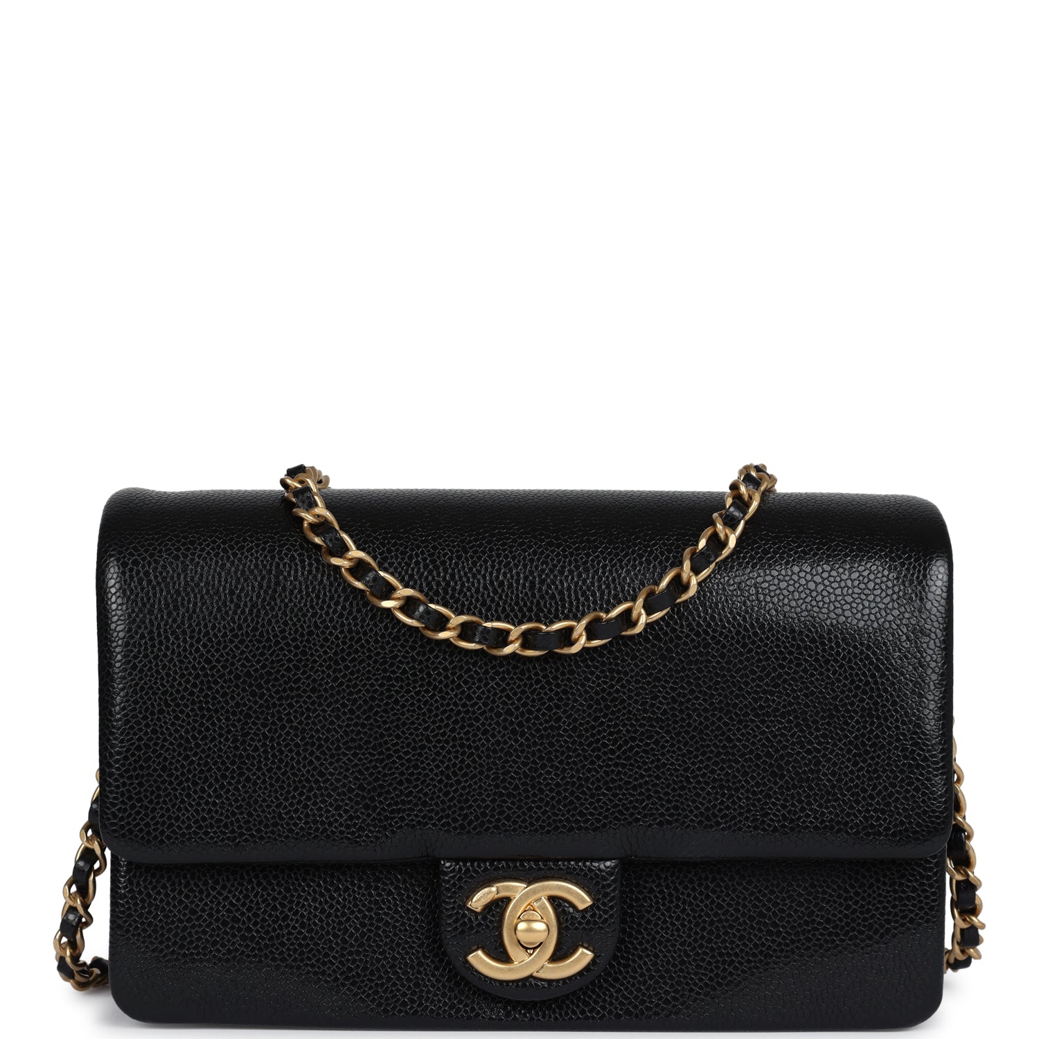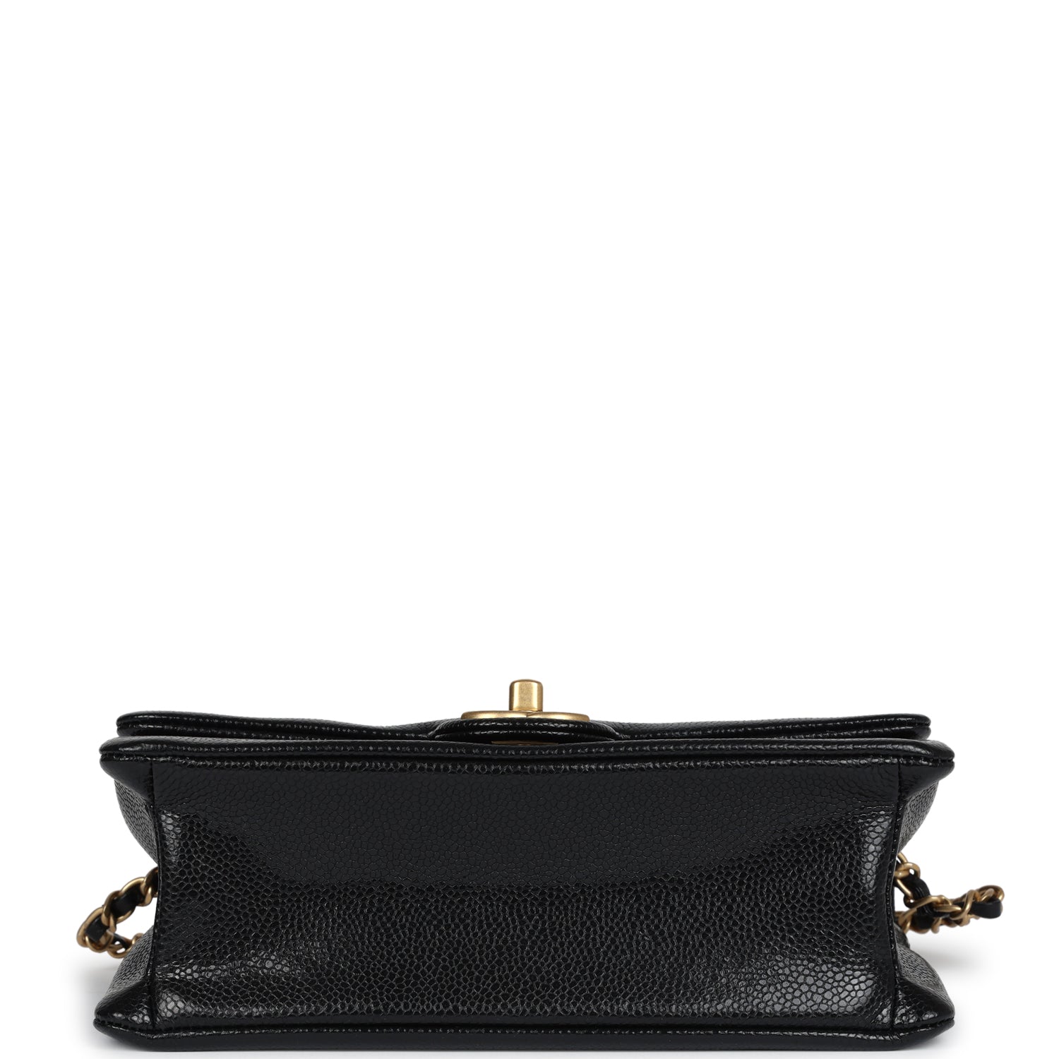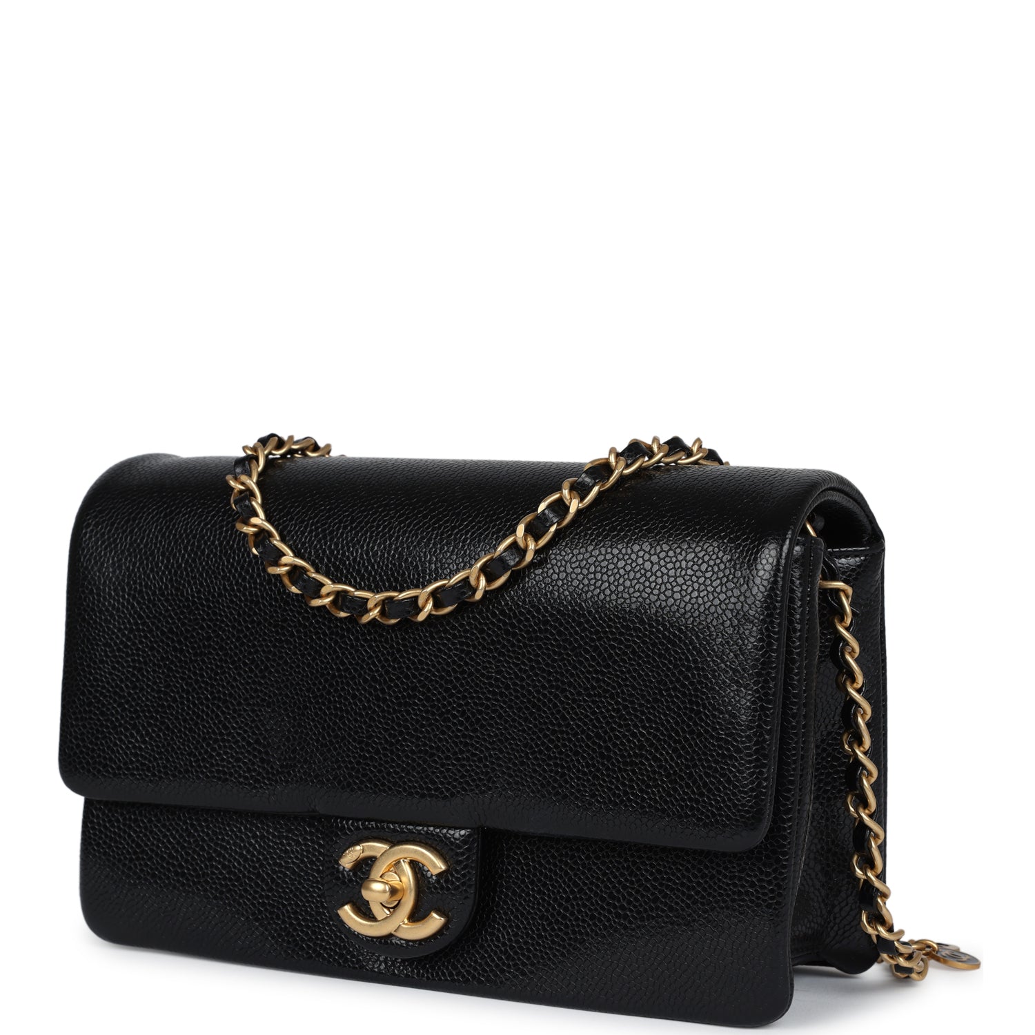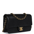 Chanel Small Flap Bag Black Shiny Grained Calfskin Brushed Gold Hardware