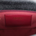 The interior is lined in burgundy grossgrain fabric and has one zip pocket on the rear wall with logo pull and one small slip pocket on rear wall.