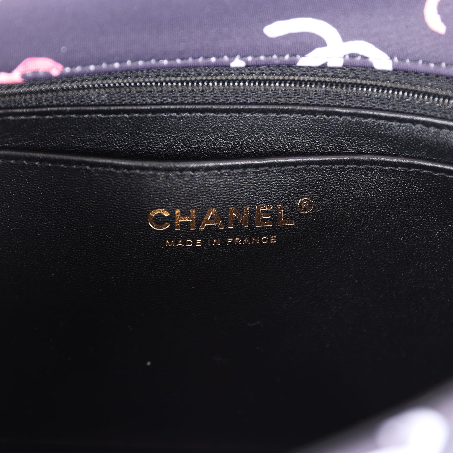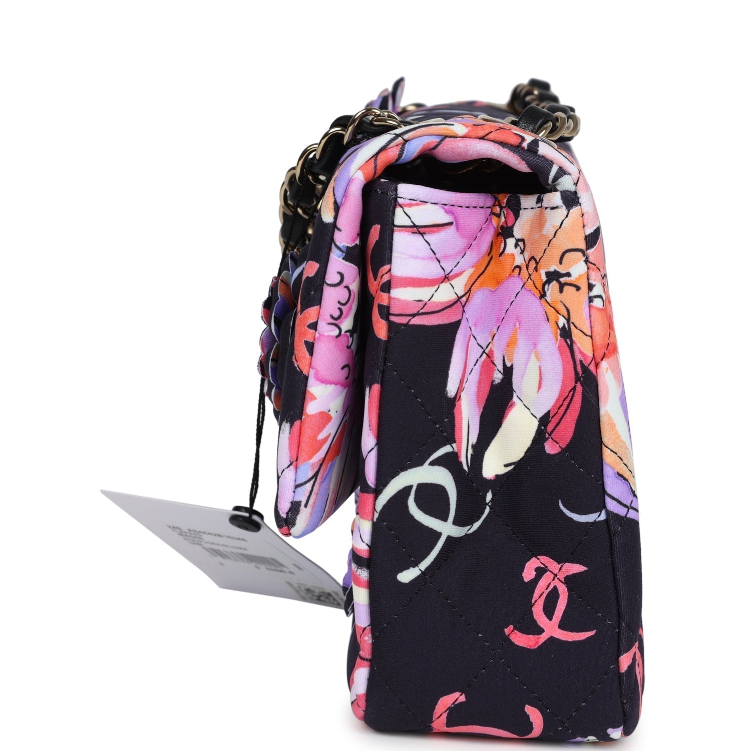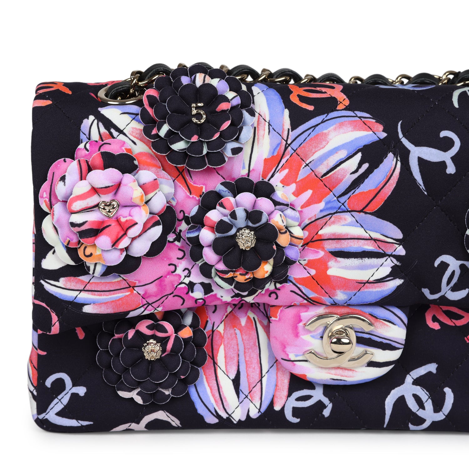 Chanel Small Flap Bag Black Multi Floral Fabric Light Gold Hardware