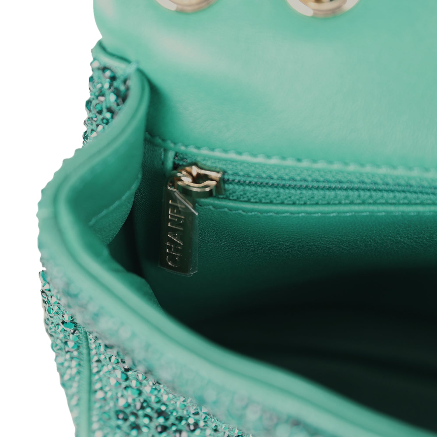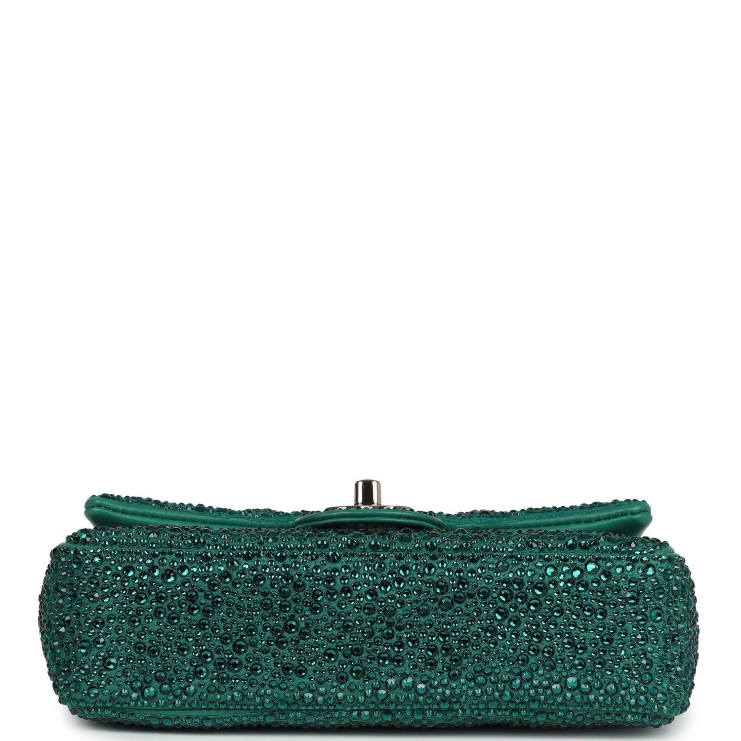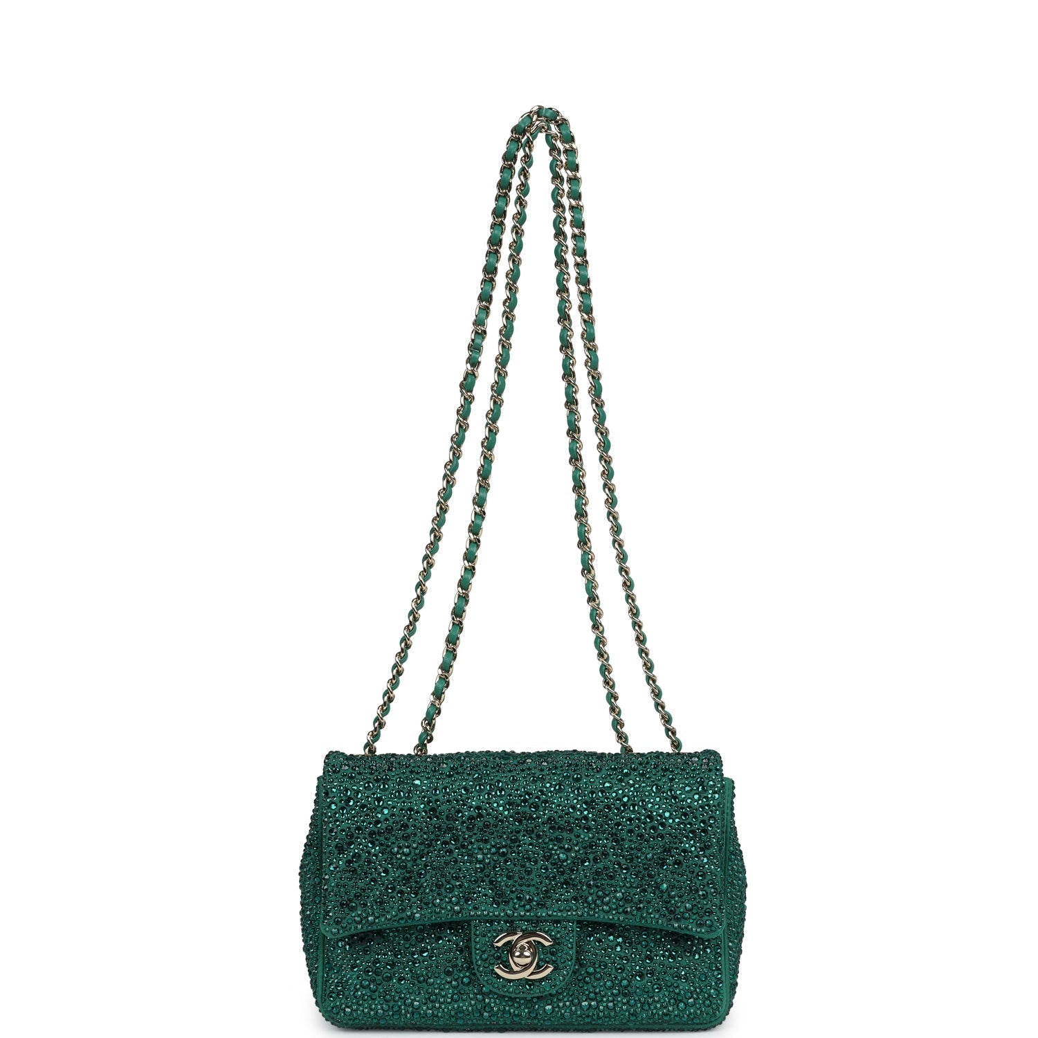 Chanel Mini Flap Bag Green Swarovski Crystal and Green Lambskin Silver Hardware