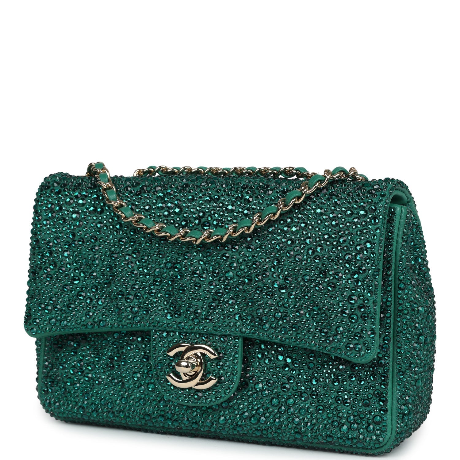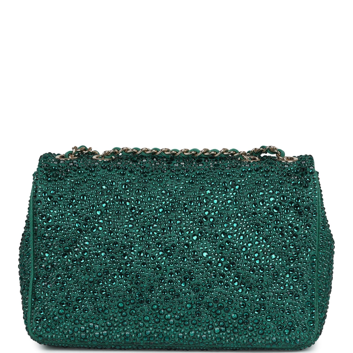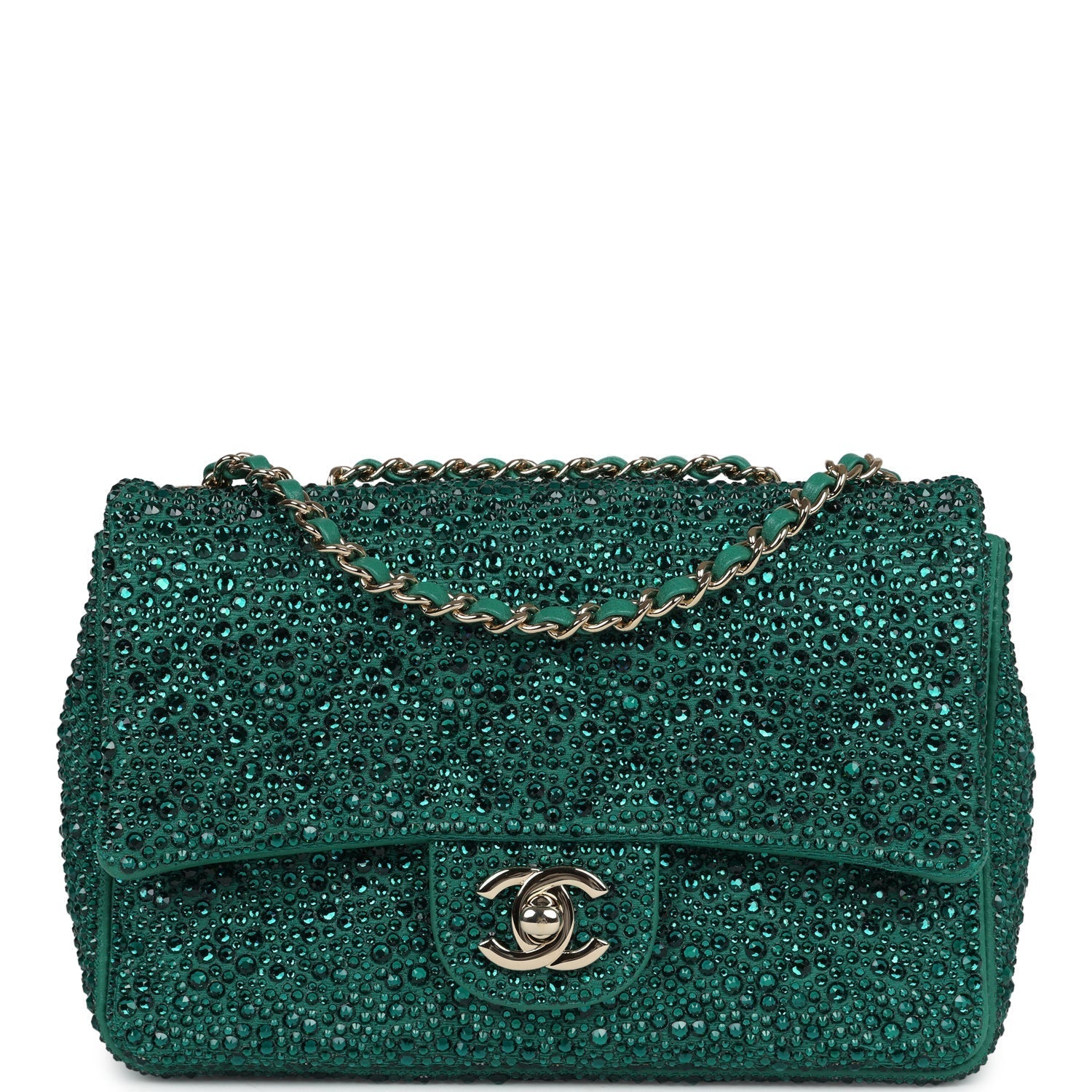 Chanel Mini Flap Bag Green Swarovski Crystal and Green Lambskin Silver Hardware