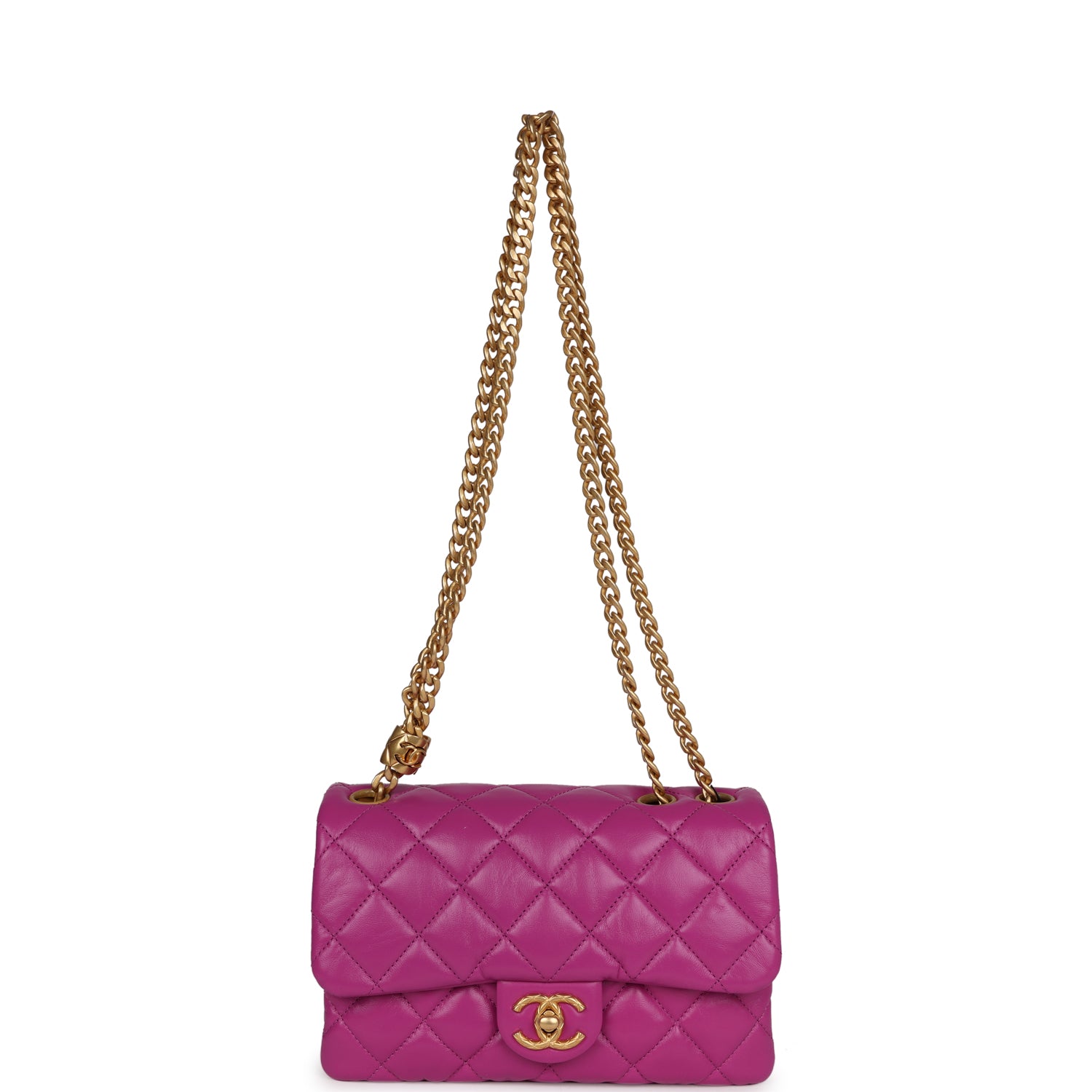 Chanel Small Crush Flap Bag Purple Shiny Aged Calfskin Brushed Gold Hardware