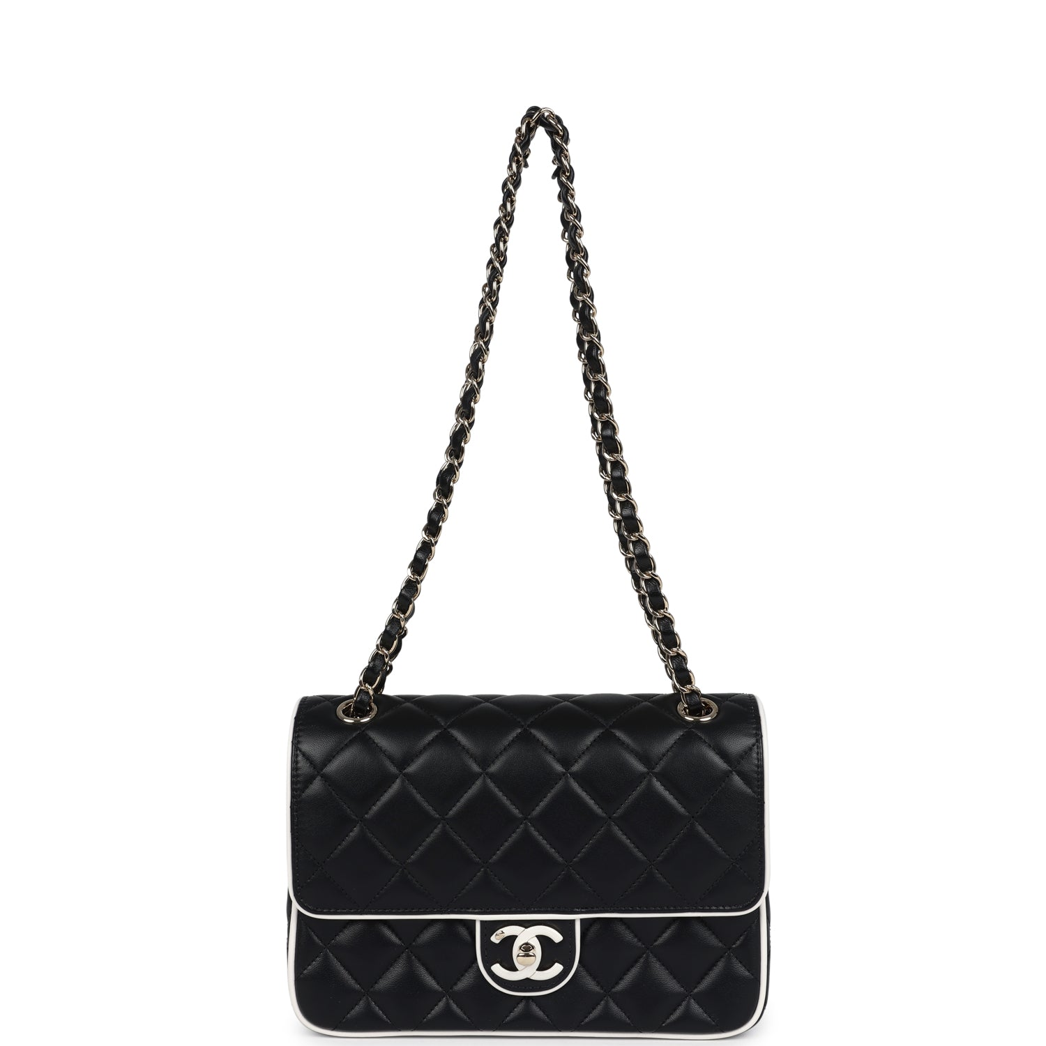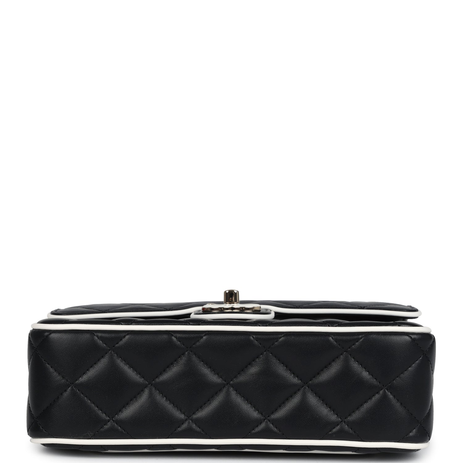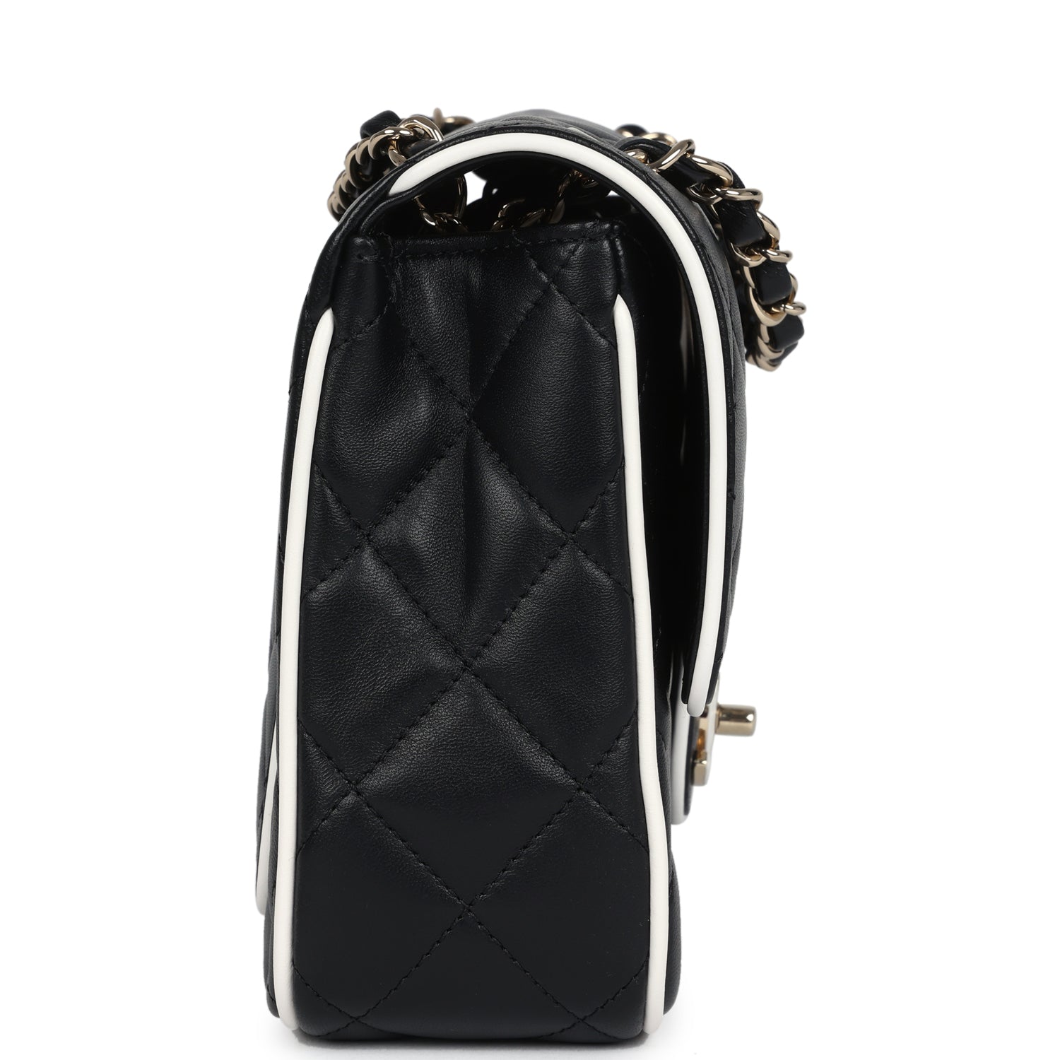 Chanel Small Graphic Frame Flap Bag Black and White Lambskin Light Gold Hardware