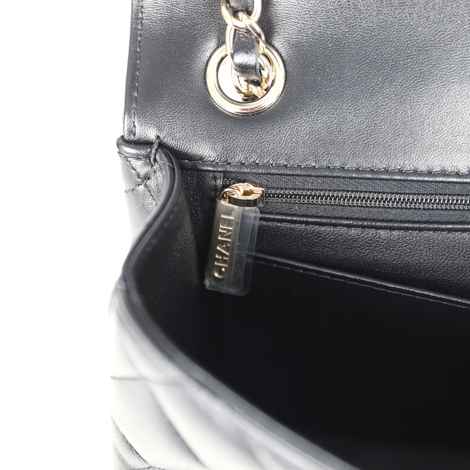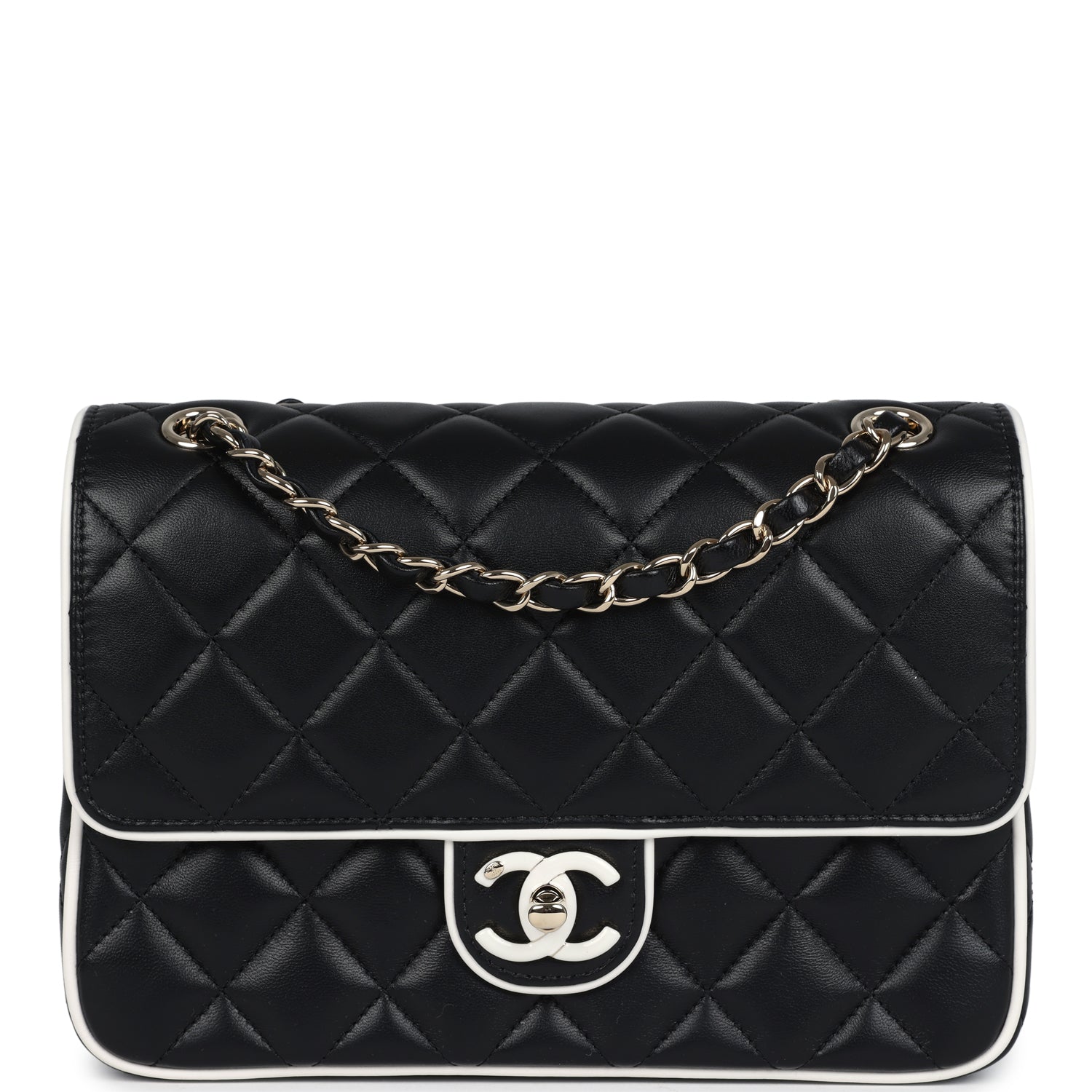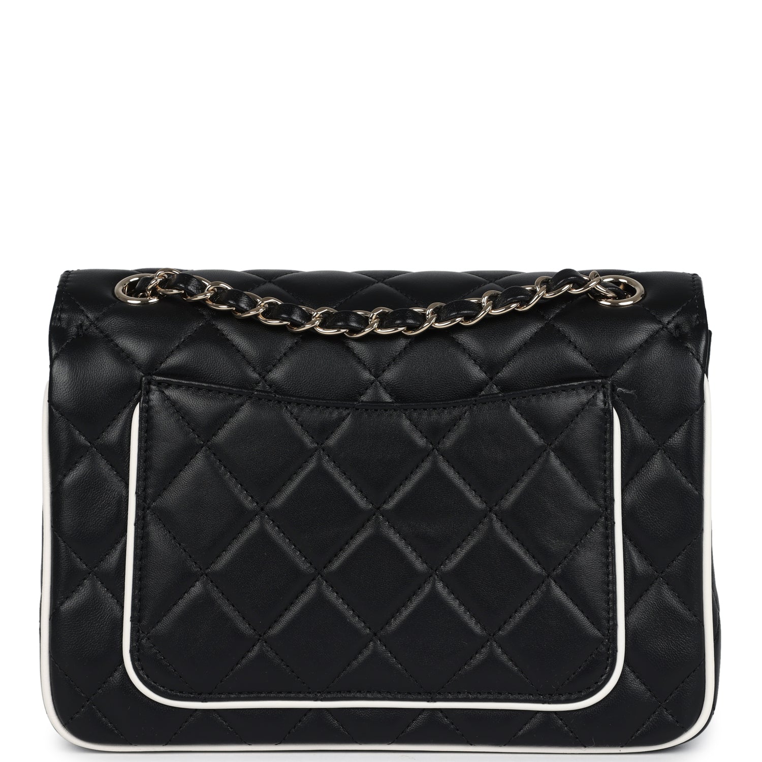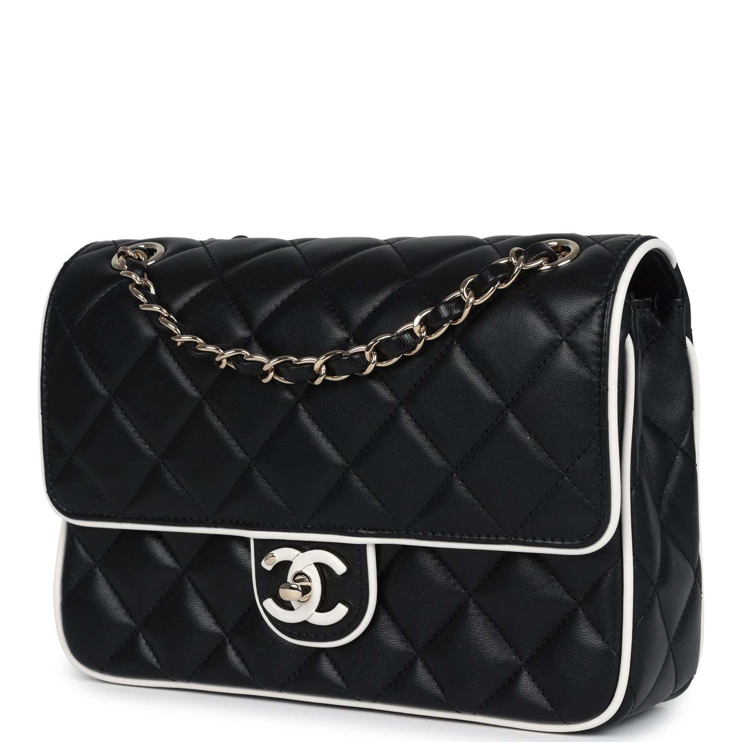 Chanel Small Graphic Frame Flap Bag Black and White Lambskin Light Gold Hardware