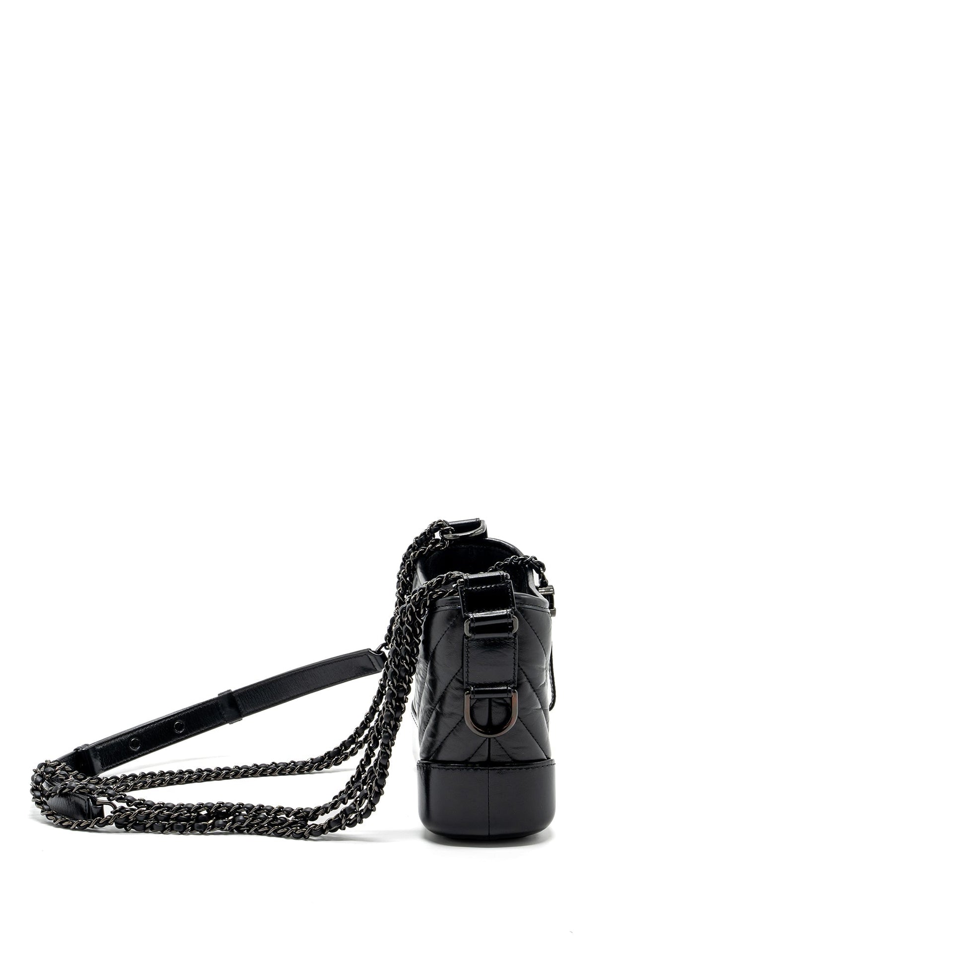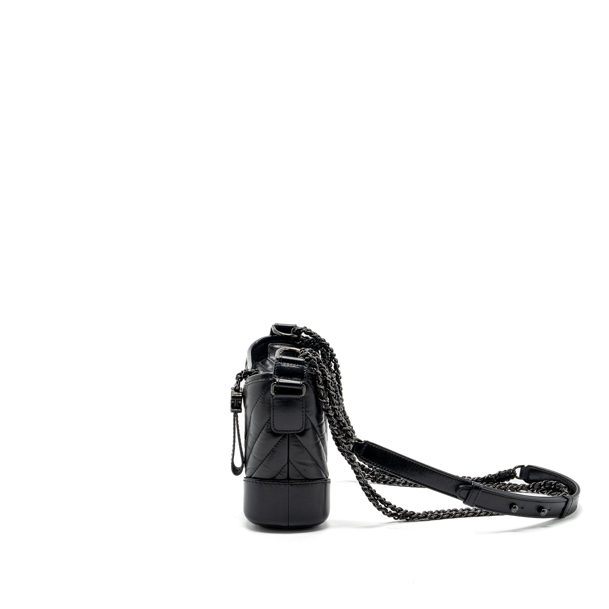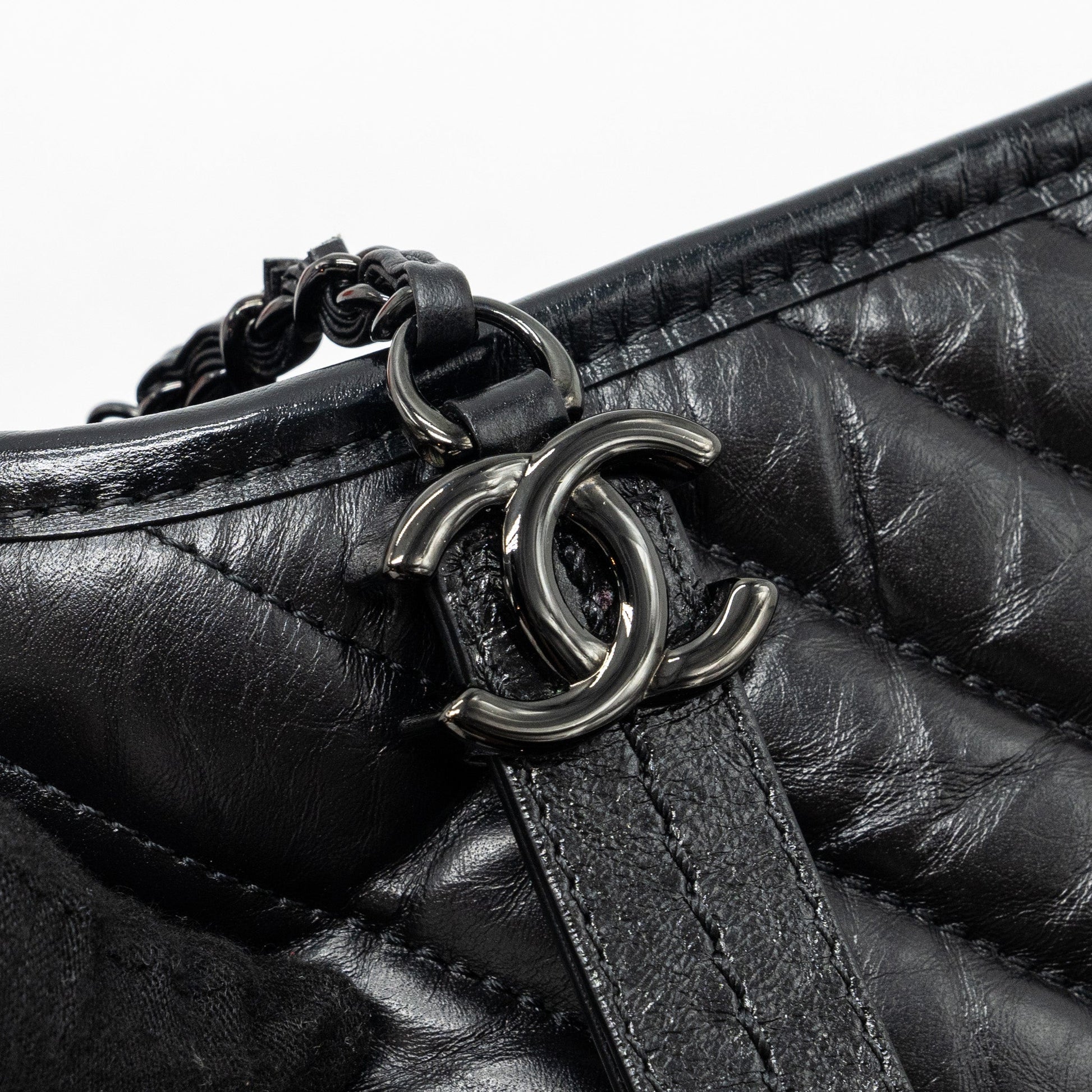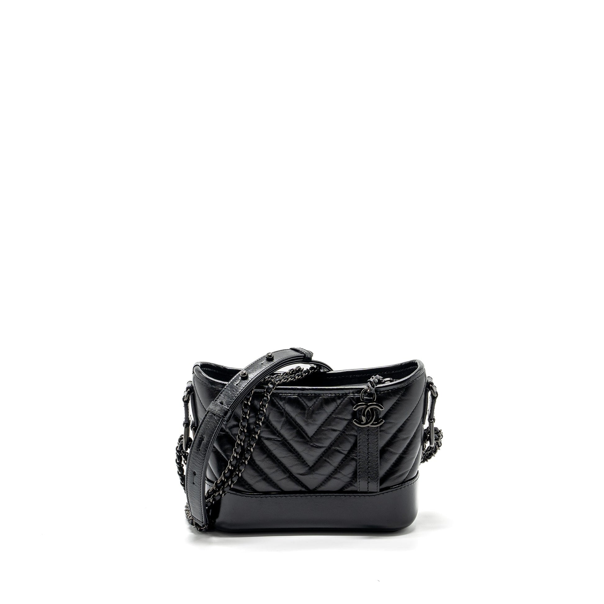 Chanel Small Gabrielle Hobo Bag Chevron Aged Calfskin So Black