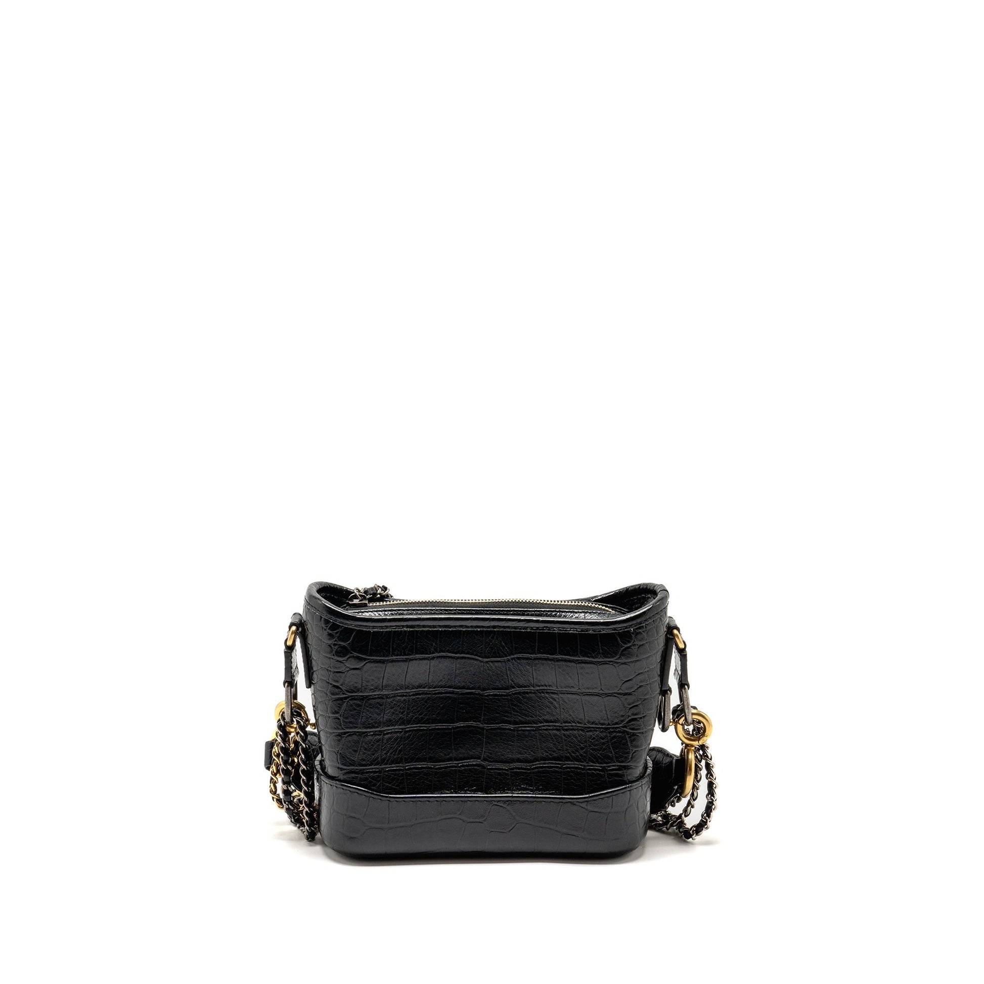 Chanel Small Gabrielle Hobo Bag With Top Handle Croc-embossed Calfskin Black Multicolour Hardware