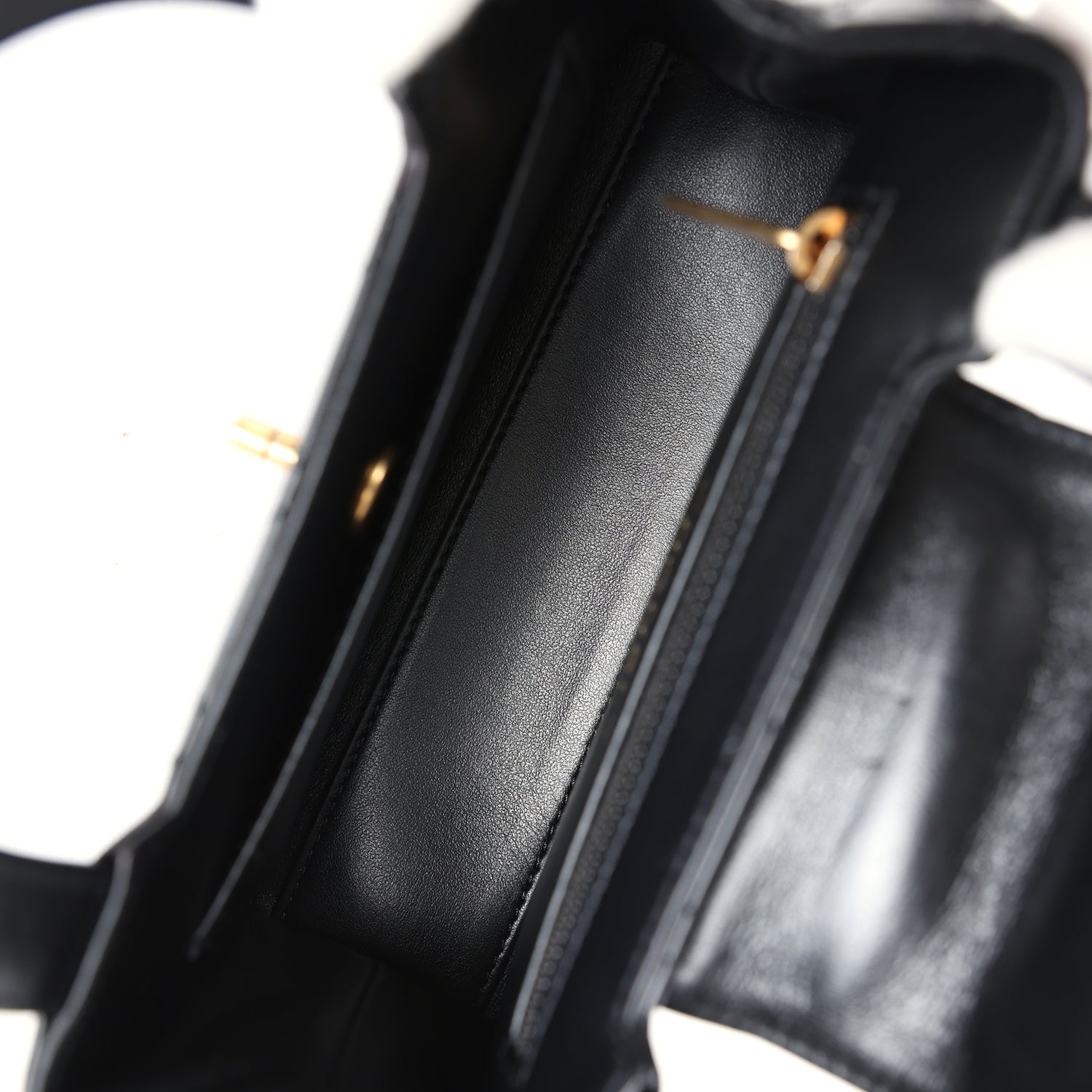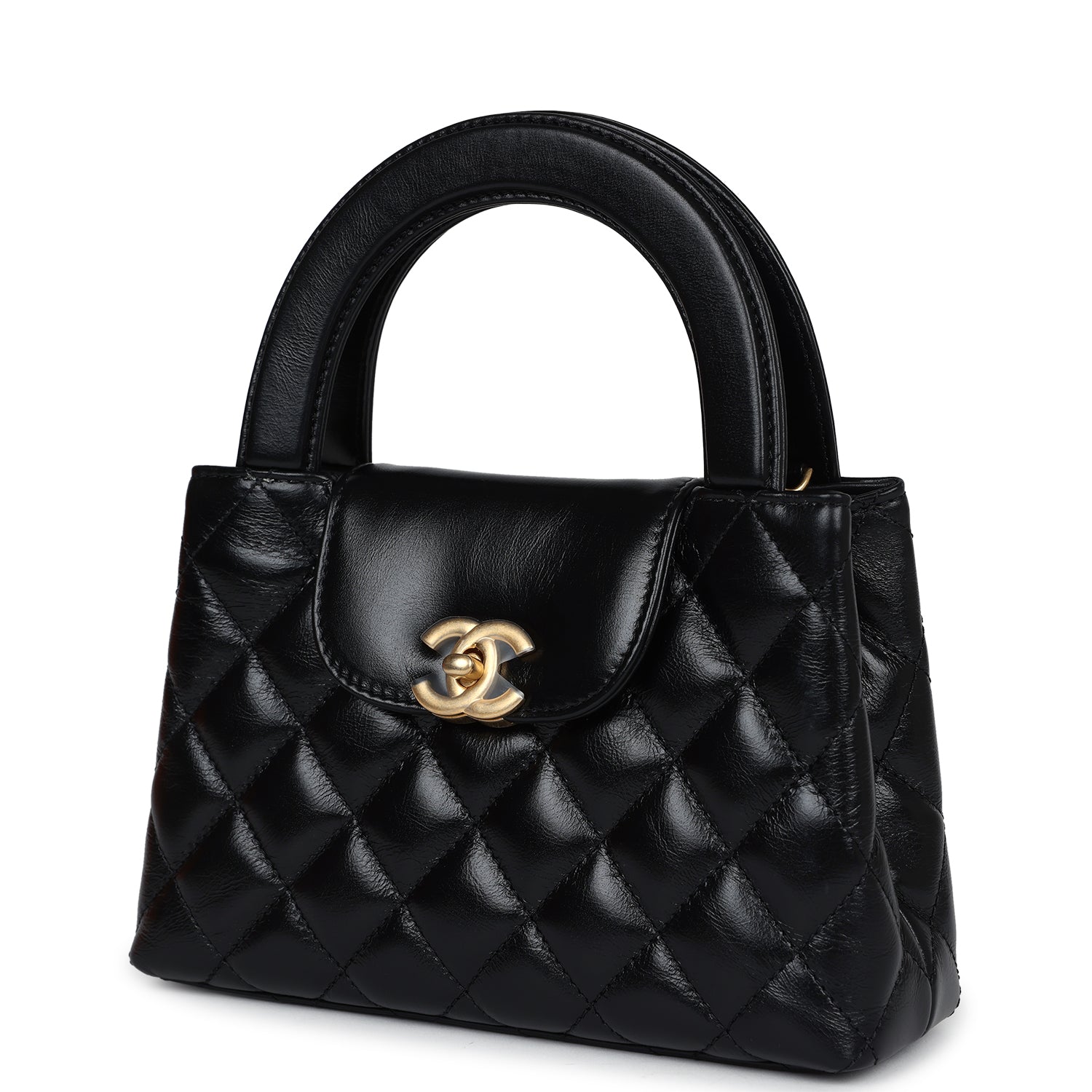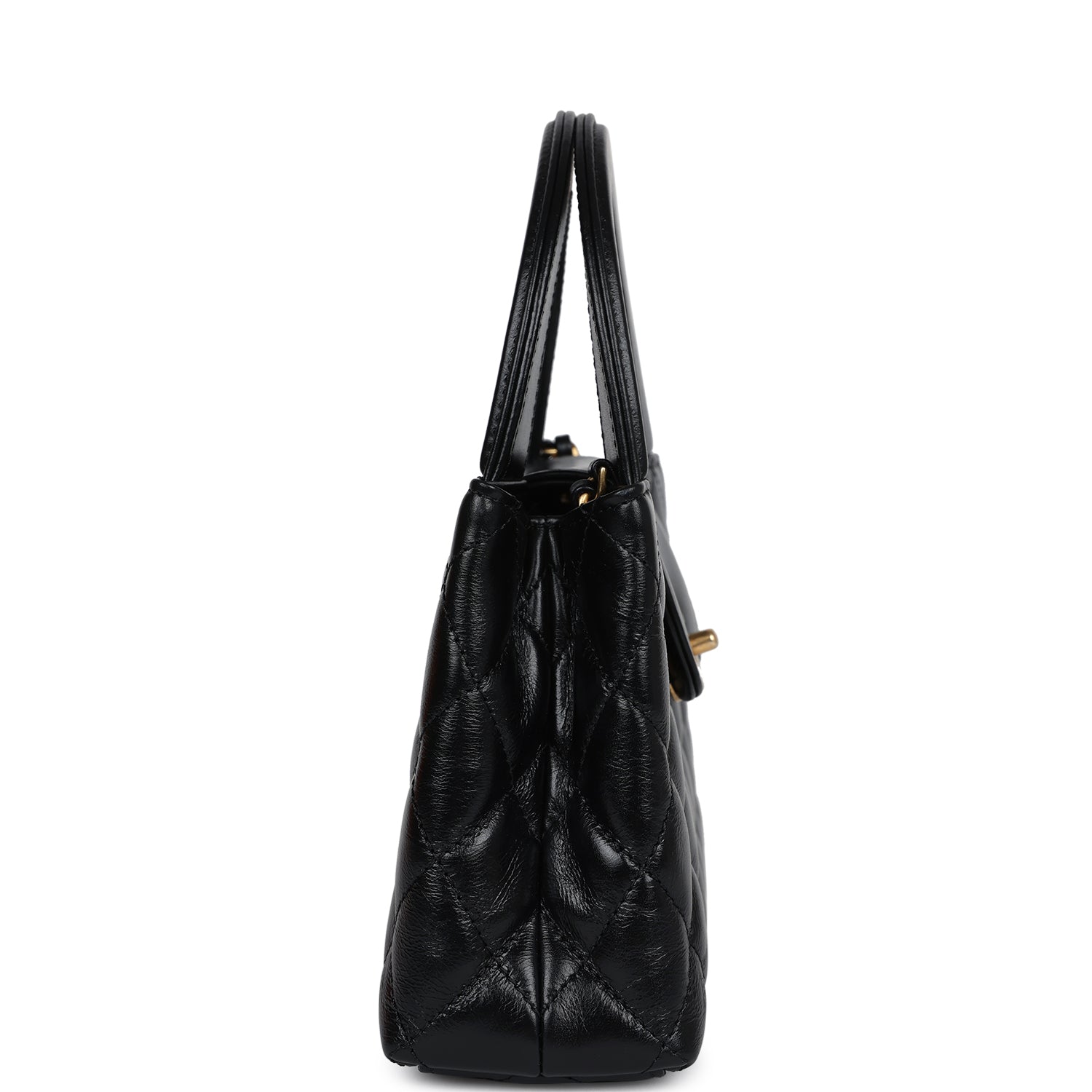 Chanel Small Kelly Shopper Black Shiny Aged Calfskin Brushed Gold Hardware