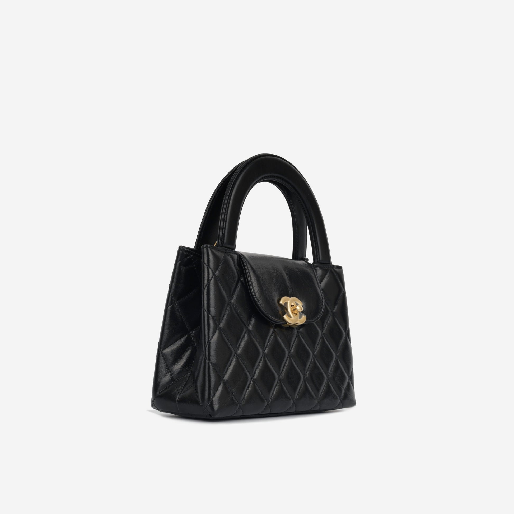 - Black shiny aged quilted calfskin