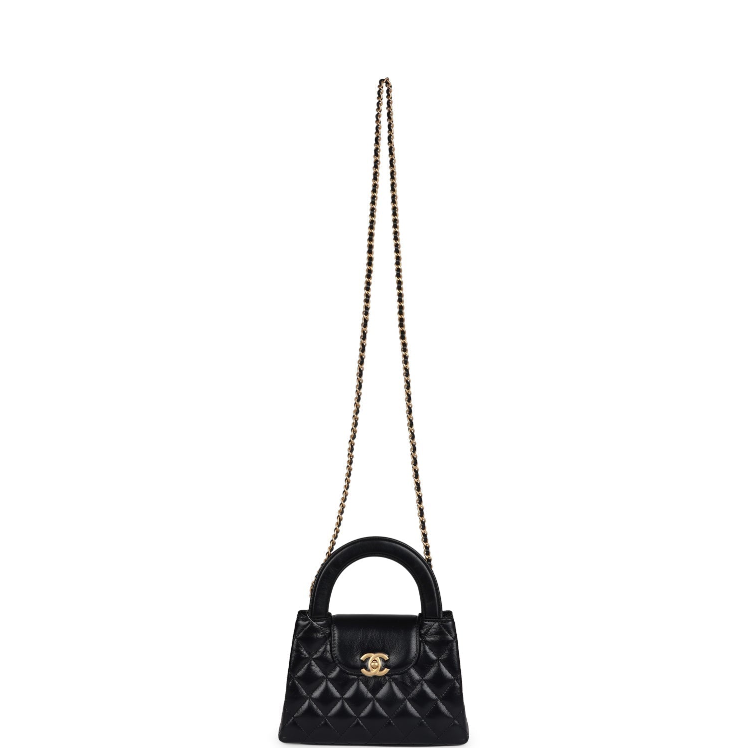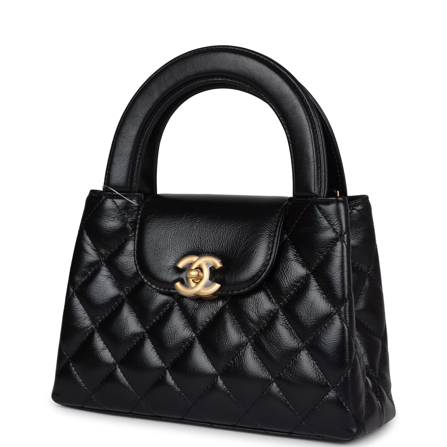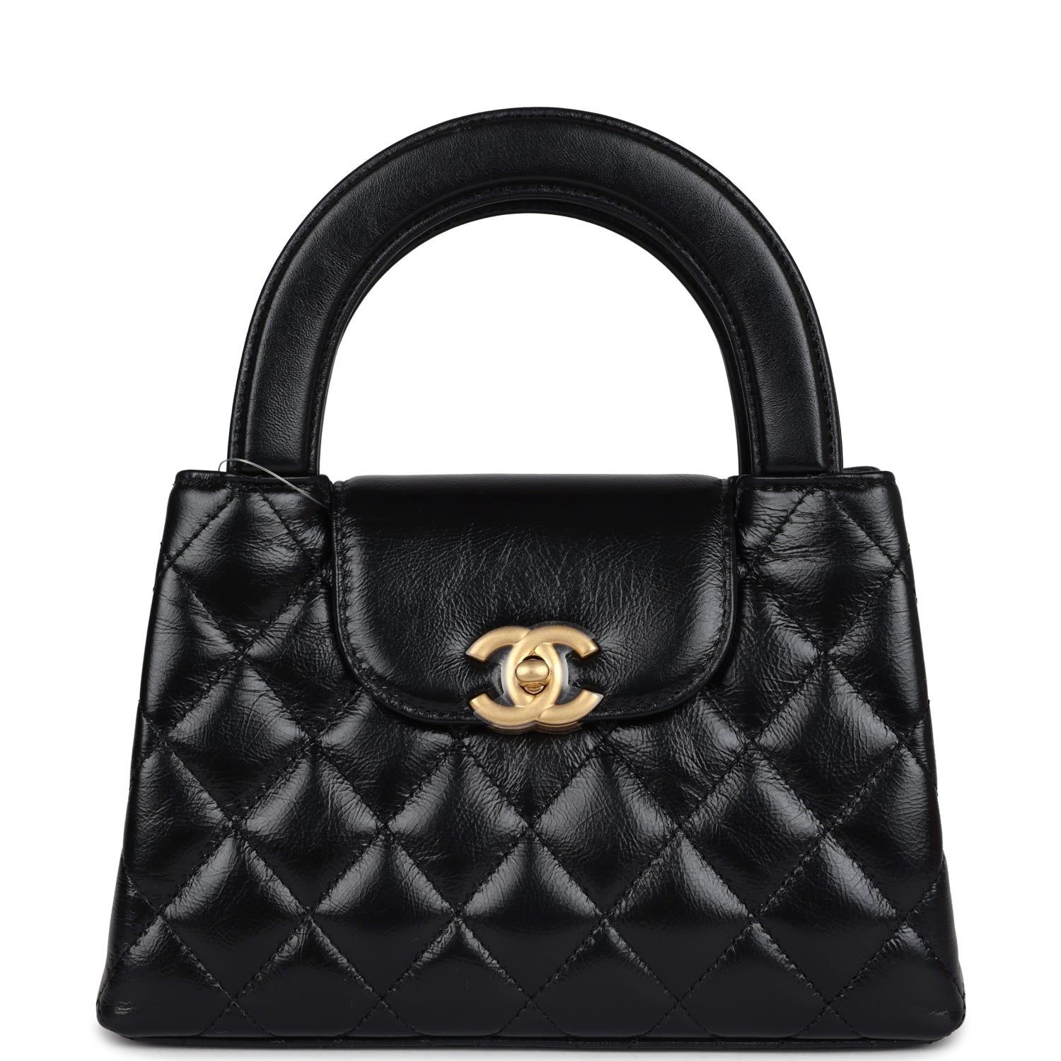 Chanel Small Kelly Shopper Black Shiny Aged Calfskin Brushed Gold Hardware